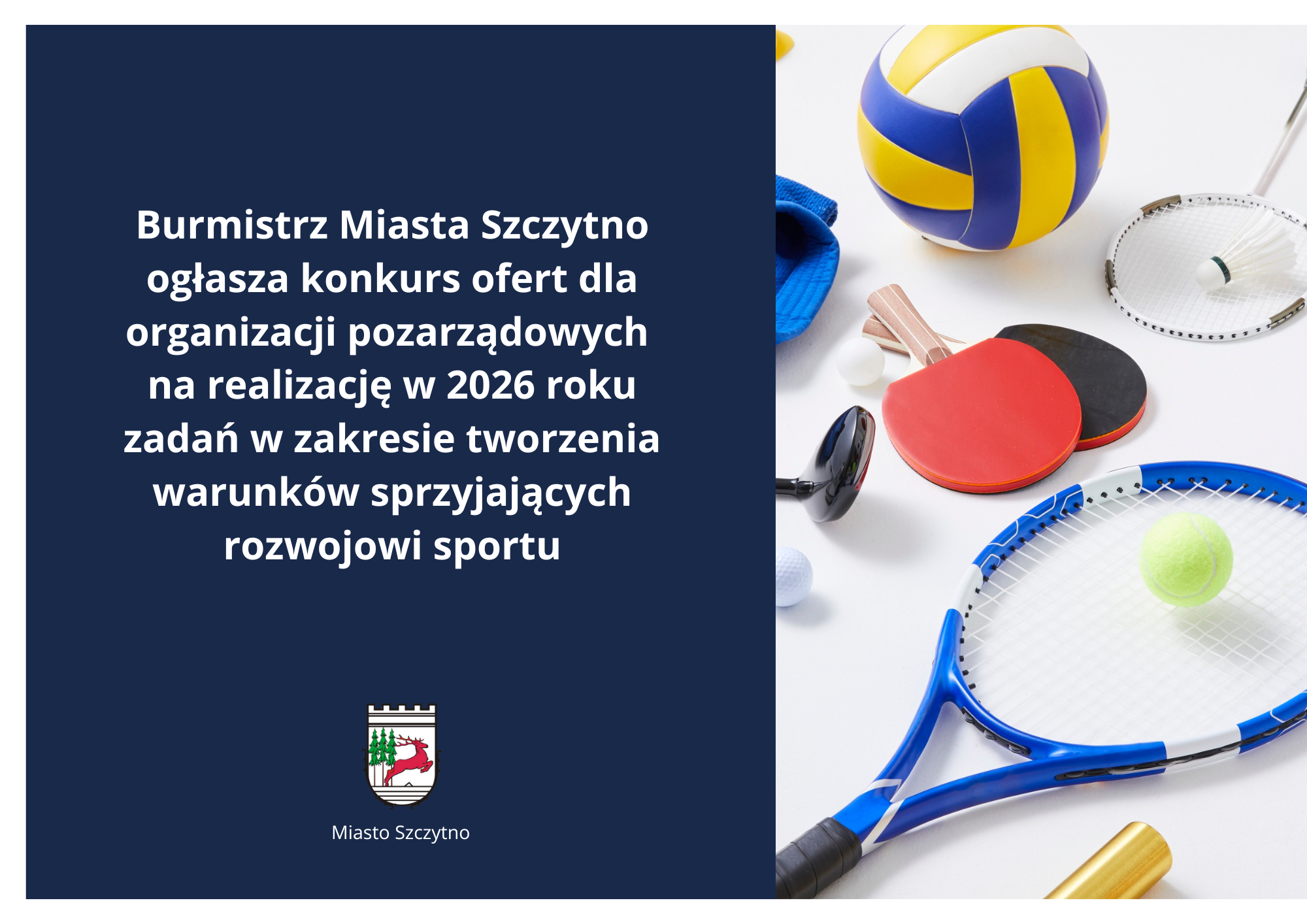 Burmistrz Miasta Szczytno ogłasza konkurs ofert na realizację zadań sportowych w 2026 roku