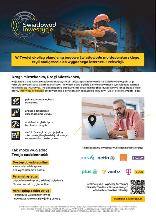 Szczegóły na stronie:https://swiatlowodinwestycje.pl