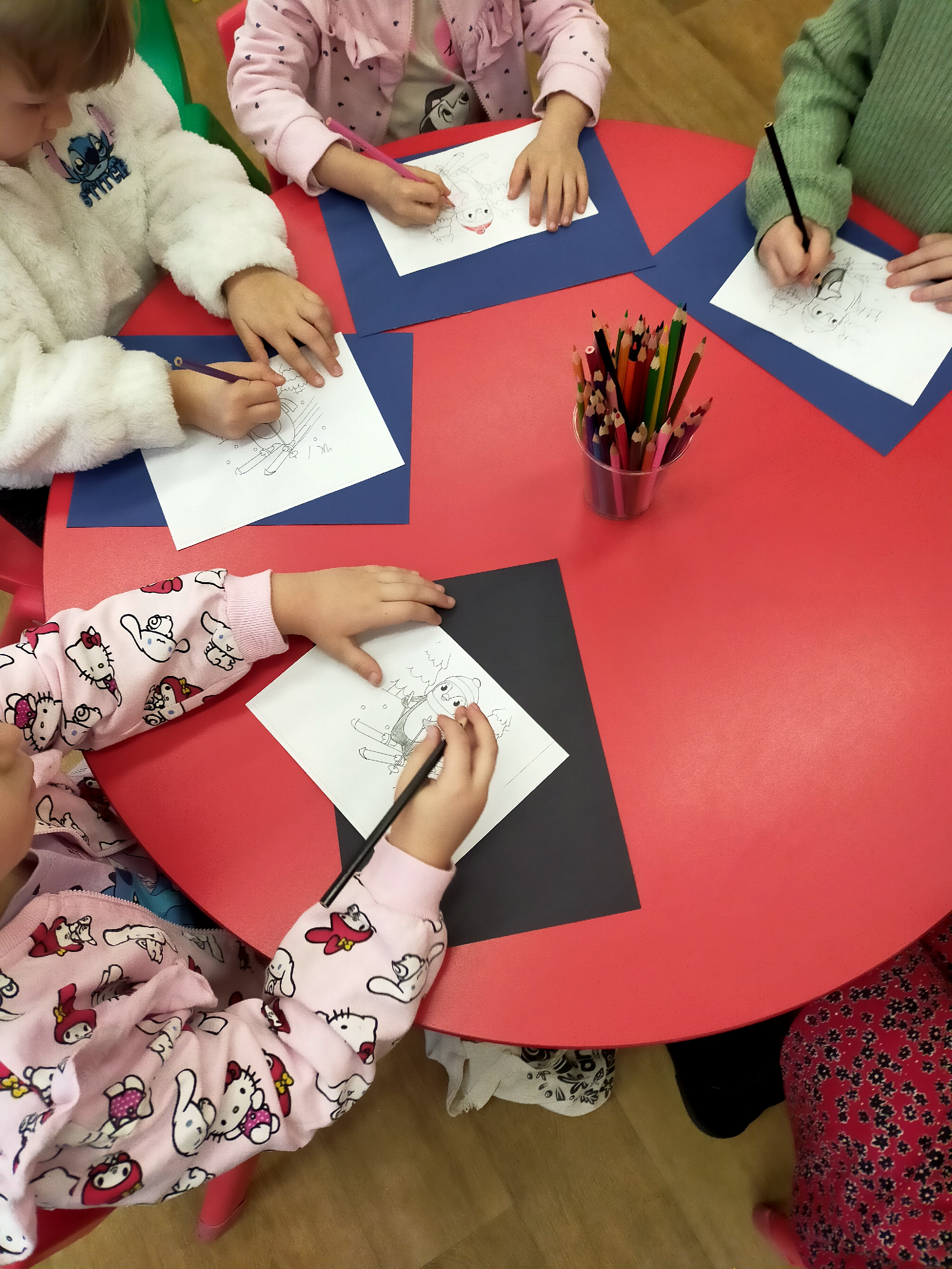 ♦ Literackie podróże: Słuchaliśmy zimowych bajek i wspólnie tworzyliśmy barwne ilustracje do zimowych wierszy, odkrywając magię słów.