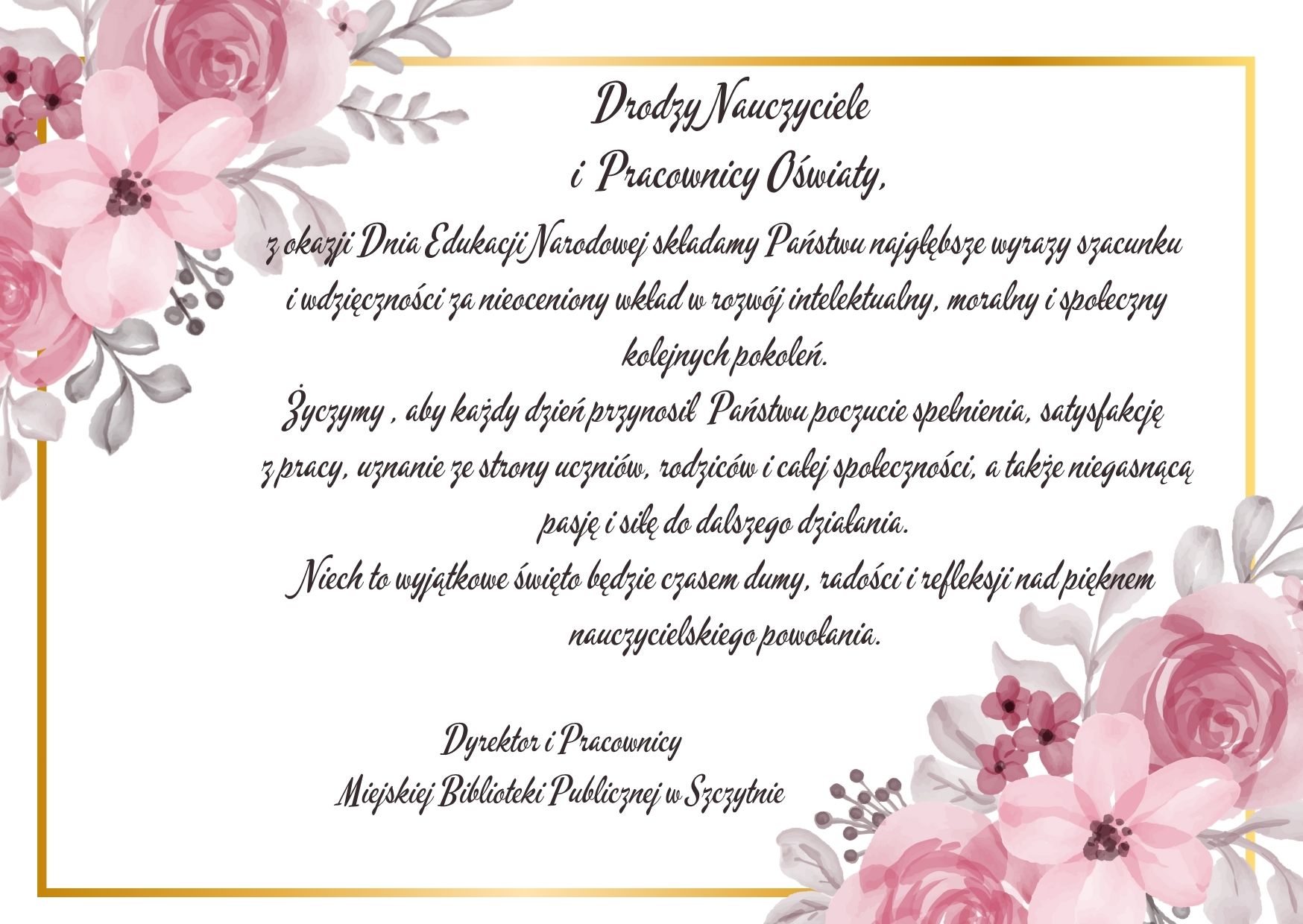 z okazji Dnia Edukacji Narodowej składamy Państwu najgłębsze wyrazy szacunku i wdzięczności za nieoceniony wkład w rozwój intelektualny, moralny i społeczny kolejnych pokoleń.