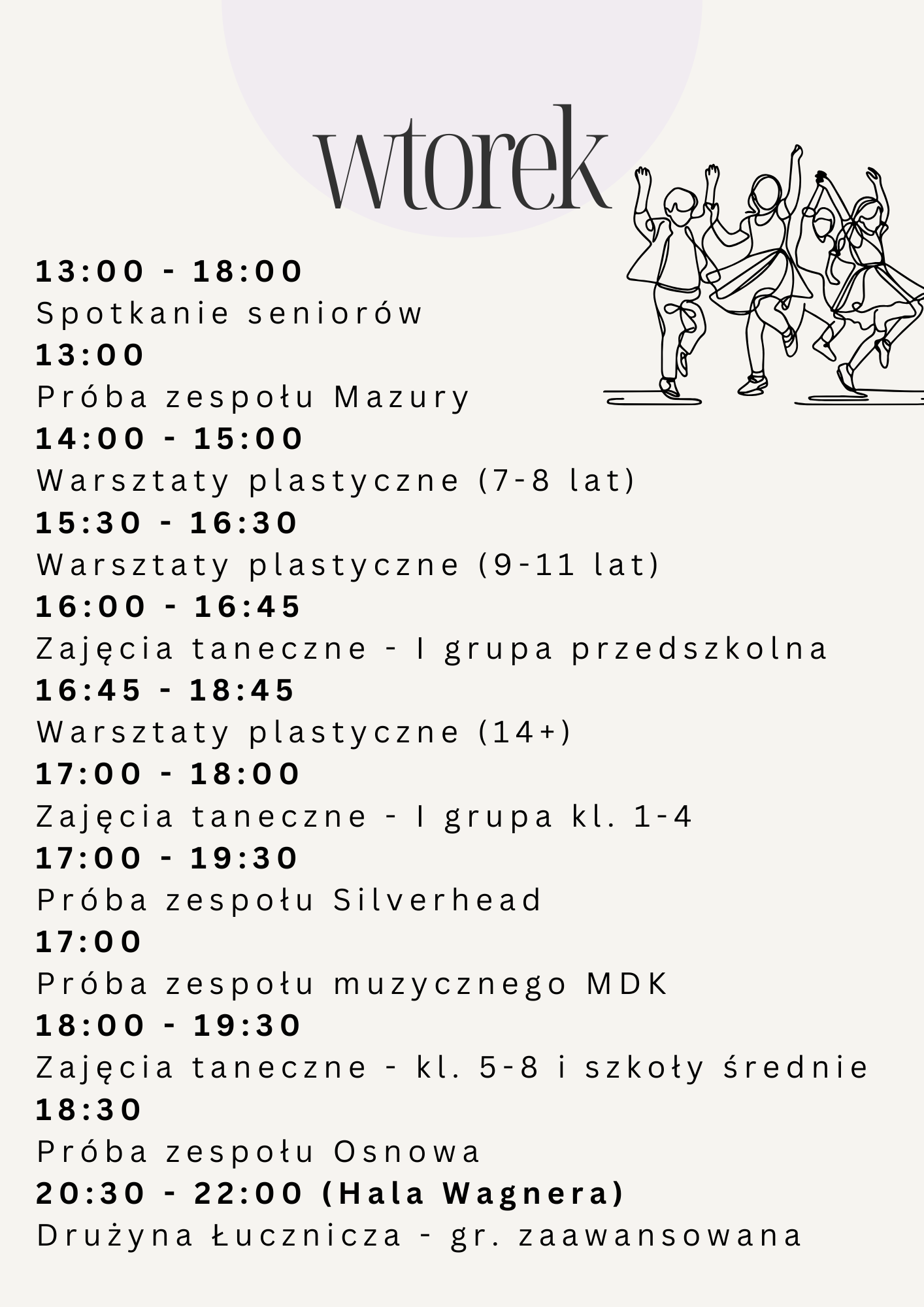 18:00 - 19:30 - Zajęcia taneczne - grupa kl. 5-8 i szkoły średnie