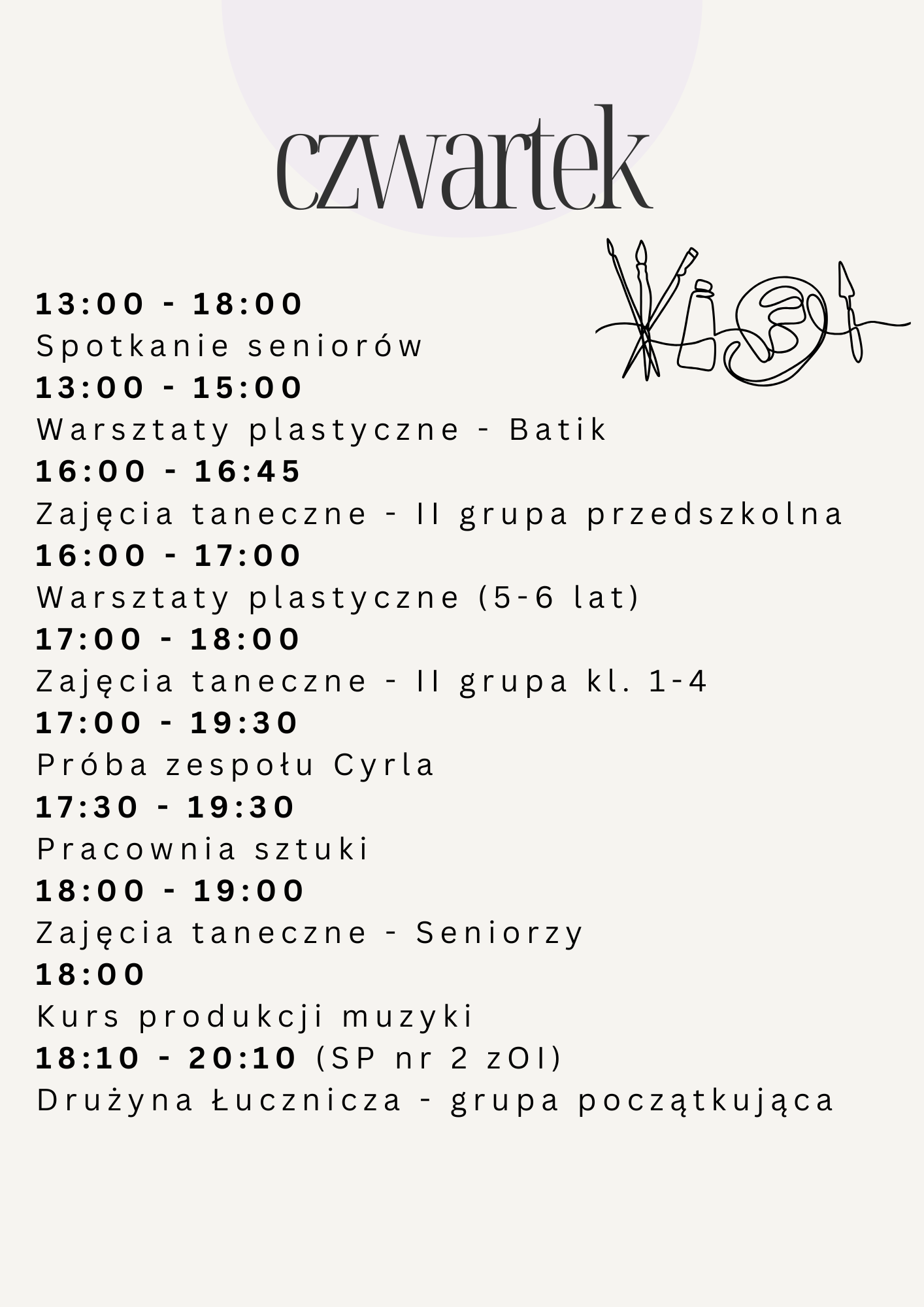 16:30 - 18:00 - Warsztaty plastyczne (12-13 lat)