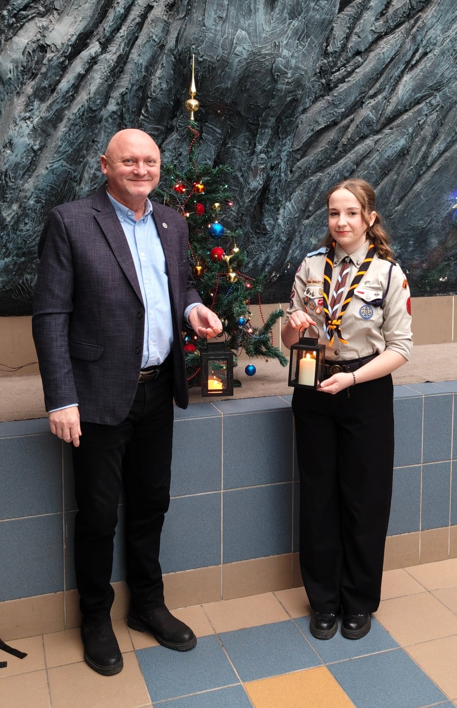 Betlejemskie Światełko Pokoju od 1986 r., a w Polsce od 1991 r. nieprzerwanie przekazywane jest z rąk do rąk jako symbol pokoju, nadziei i jedności. W tym roku pod hasłem "Pielęgnuj dobro w sobie" dotarło również do Miejskiego Ośrodka Sportu w Szczytnie. Z rąk harcerki Hufca ZHP Mazurski w imieniu dyrektora oraz wszystkich pracowników MOS odebrał je Piotr Mikosza Kierownik Obiektów MOS.