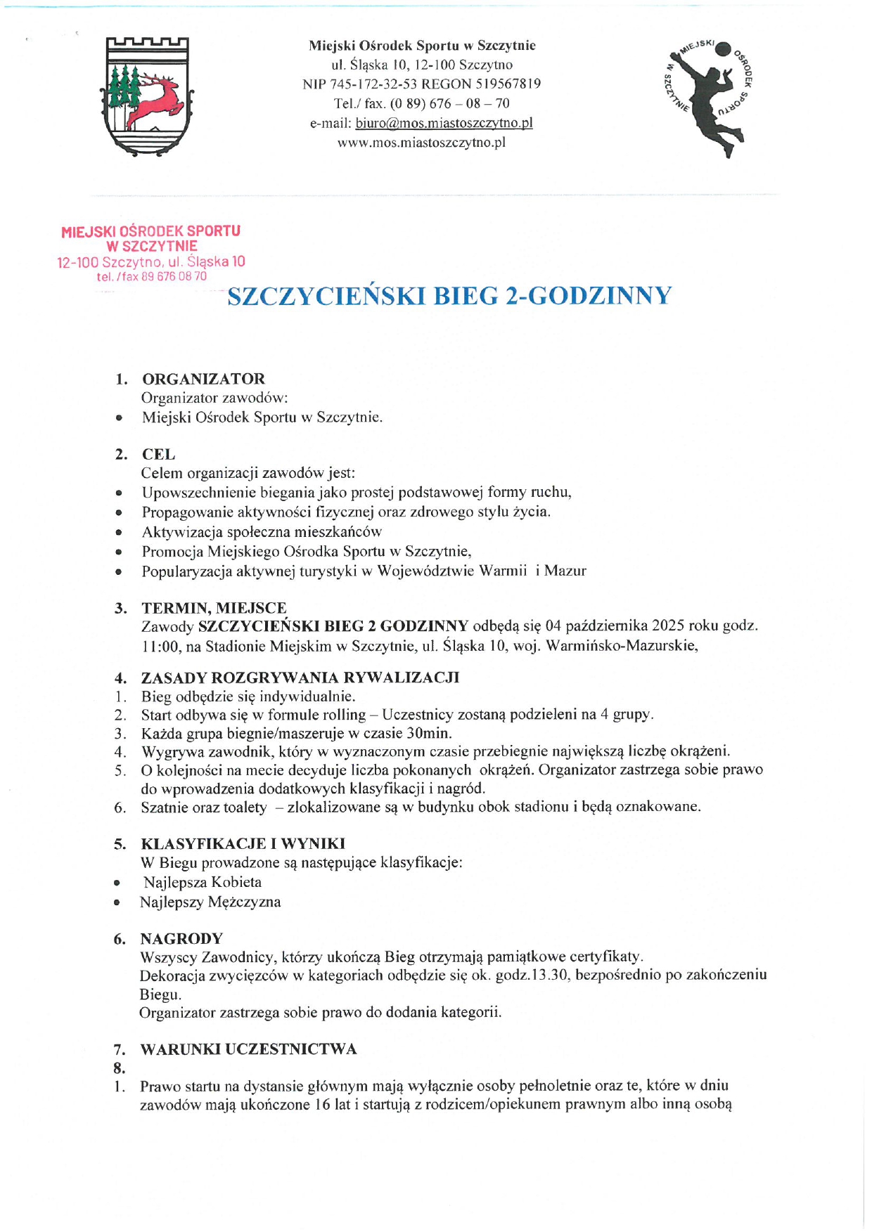 Już jutro - 4 października 2025 - zapraszamy wszystkich miłośników sportu i dobrej zabawy na Stadion Miejski przy ul. Śląskiej 10, gdzie odbędzie się wyjątkowa impreza - Bieg 2-godzinny!