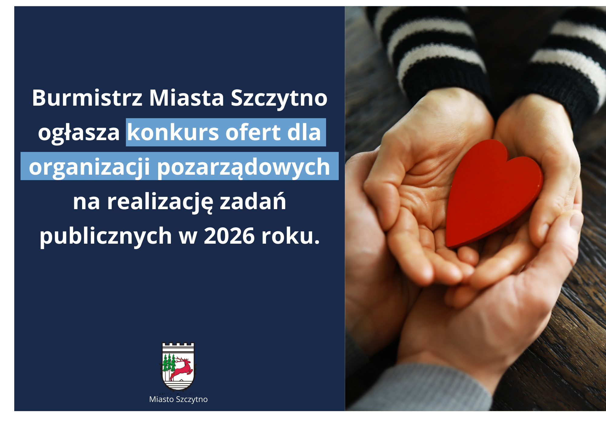 Burmistrz Miasta Szczytno ogłasza konkurs ofert dla organizacji pozarządowych na realizację zadań publicznych w 2026 roku.