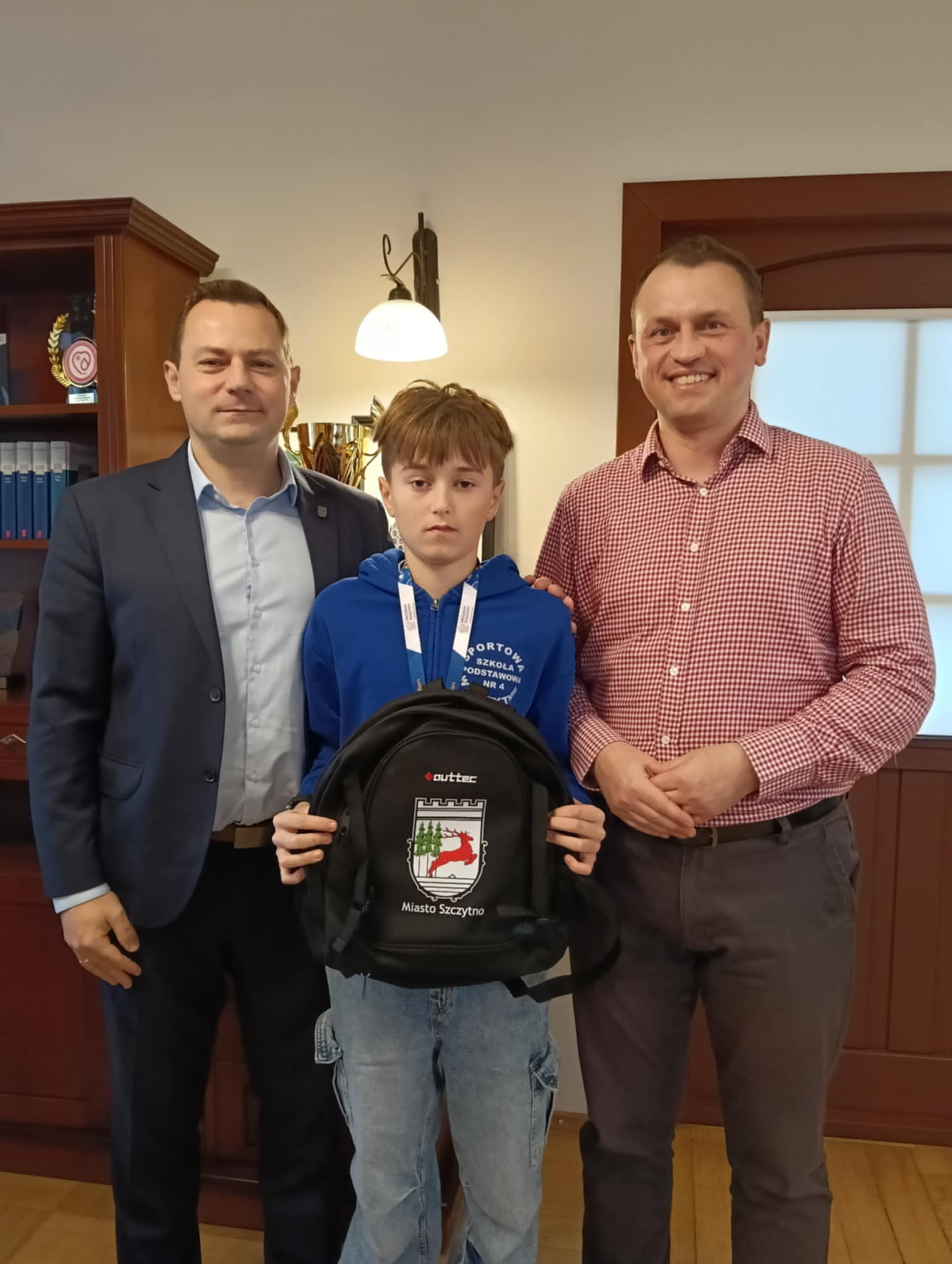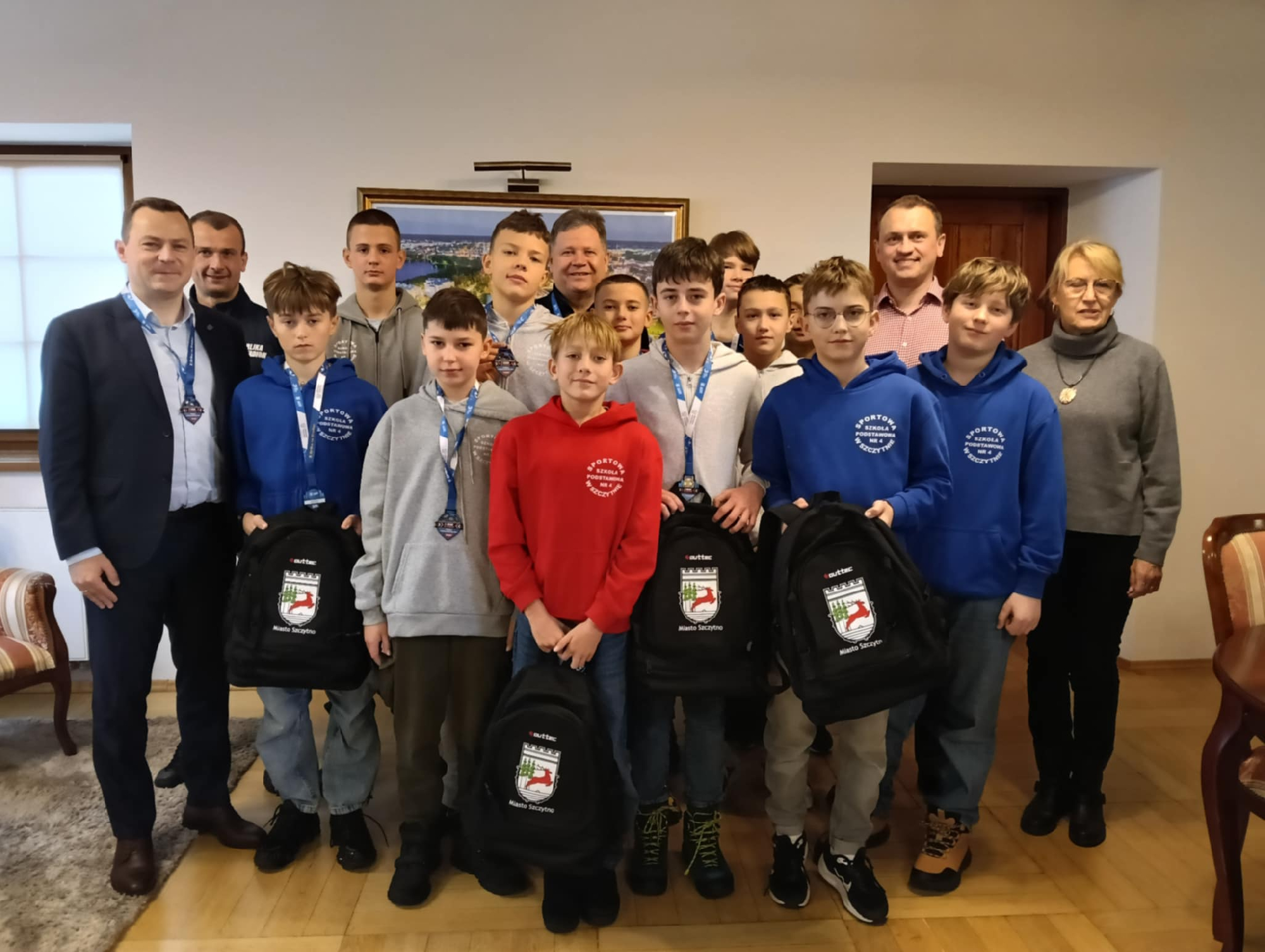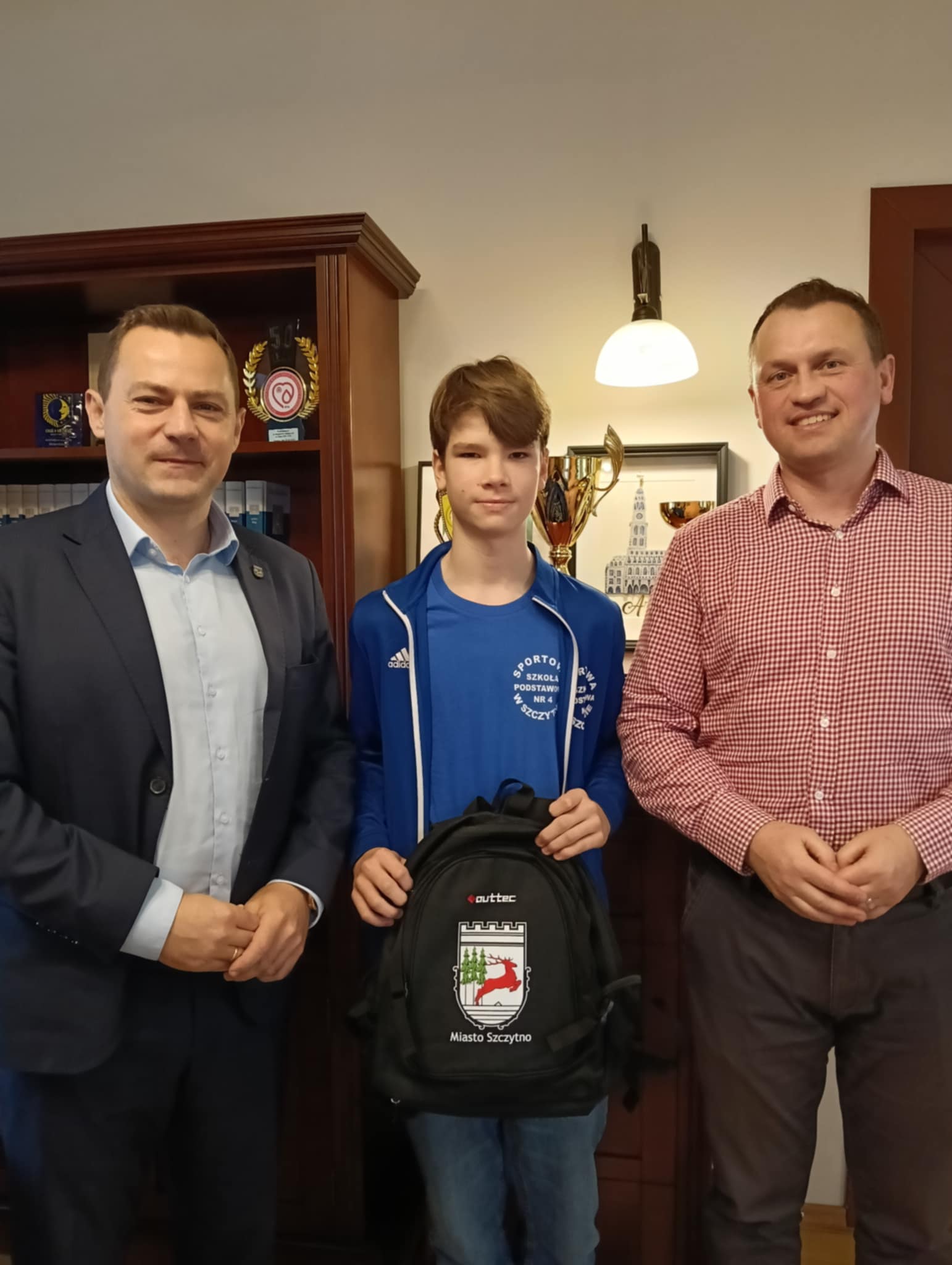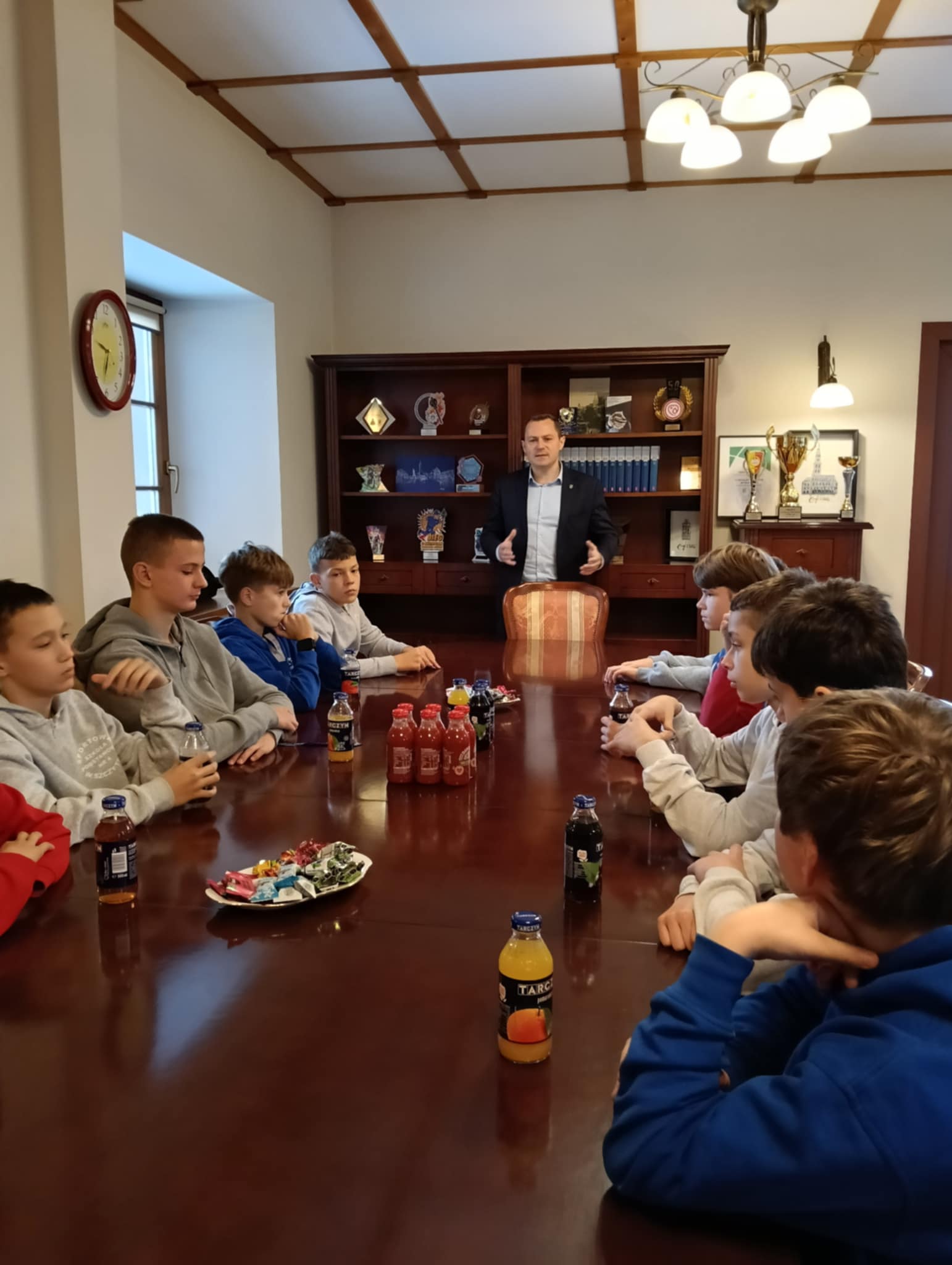 Burmistrz Miasta Szczytno Stefan Ochman wraz z Wiceprzewodniczącym Rady Miejskiej w Szczytnie Tomaszem Łachaczem spotkali się dziś z zawodnikami U13 ze Sportowej Szkoły Podstawowej nr 4 im. Polskich Olimpijczyków w Szczytnie, którzy wrócili z Ogólnopolskiego Finału Turnieju „Z Orlika na Stadion” w Warszawie.