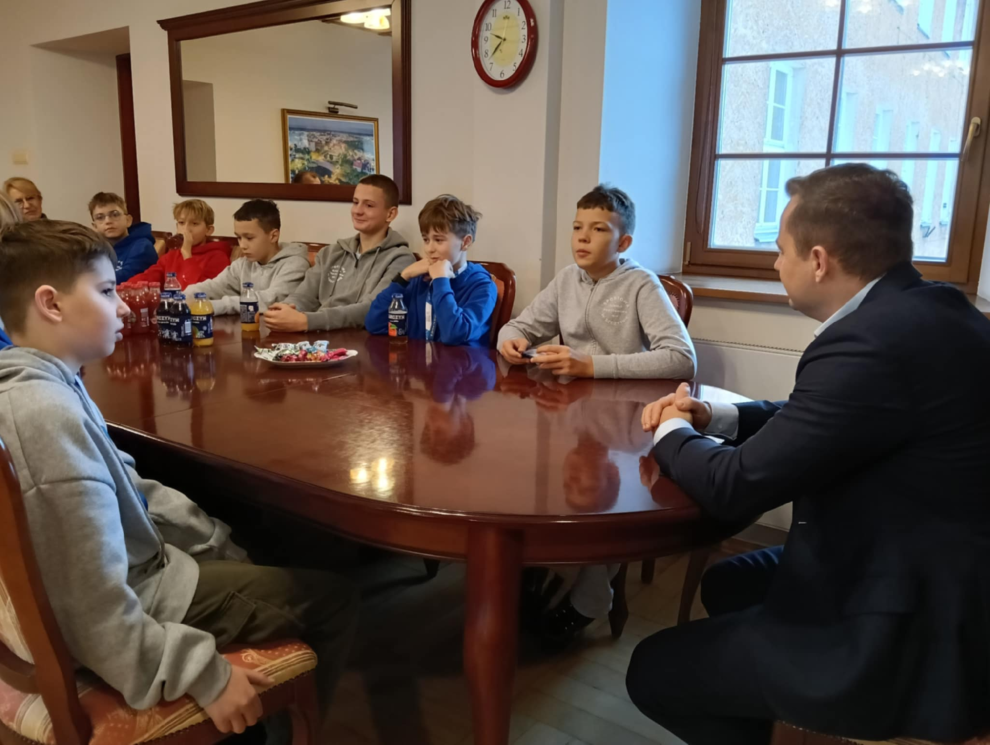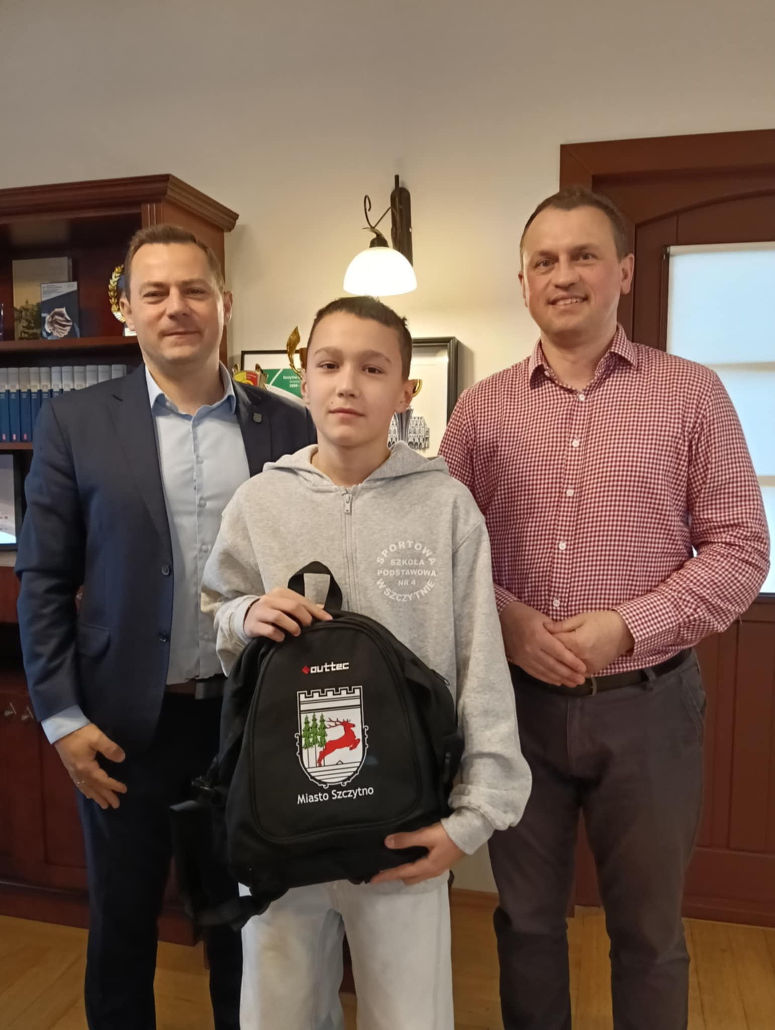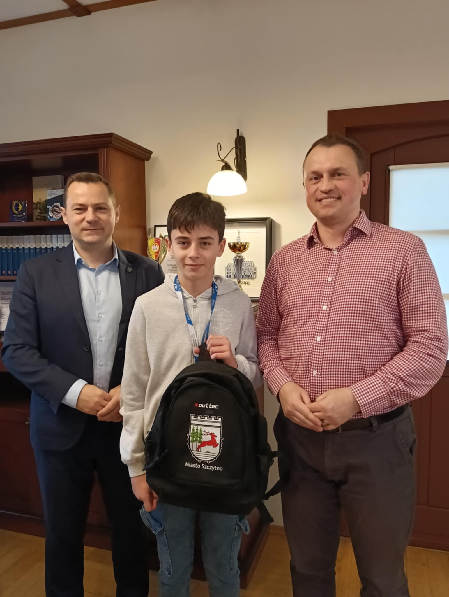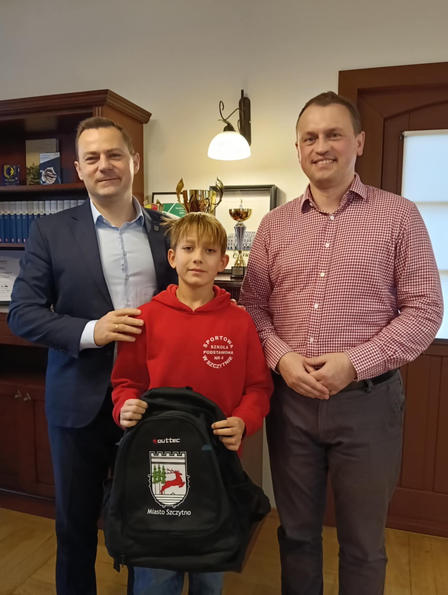 Burmistrz Miasta Szczytno Stefan Ochman wraz z Wiceprzewodniczącym Rady Miejskiej w Szczytnie Tomaszem Łachaczem spotkali się dziś z zawodnikami U13 ze Sportowej Szkoły Podstawowej nr 4 im. Polskich Olimpijczyków w Szczytnie, którzy wrócili z Ogólnopolskiego Finału Turnieju „Z Orlika na Stadion” w Warszawie.