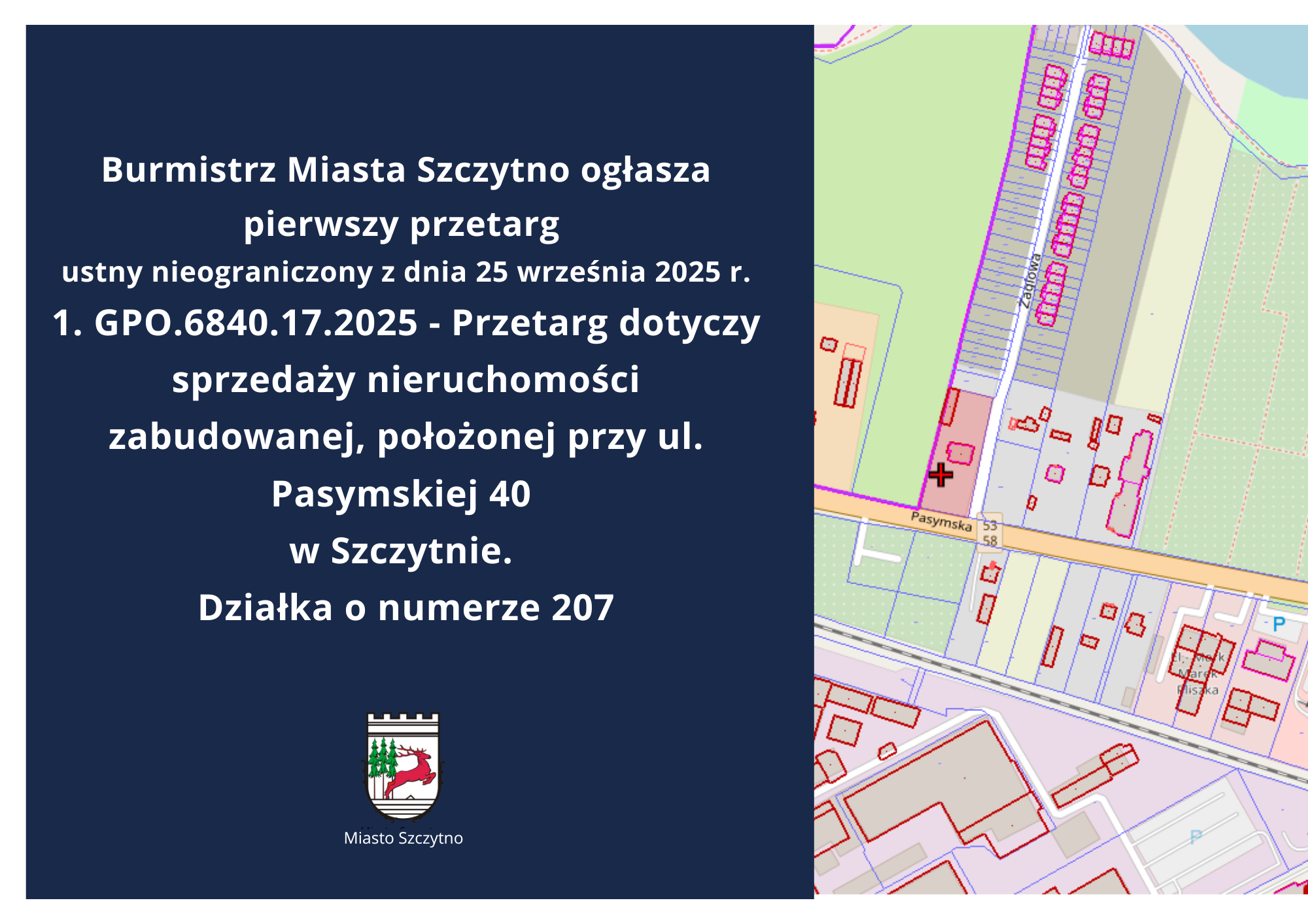 1. GPO.6840.17.2025 - Przetarg dotyczy sprzedaży nieruchomości zabudowanej, położonej przy ul. Pasymskiej 40