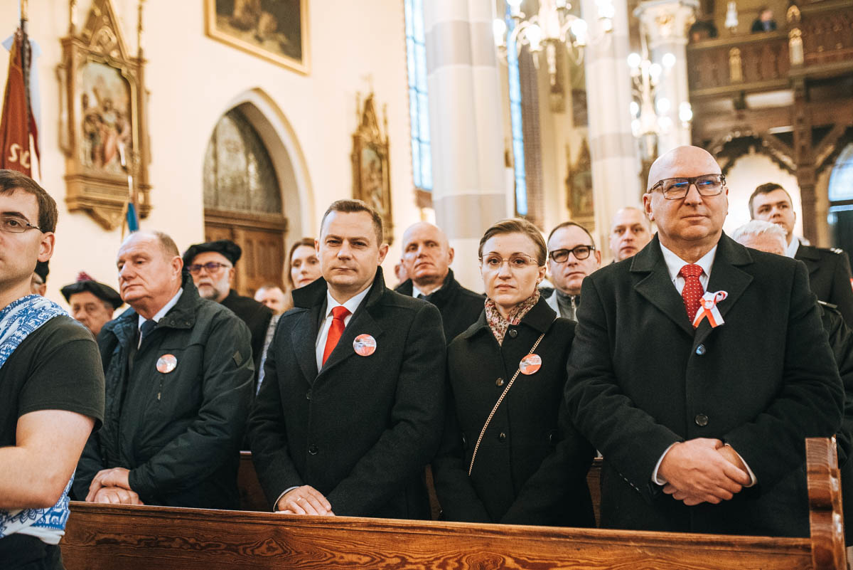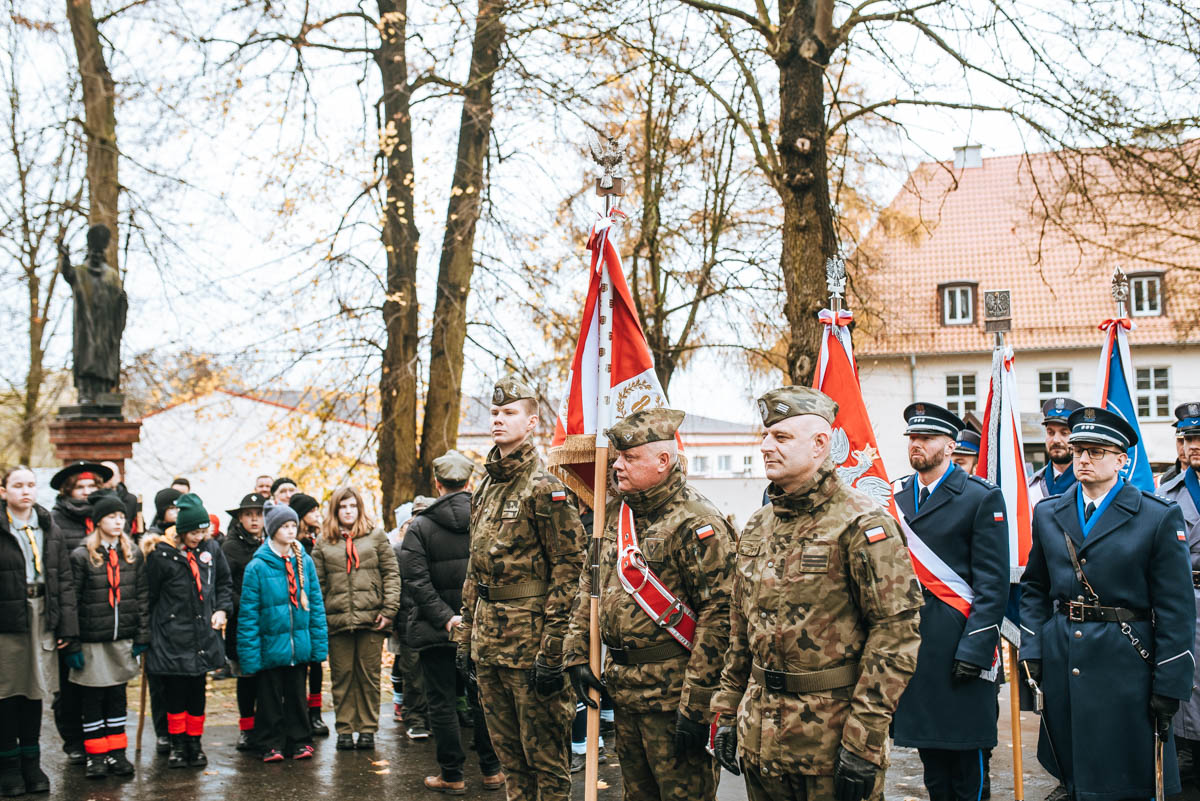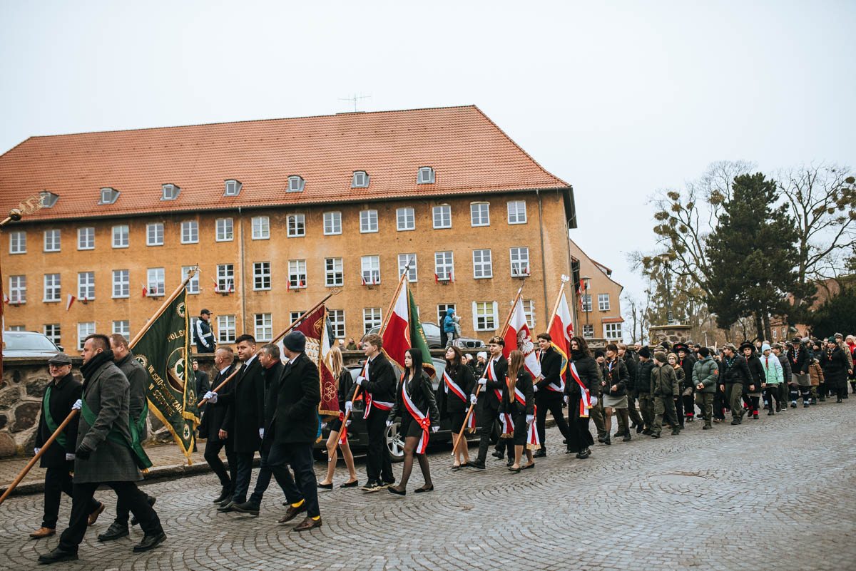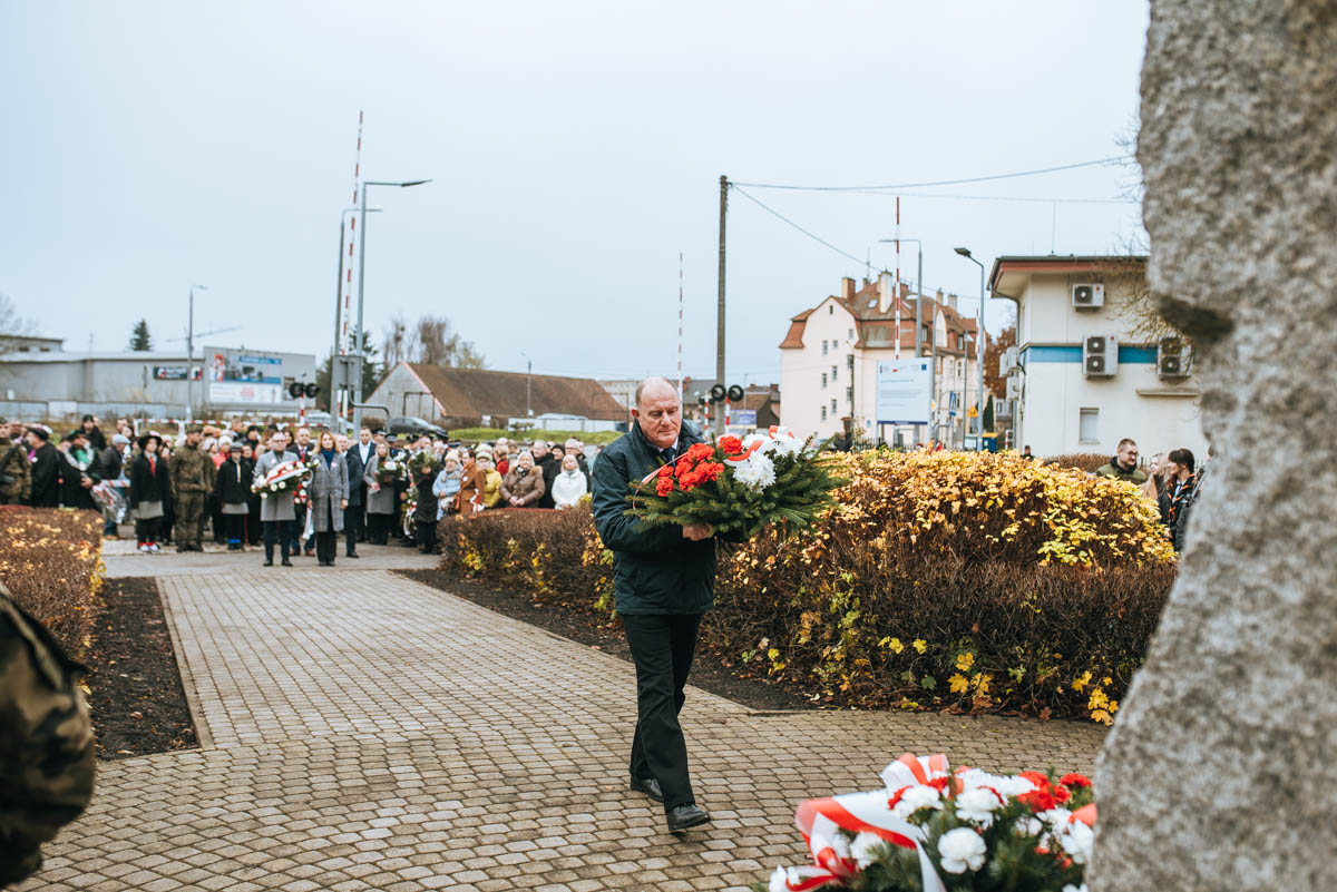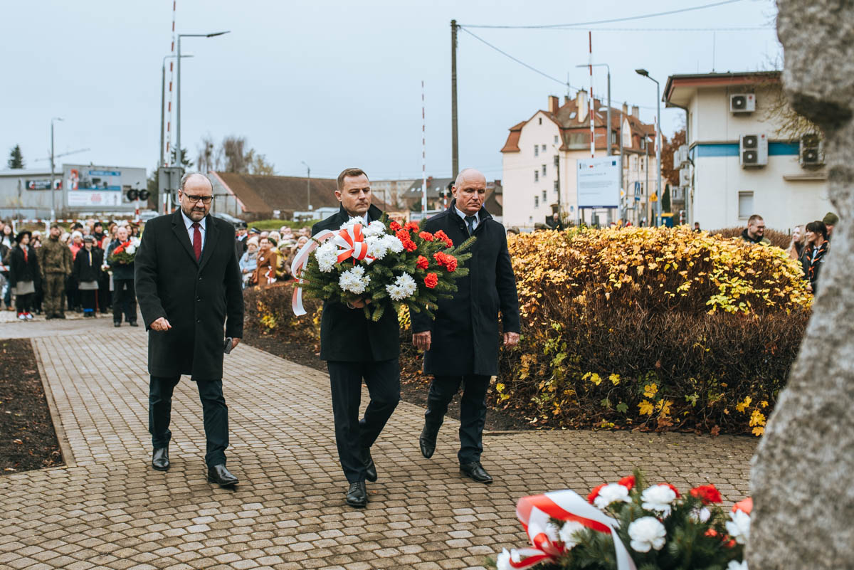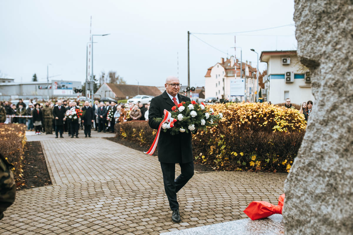 Następnie przemaszerowano pod Pomnik Orła Białego gdzie odśpiewani hym Polski, podniesiono flagę państwową, nastąpiła zmiana warty honorowej a po apleu pamięci żołnierze 8 Batalionu Radiotechnicznego oddali salwę honorową. Na zakończenie uroczyśtości złożono wieńce pod pomnikiem.