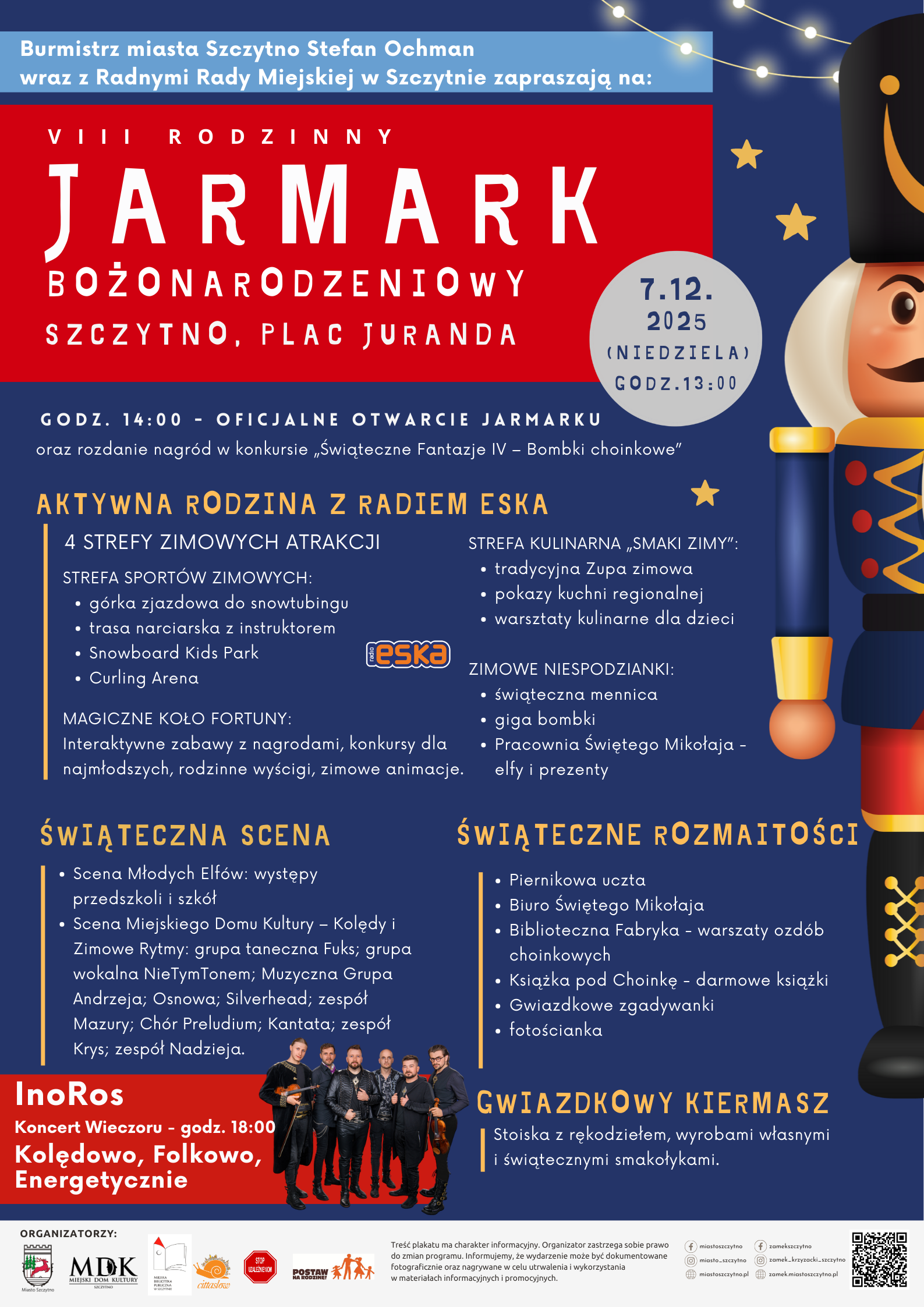 O godzinie 18:00 odbędzie się Koncert Wieczoru – zespół InoRos zaprezentuje kolędy w energetycznym folkowym wydaniu.