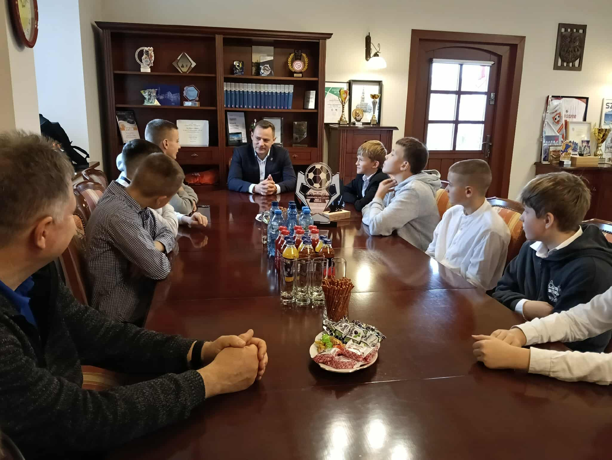 Burmistrz Miasta Szczytno Stefan Ochman spotkał się z piłkarzami U13 ze Sportowej Szkoły Podstawowej nr 4 im. Polskich Olimpijczyków w Szczytnie, którzy po zwycięstwie w finale wojewódzkim w Mrągowie awansowali do Ogólnopolskiego Finału Turnieju „Z Orlika na Stadion” w Warszawie (12–15 listopada).