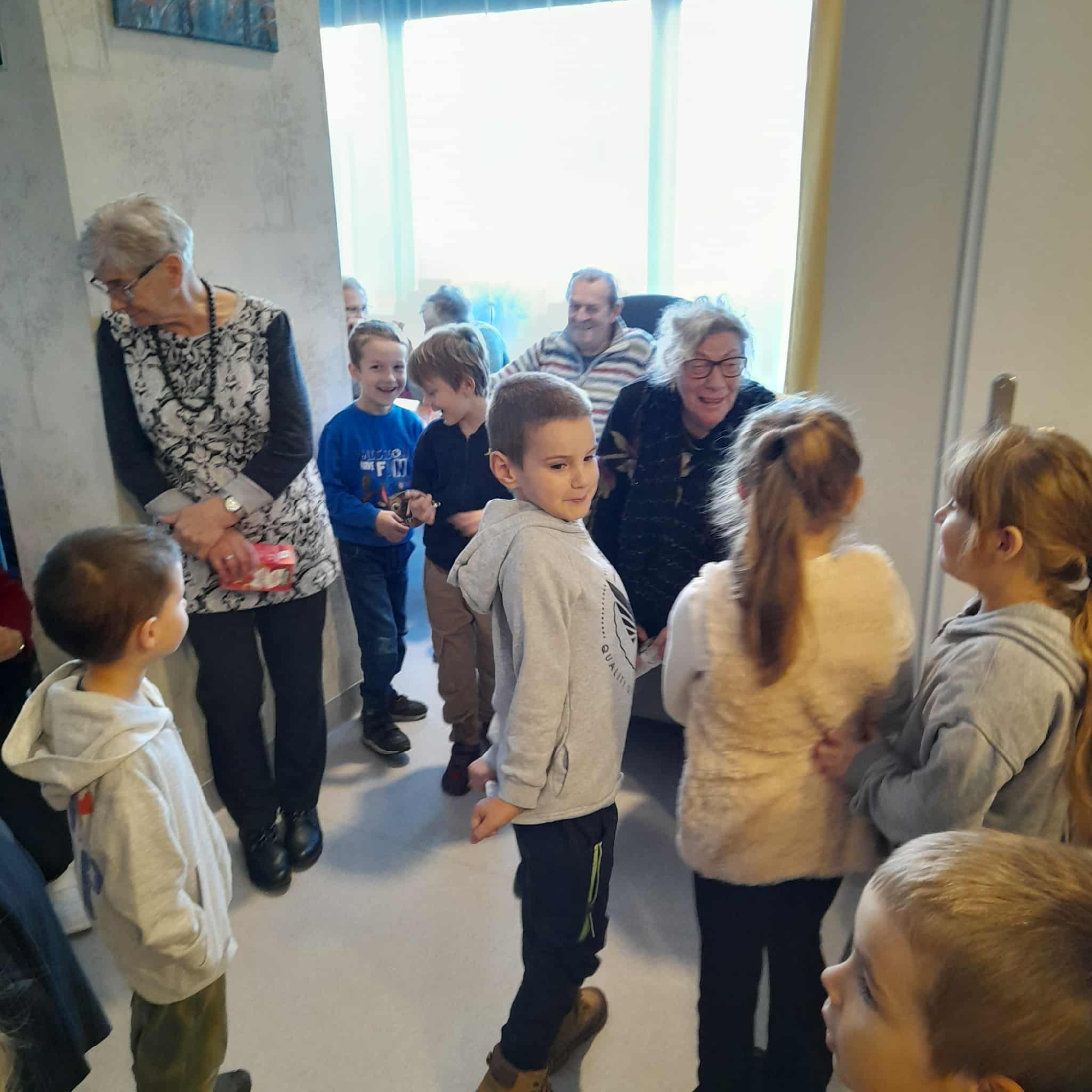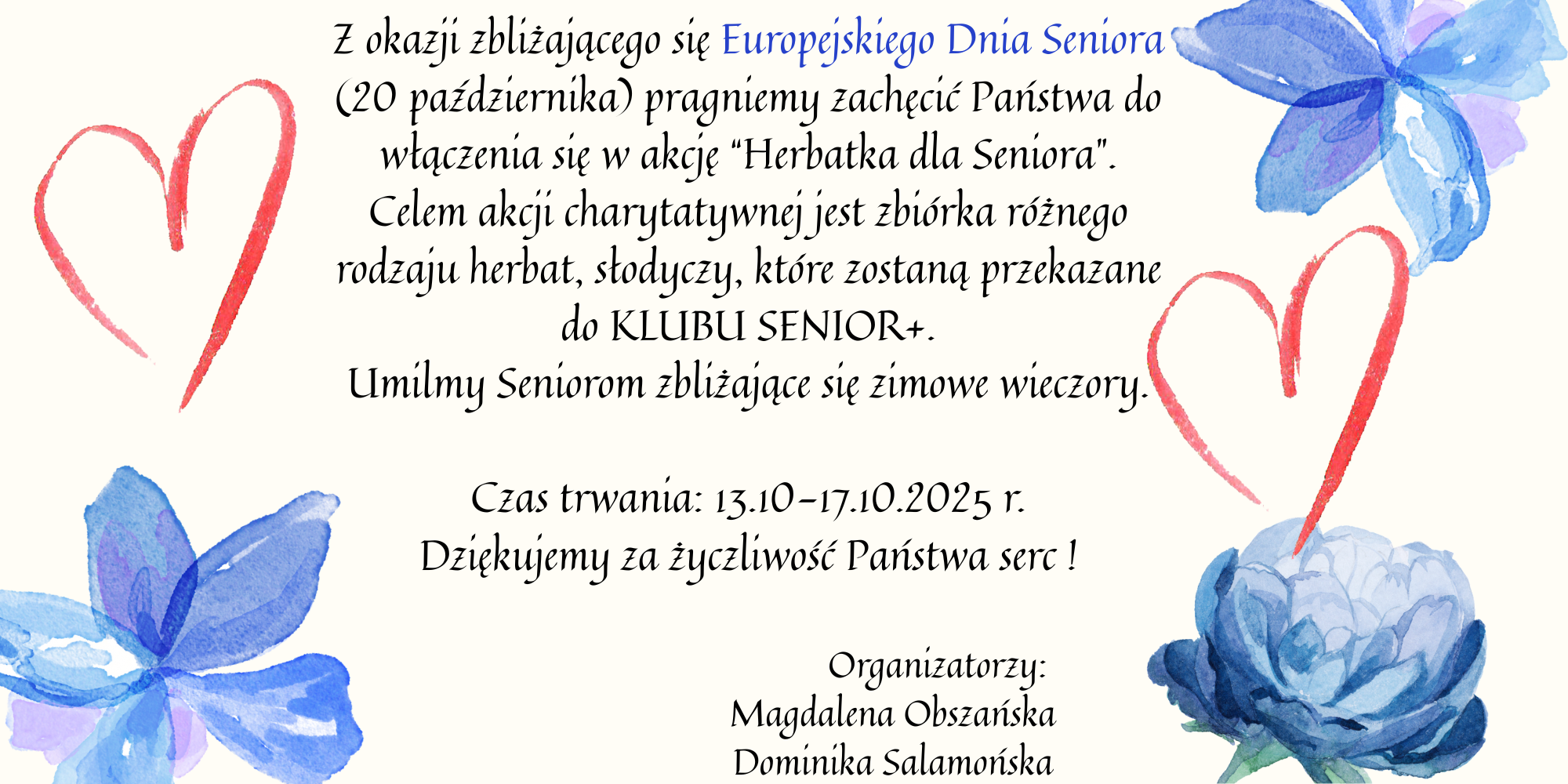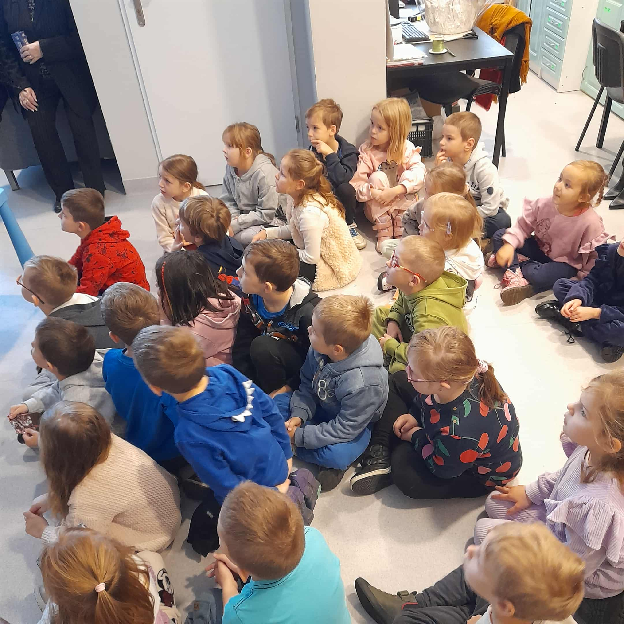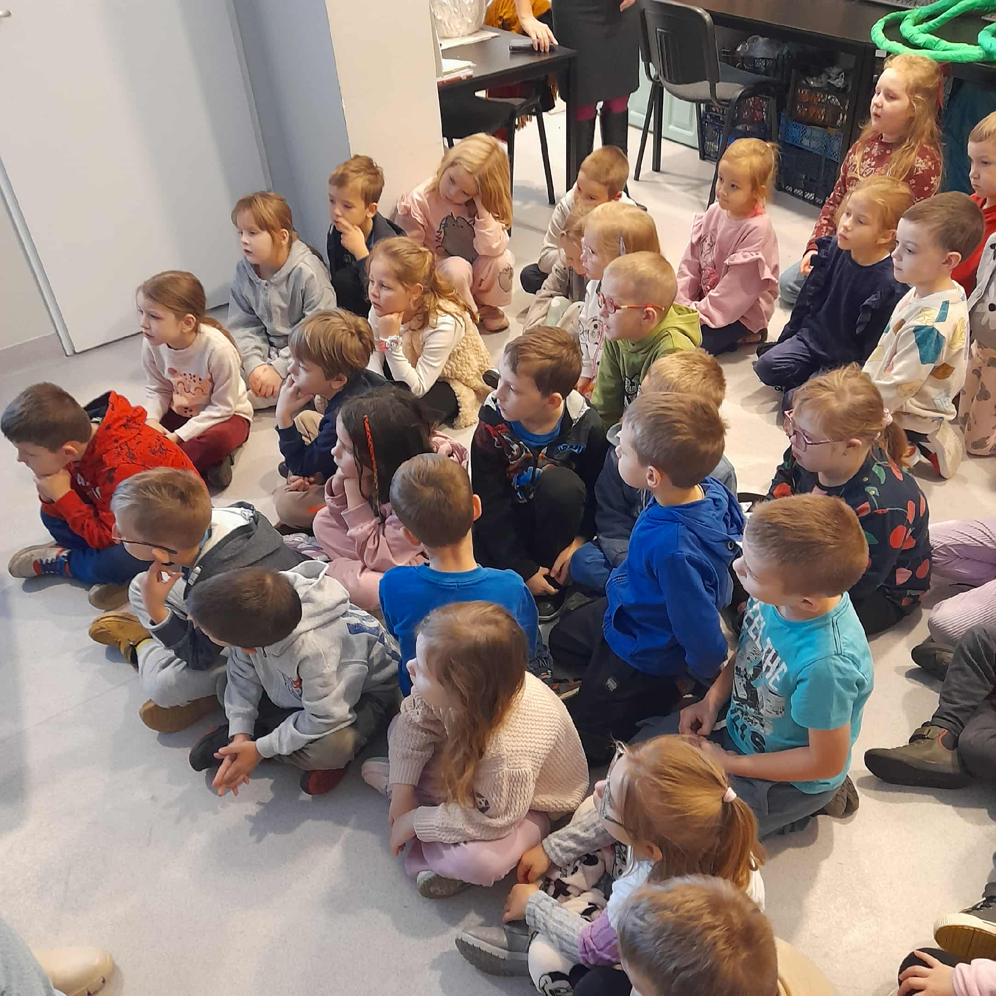 20 października obchodziliśmy Europejski Dzień Seniora. Tego dnia grupa "Motylki" i "Sówki " wybrała się do Klubu SENIOR + w celu przekazania herbat i słodyczy pochodzących ze zbiórki charytatywnej organizowanej w naszym przedszkolu. Rozpoczęliśmy życzeniami oraz przywitaniem Seniorów piosenką pt." Jesień fajne ma kałuże". Następnie wspólnie spędzony czas na rozmowach i życzliwych uśmiechach, to niezapomniane chwile. Pani Bibliotekarka przedstawiła obrazkowy teatrzyk, opowiadając o porach roku. Zarówno dzieci jak i Seniorzy byli zachwyceni. Dziękujemy za prezent w postaci ręcznie wykonanej donicy.