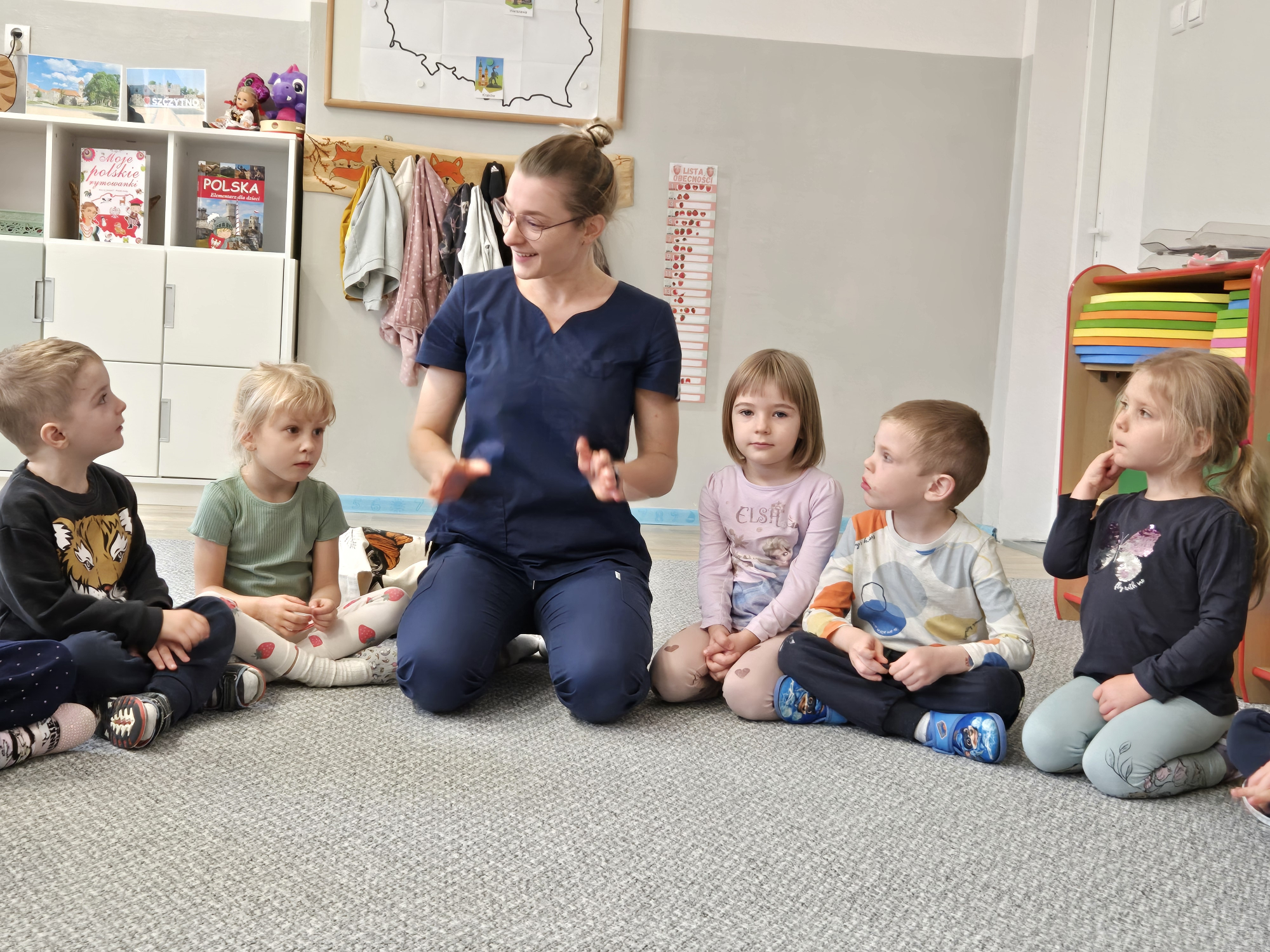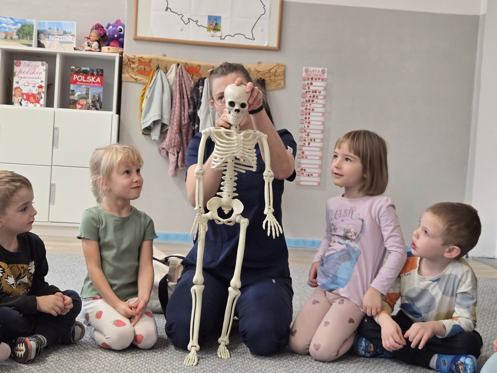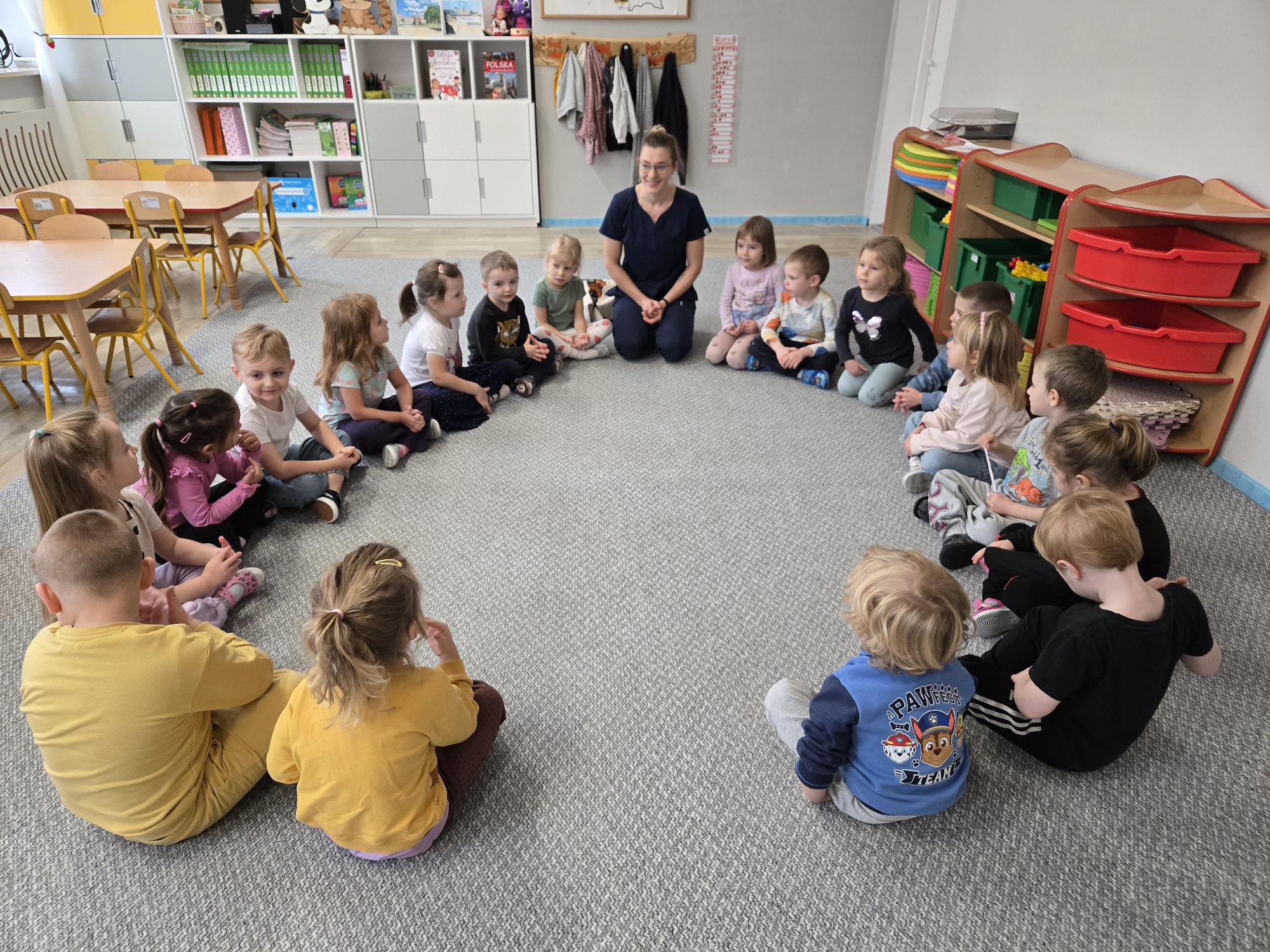 Ostatnio Poziomki odwiedziła mama Jagody by opowiedzieć o swojej pracy. Zawód który wuykonuje był niemałą zagadką. Dzieci pięknie wysłuchały i uczestniczyły w wyzwaniach jakie pani Nikola dla nas przygotowała. Na koniec z uśmiechem na ustach utrwaliliśmy nazwę zawodu pani FIZJOTERAPEUTKI :)