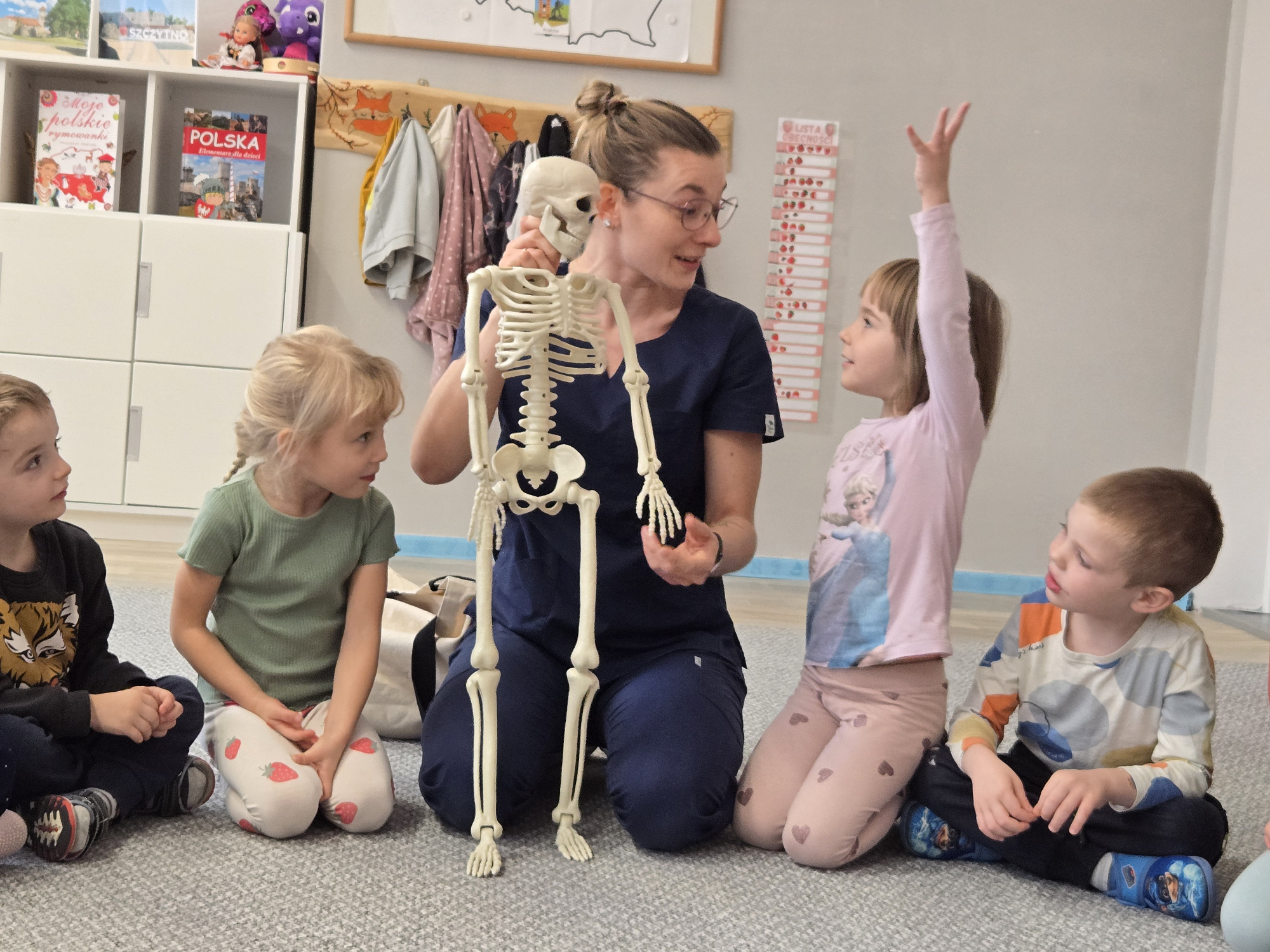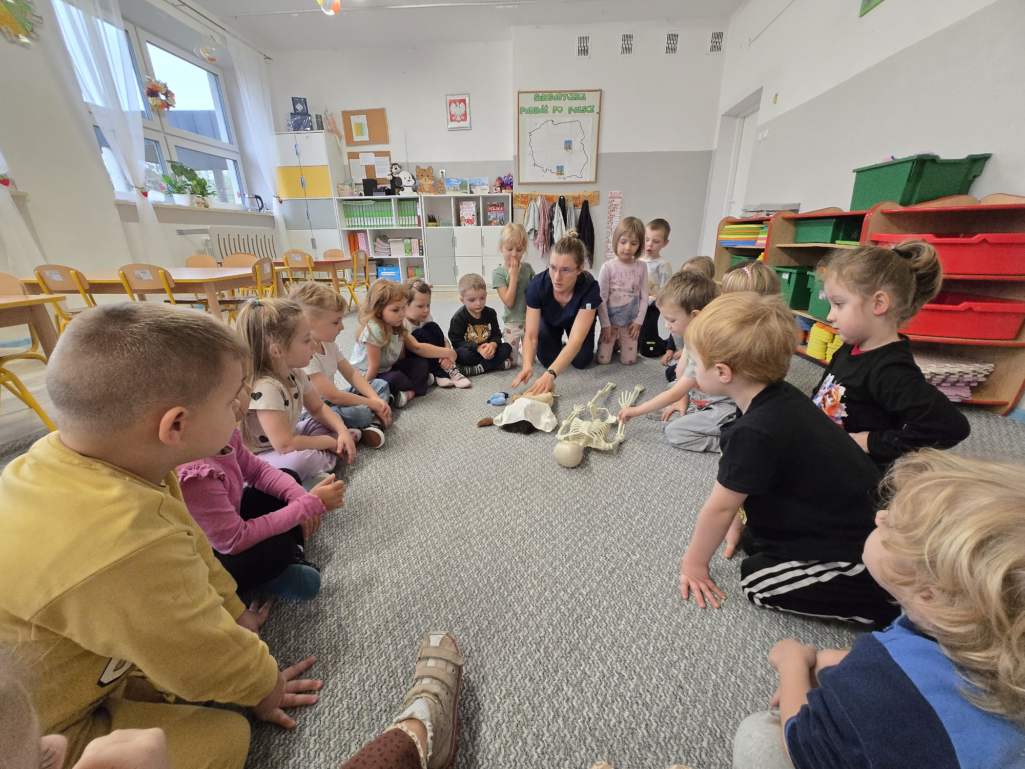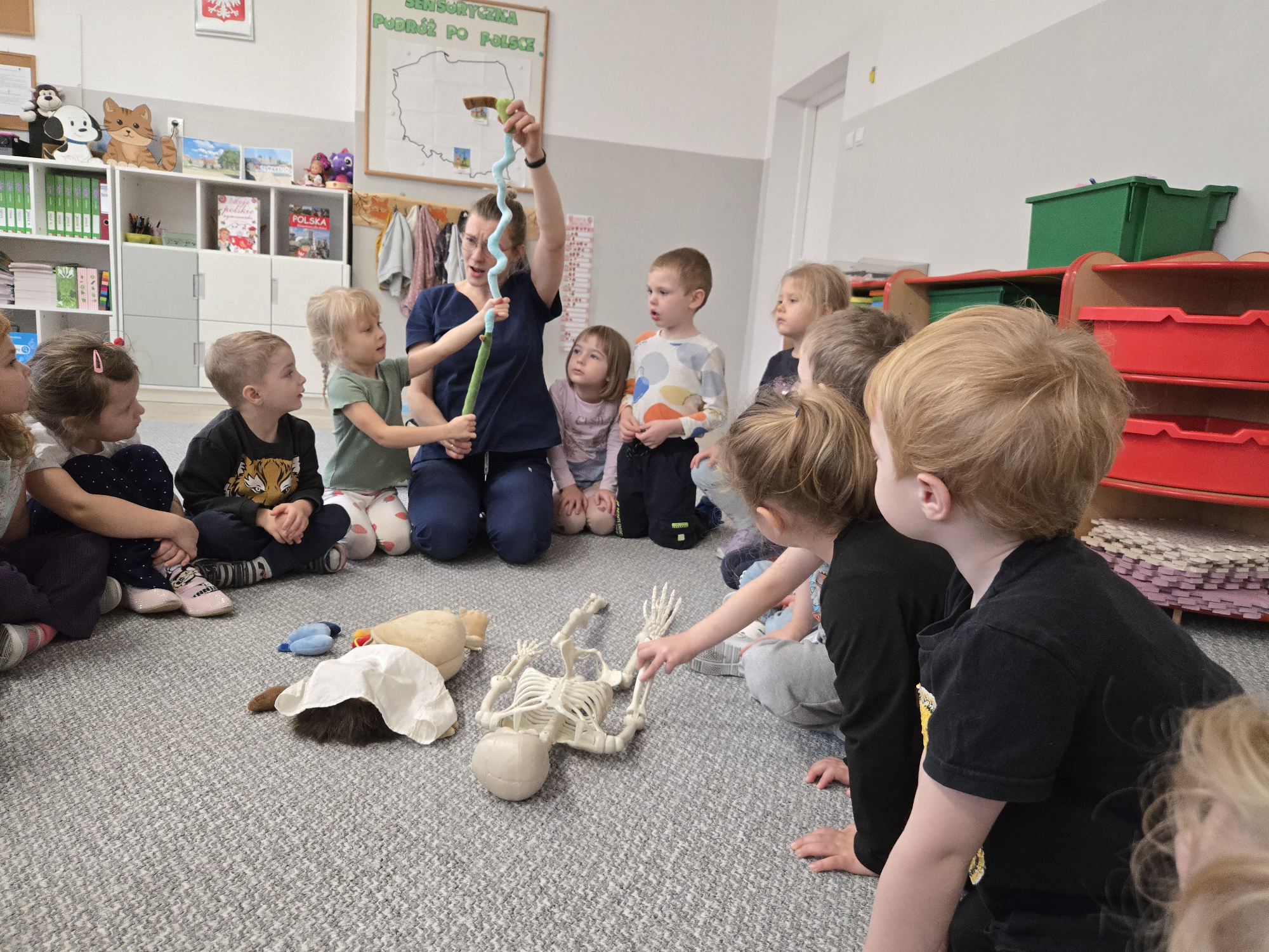 Ostatnio Poziomki odwiedziła mama Jagody by opowiedzieć o swojej pracy. Zawód który wuykonuje był niemałą zagadką. Dzieci pięknie wysłuchały i uczestniczyły w wyzwaniach jakie pani Nikola dla nas przygotowała. Na koniec z uśmiechem na ustach utrwaliliśmy nazwę zawodu pani FIZJOTERAPEUTKI :)