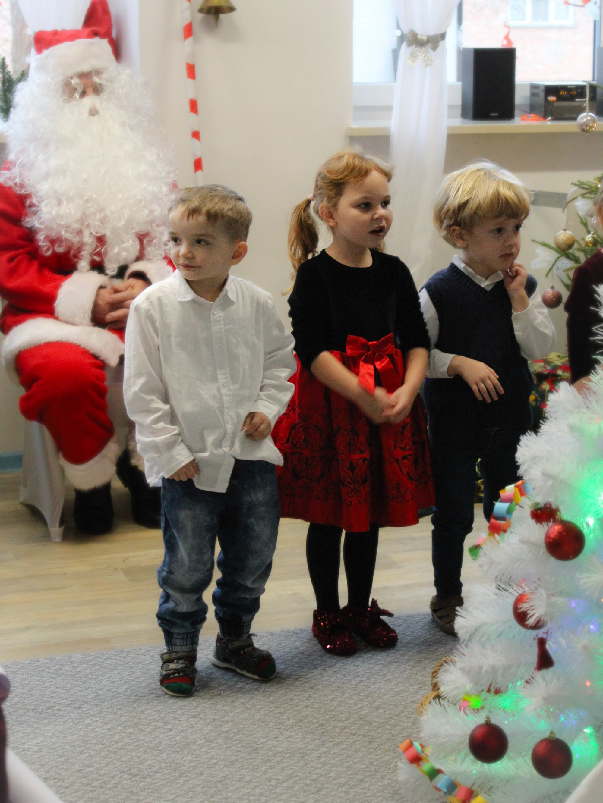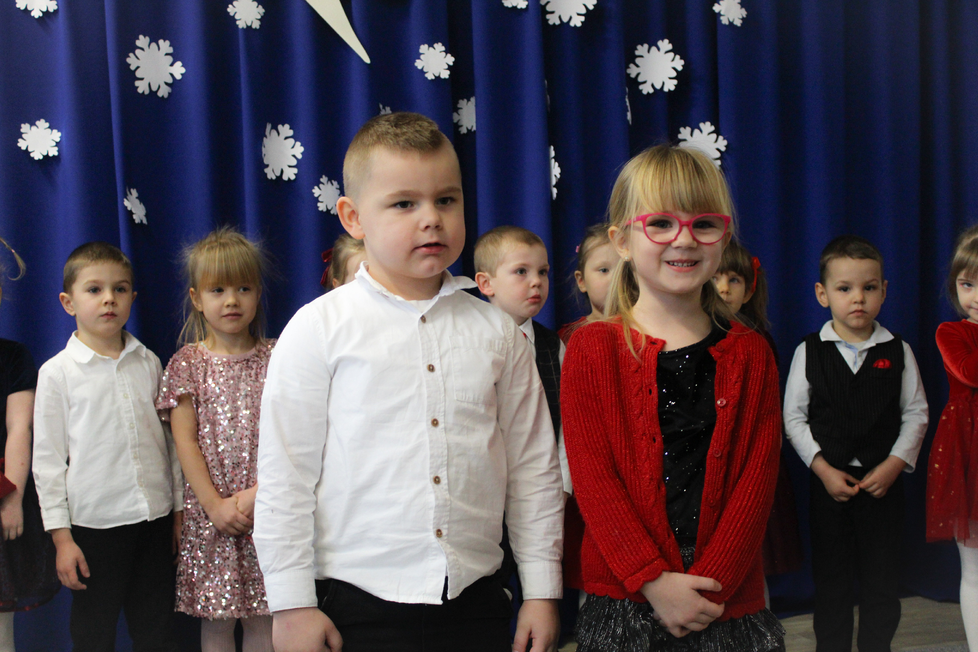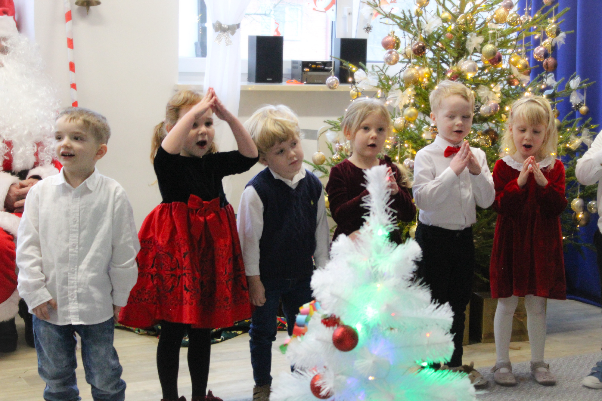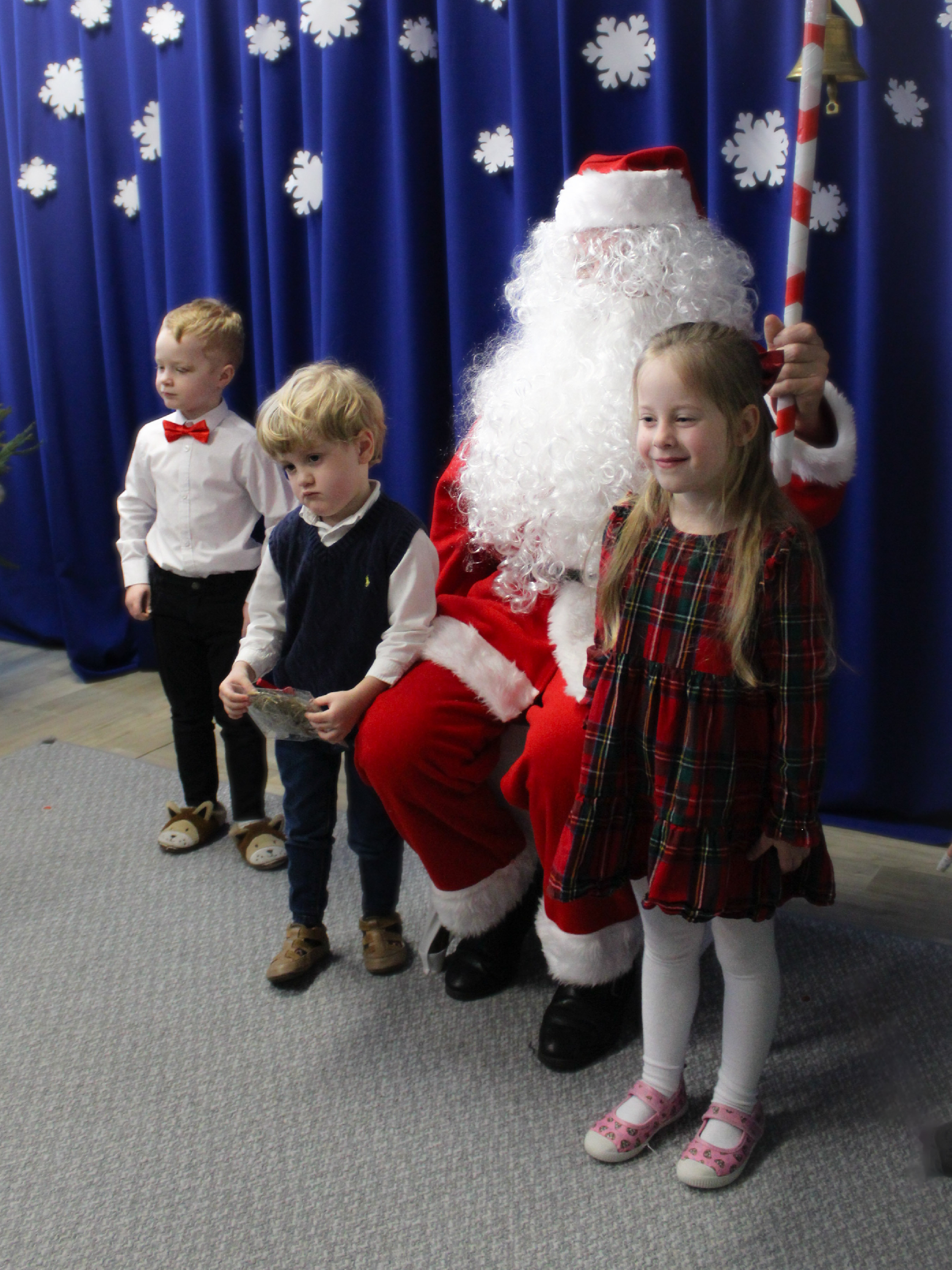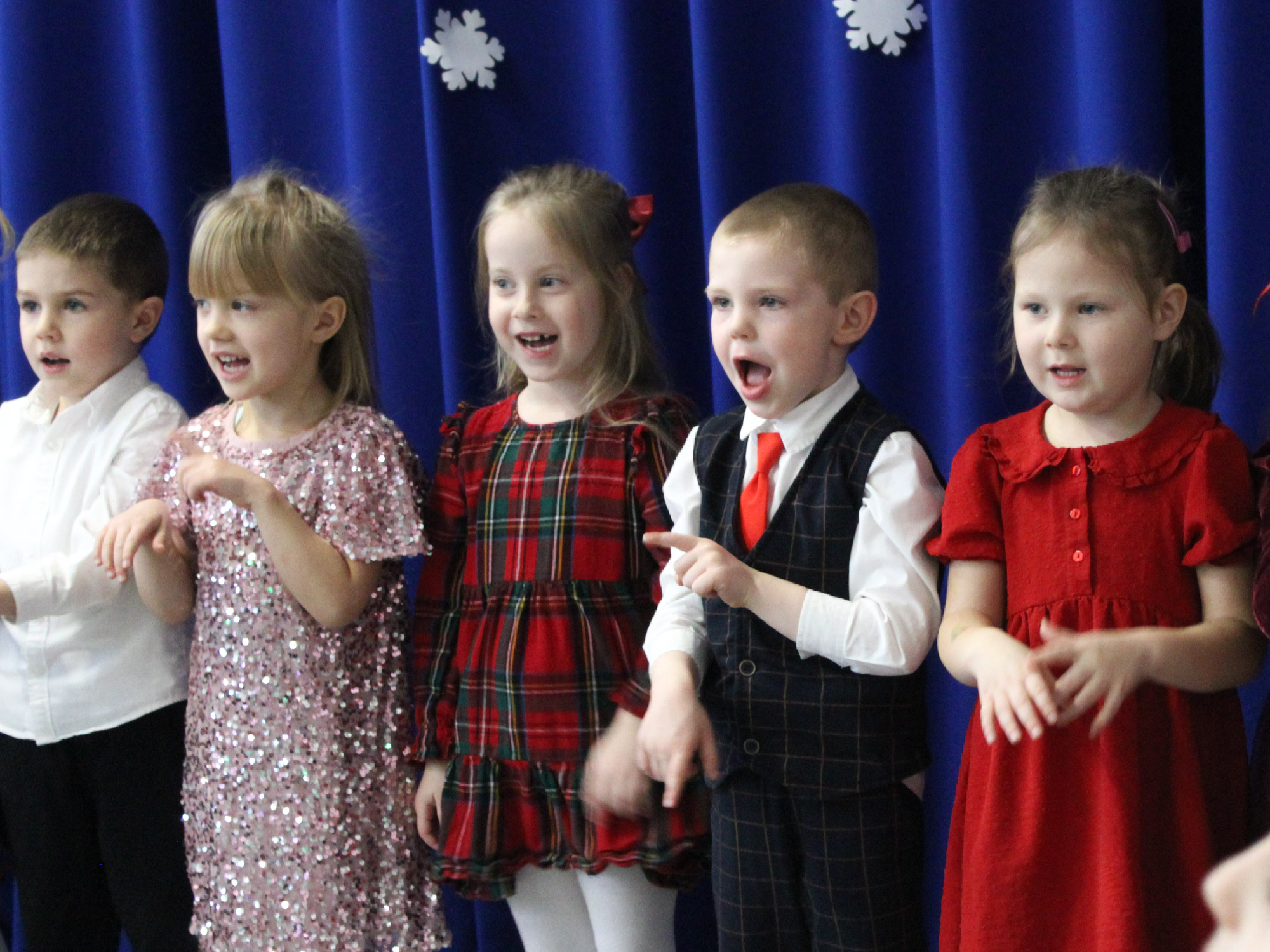 Uroczystość choinkowa w grupie Poziomki odbyła się w radosnej i ciepłej atmosferze. Dzieci zaprezentowały przygotowane wiersze, piosenki oraz tańce o tematyce świątecznej, wzbudzając wiele wzruszeń wśród zaproszonych gości. Wspólne kolędowanie oraz spotkanie z Mikołajem sprawiły dzieciom ogromną radość. Uroczystość była okazją do integracji grupy oraz wprowadzenia wszystkich w magiczny, świąteczny nastrój. 🎄