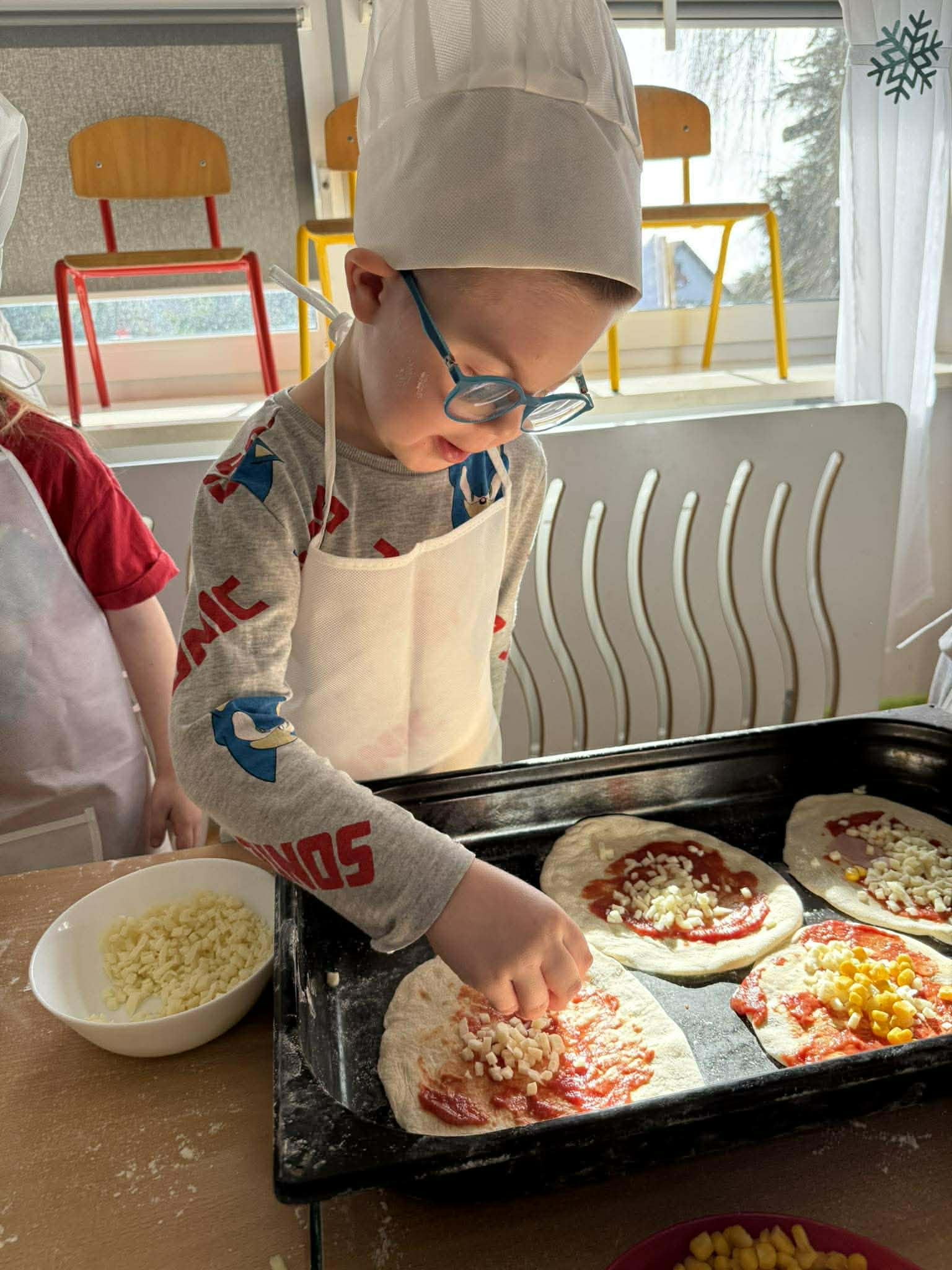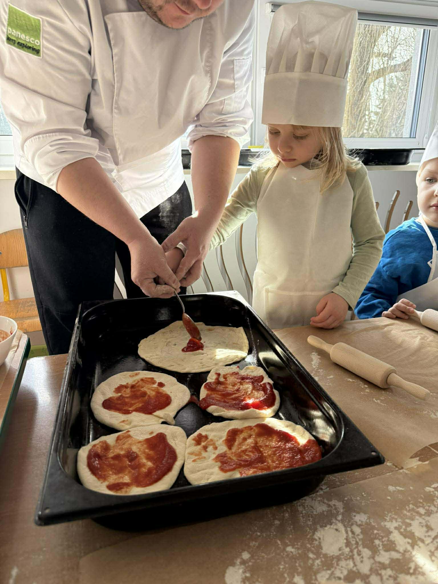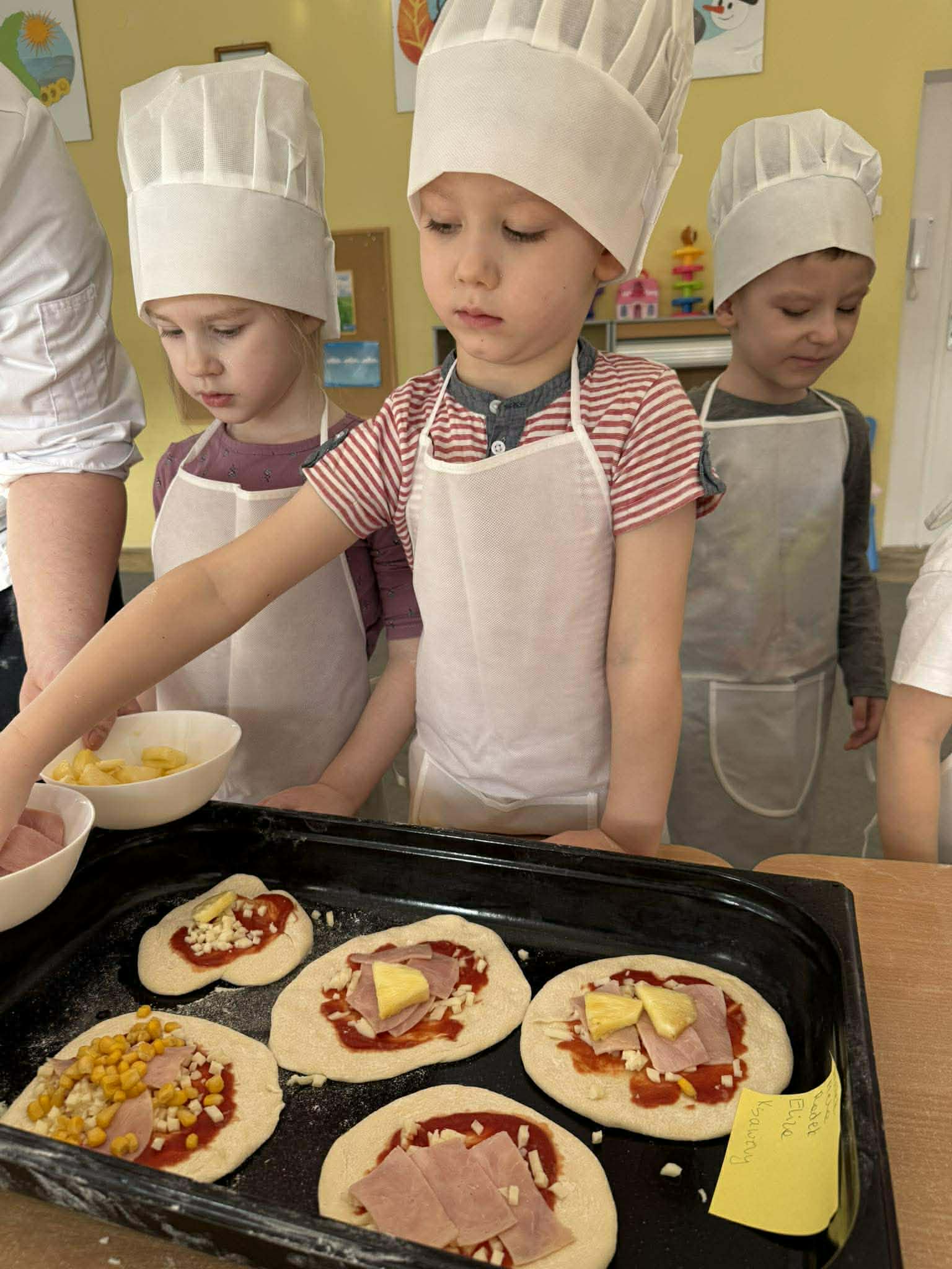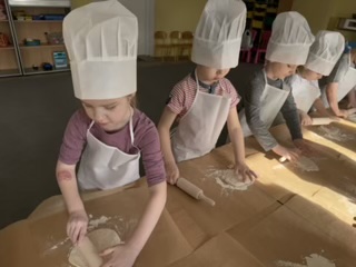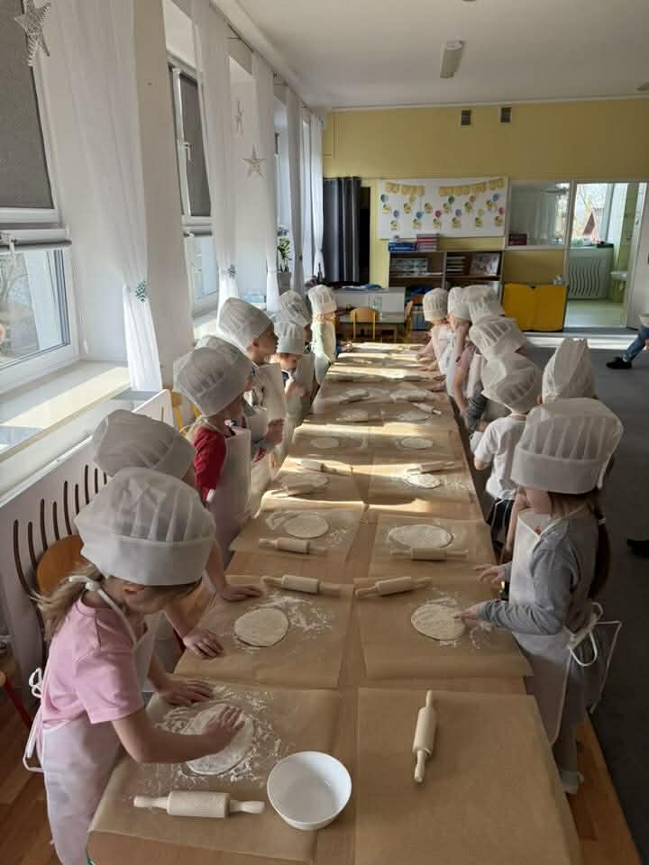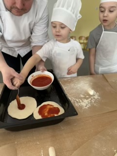 Dzieci z ogromnym zaangażowaniem uczestniczyły w zajęciach: wyrabiały ciasto, wybierały ulubione składniki i samodzielnie komponowały swoje pizze. Wspólna praca była nie tylko świetną zabawą, ale także okazją do nauki współpracy i poznania podstaw gotowania.