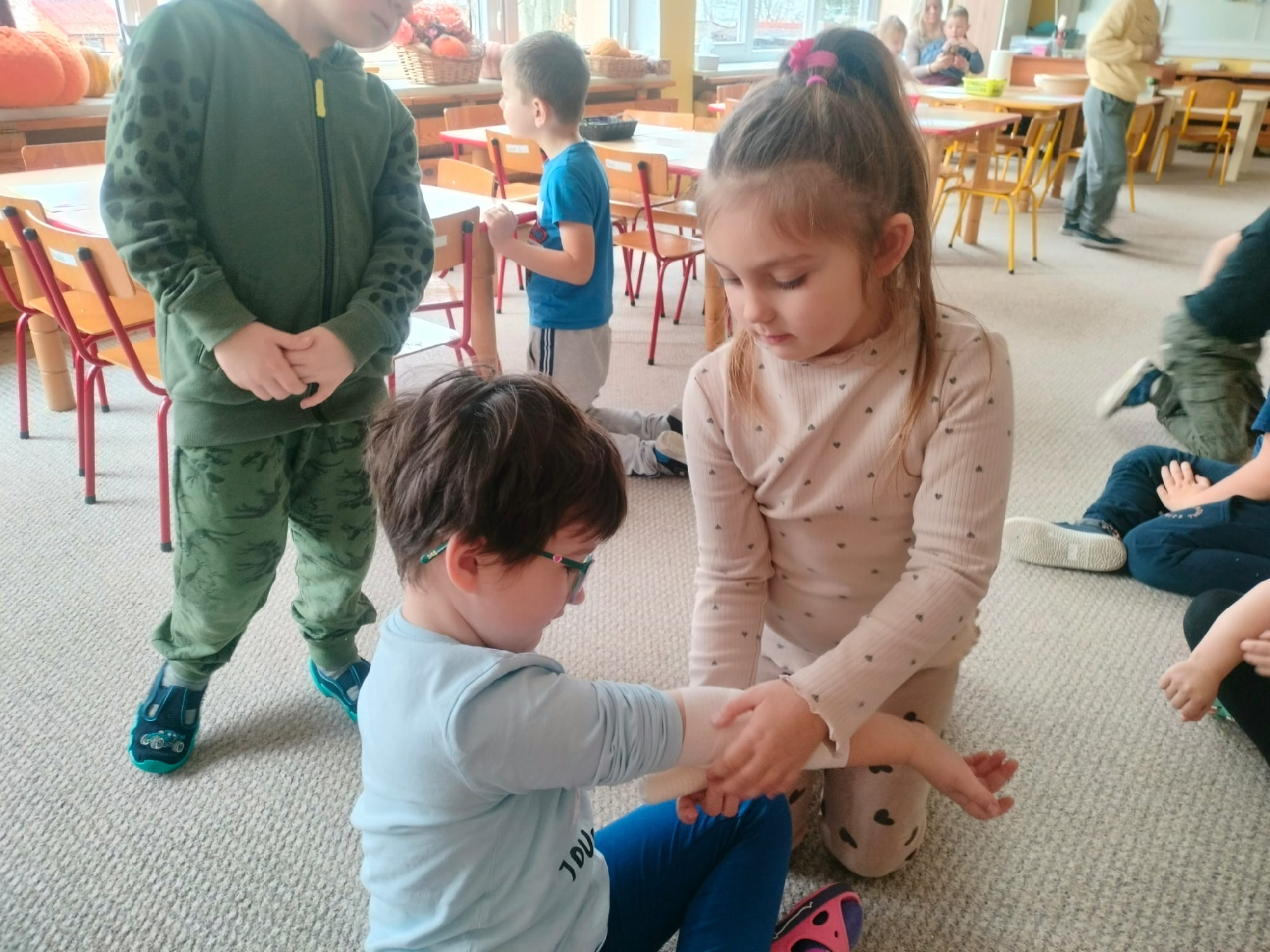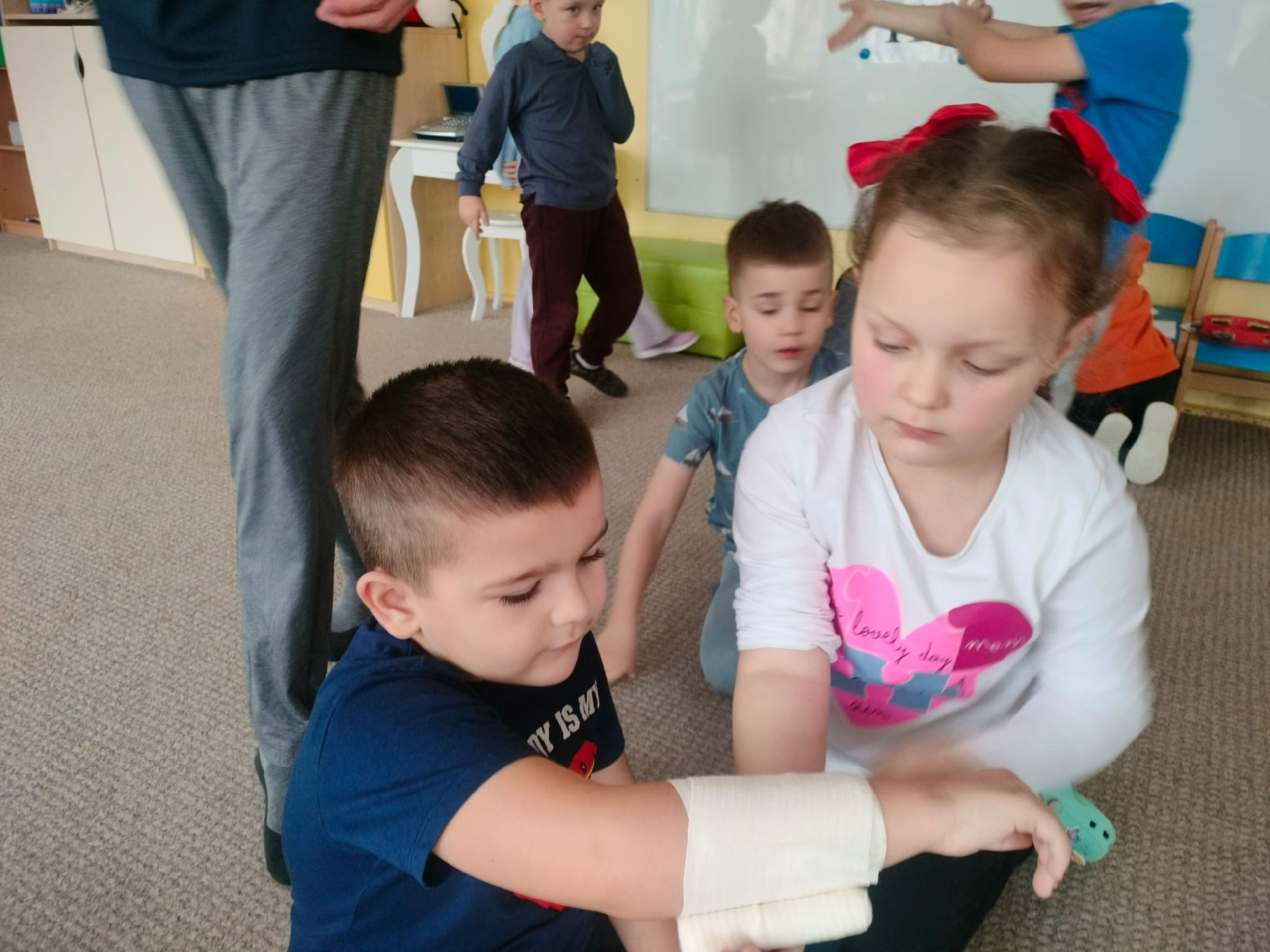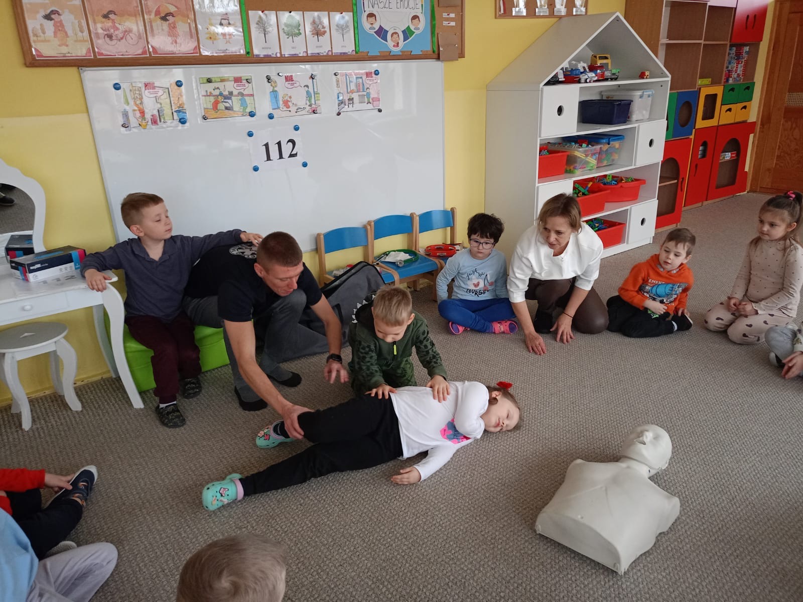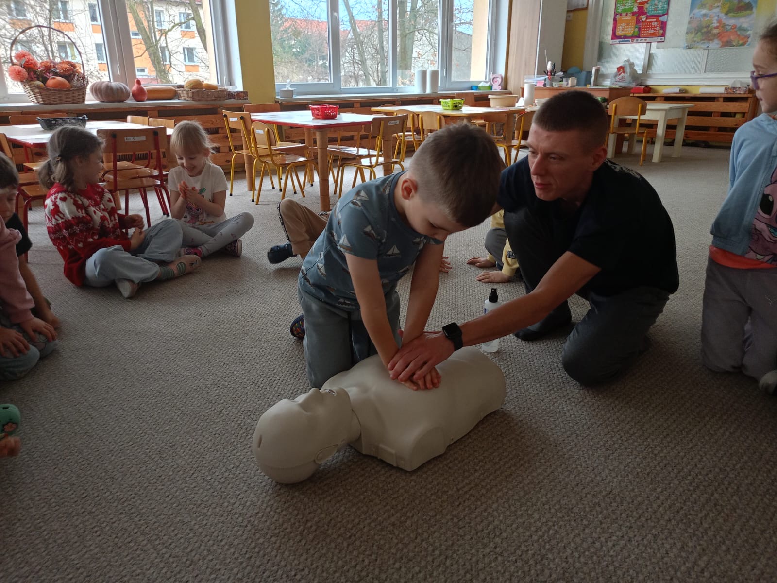 W grupie Żabki mieliśmy przyjemność powitać wyjątkowego gościa - odbyła się wizyta ratownika, który opowiedział dzieciom o swojej pracy i zasadach udzielania pierwszej pomocy. Przedszkolaki z dużym zainteresowaniem uczestniczyły w spotkaniu, ucząc się, jak reagować w sytuacjach zagrożenia