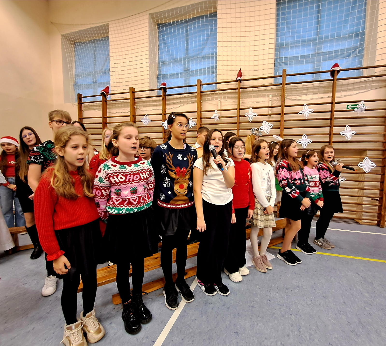 z wychowawczynią p. Dominiką Sawicką wprowadziło nas w świąteczny nastrój śpiewając pastorałkę „Od serca do ucha”.
