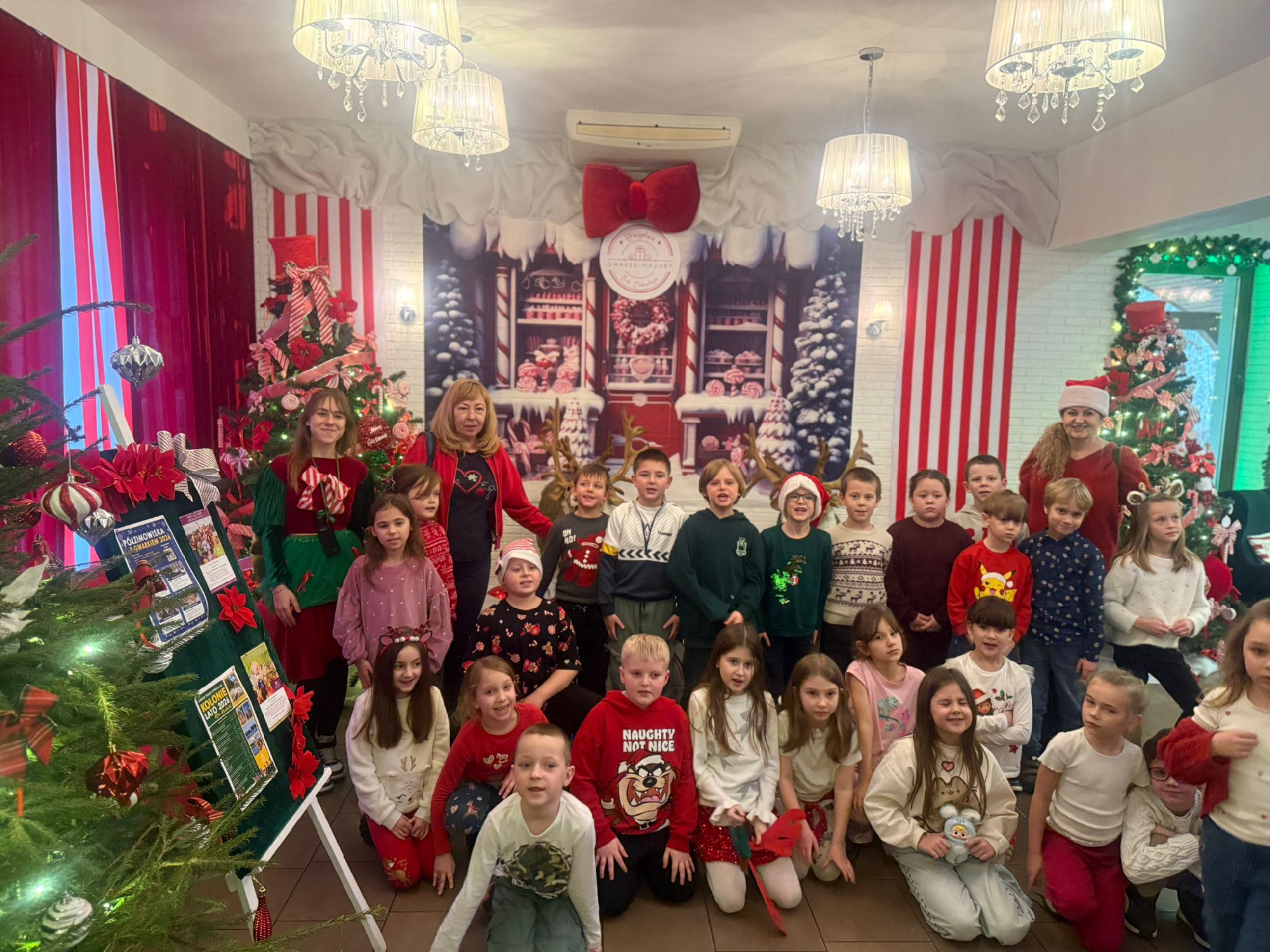 W grudniu w klasie I B zapanował świąteczny klimat. Dzieci uczestniczyły w warsztatach bożonarodzeniowych w Pracowni Elfów, gdzie wykonały „Magiczną Śnieżną Kulę” oraz wzięły udział w sesji zdjęciowej we wnętrzu ogromnej kuli wypełnionej świątecznymi gadżetami. Kolejną atrakcją była wycieczka do Przystani Świętego Mikołaja w Pięknej Górze niedaleko Giżycka. Na uczestników czekał bogaty program niespodzianek w świątecznej atmosferze. Najważniejszym punktem była Komnata Świętego Mikołaja, w której dzieci mogły spotkać się z Mikołajem oraz porozmawiać o swoich marzeniach. Dużym zainteresowaniem cieszyła się Akademia Elfów – kreatywne warsztaty, podczas których uczniowie tworzyli świąteczne ozdoby i uczyli się współpracy. Radości i ruchu dostarczyła również Lodowa Kraina Zabawy, pełna gier i konkurencji prowadzonych przez animatorów. Wycieczka była pełna radości, świątecznej magii i niezapomnianych wrażeń.