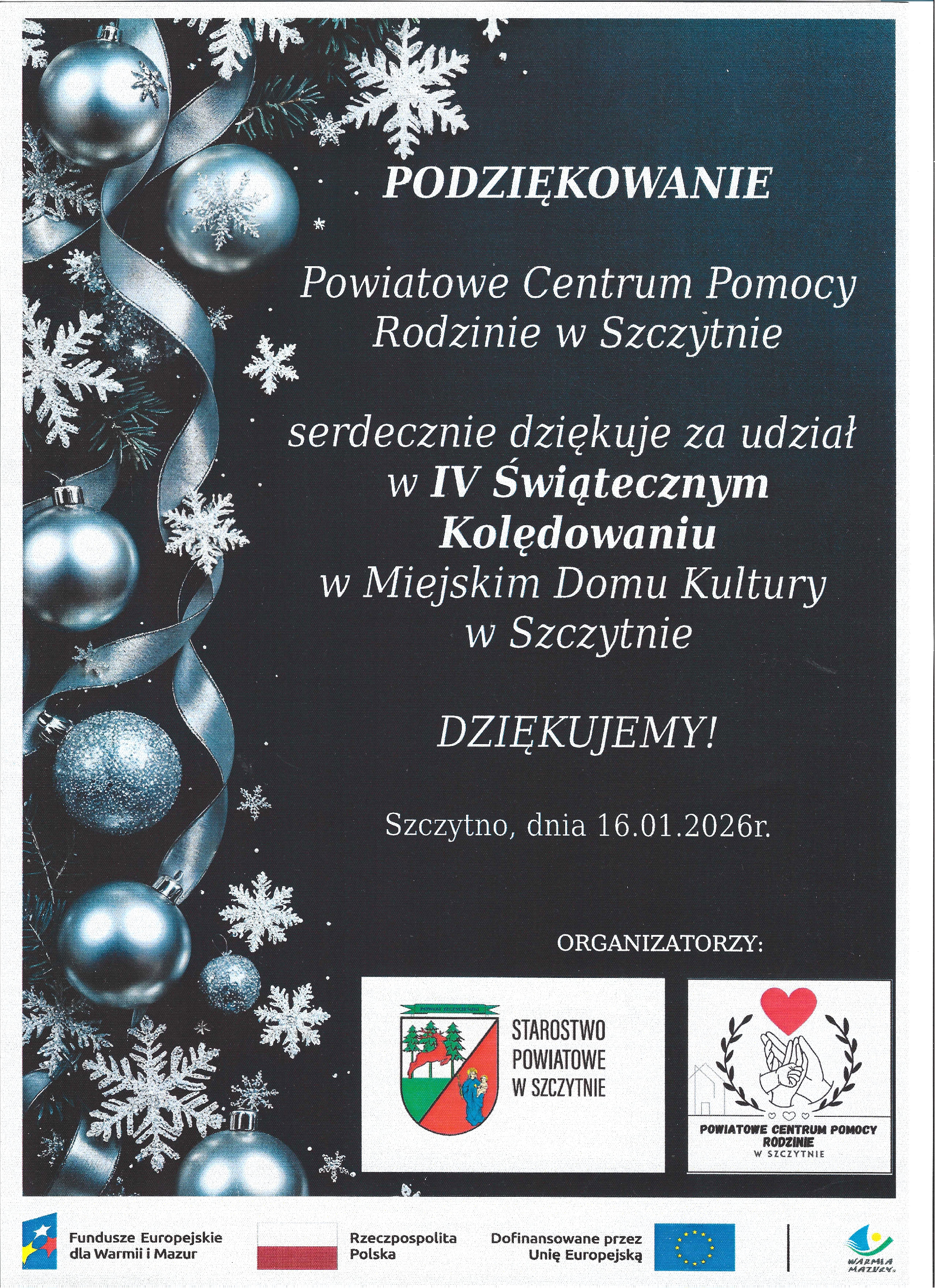 W piątek, 16 stycznia 2026 r. w Miejskim Domu Kultury odbyło się IV Kolędowanie zorganizowane przez PCPR w Szczytnie. Wydarzenie zgromadziło rodziny zastępcze i mieszkańców, a na scenie wystąpiły dzieci z pieczy zastępczej, uczniowie oraz chóry, świętując bożonarodzeniową tradycję. Podczas impreze nie zabrakło szkolnego zespołu esPe2, który miał zaszczyt otwierać koncert.