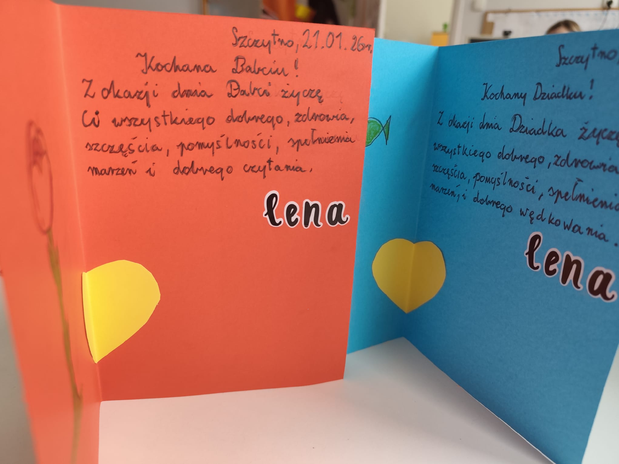 Po zakończeniu konkursu kartki zostały zwrócone autorom, aby mogli z dumą wręczyć je swoim Babciom i Dziadkom z okazji ich święta.