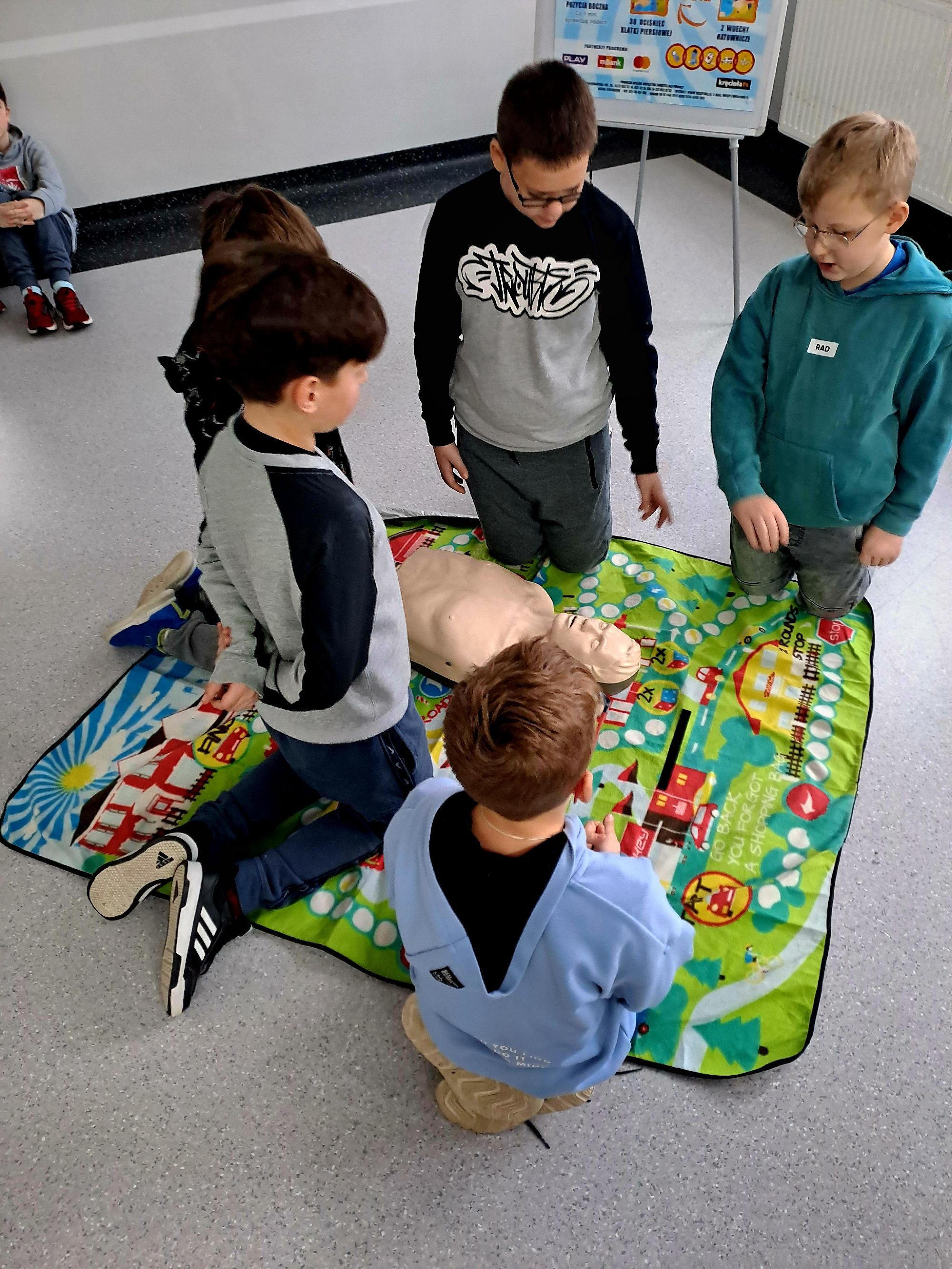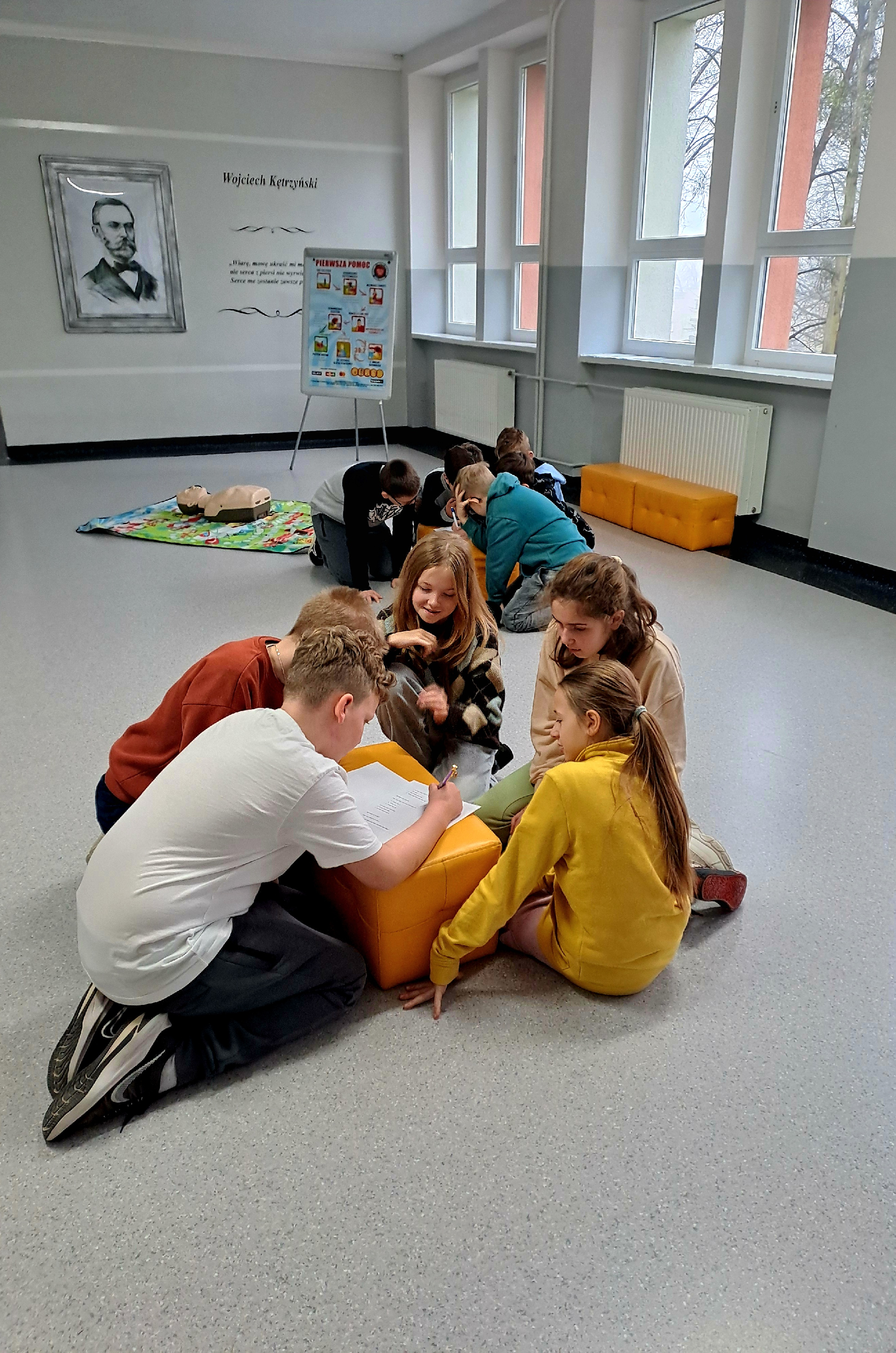 Część teoretyczna – uczniowie rozwiązywali test wiedzy z zakresu pierwszej pomocy.