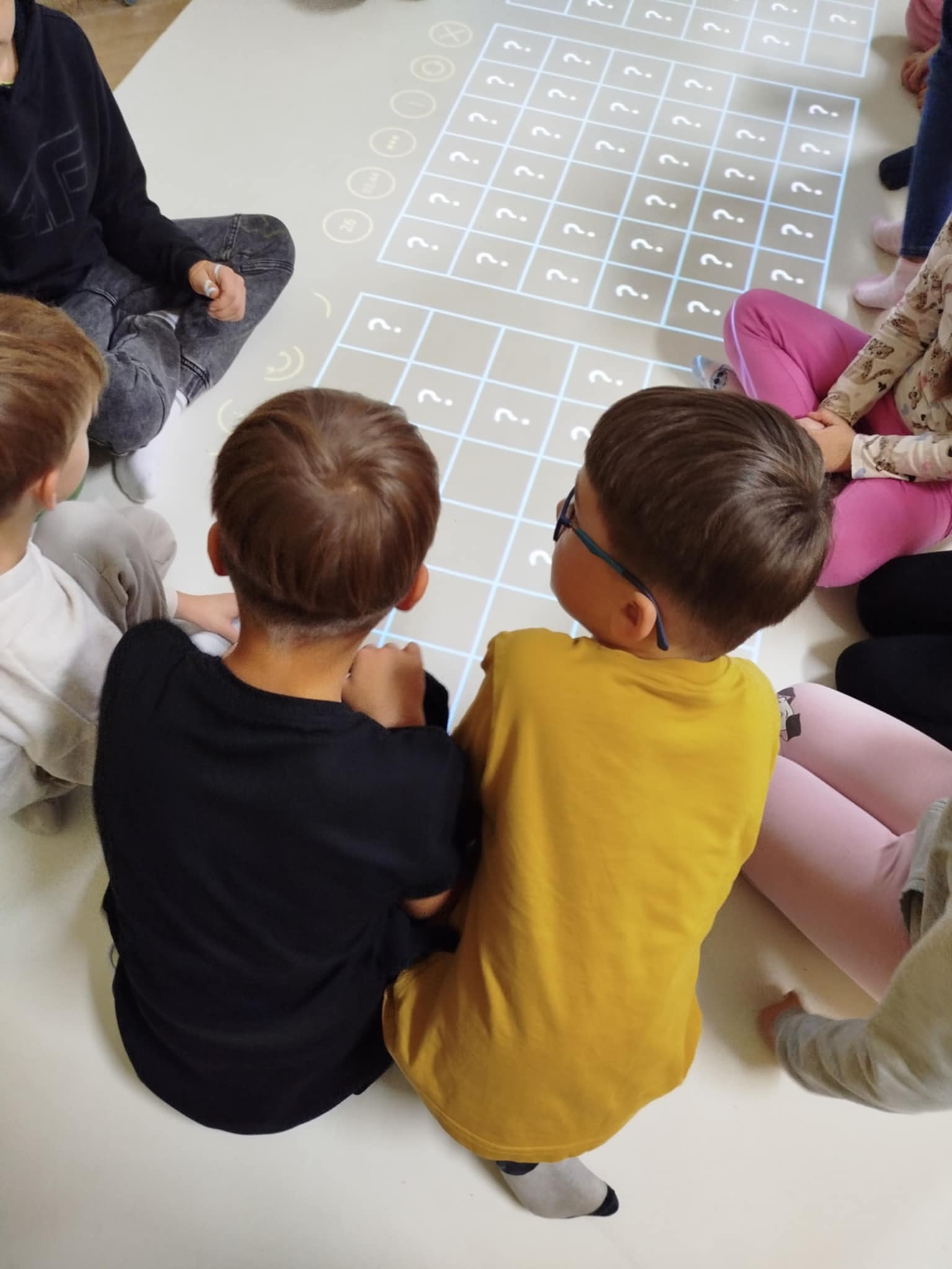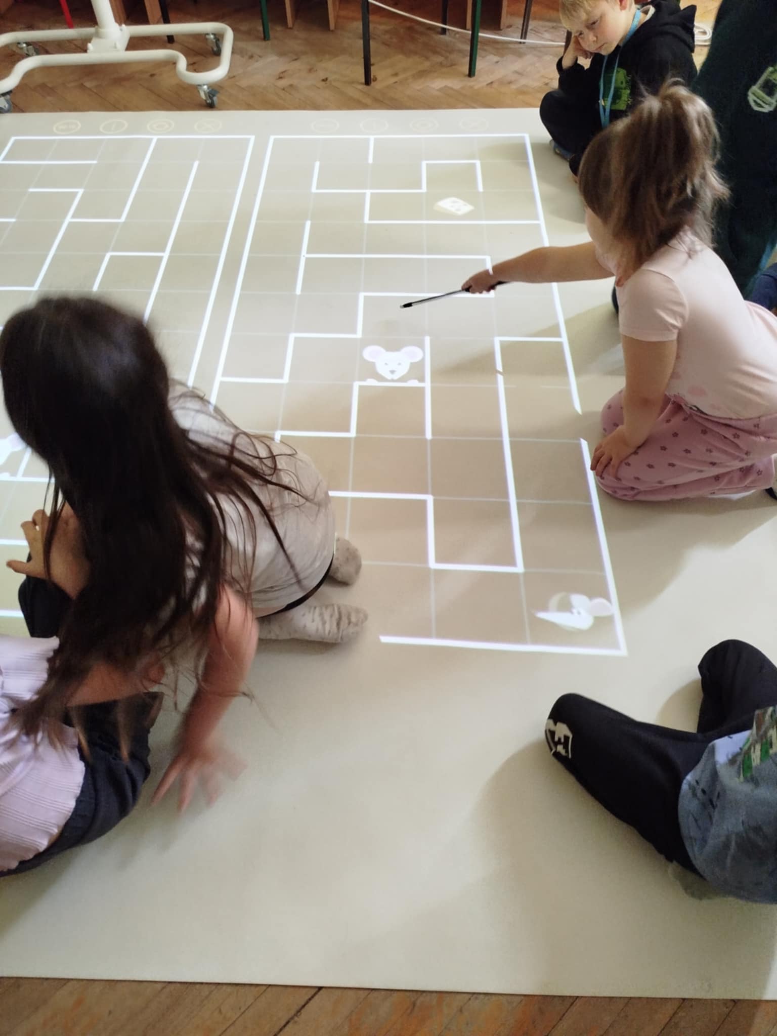 W drugim tygodniu na lekcjach informatyki wykorzystano interaktywną podłogę oraz kodowanie na platformie https://hourofcode.com.