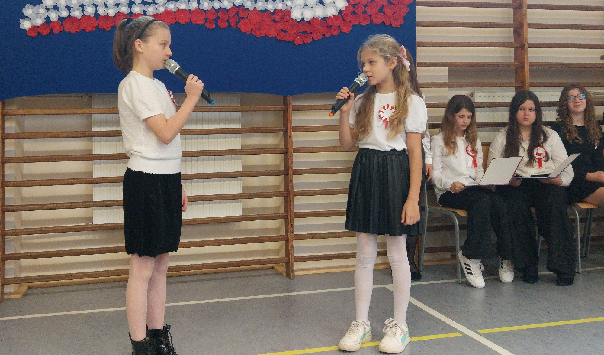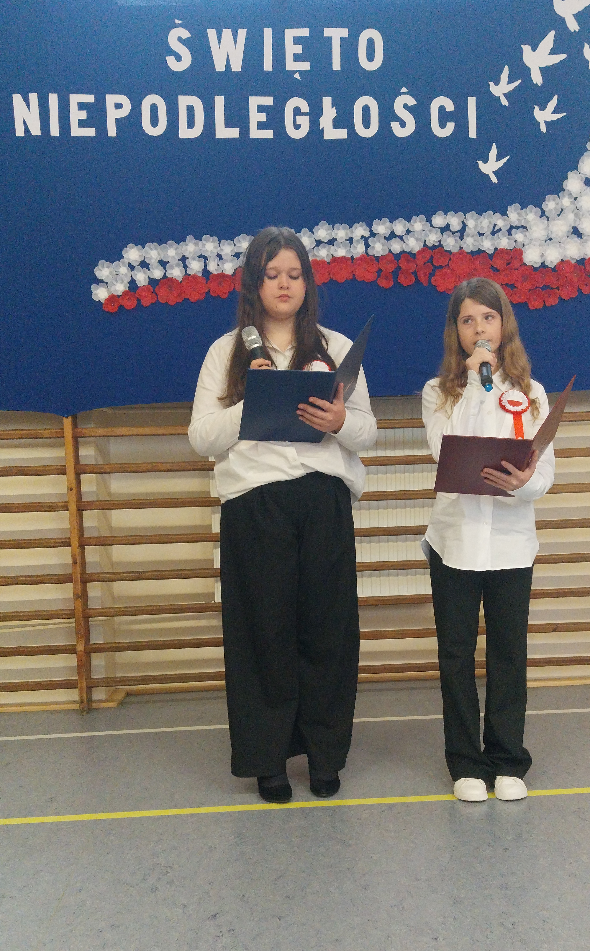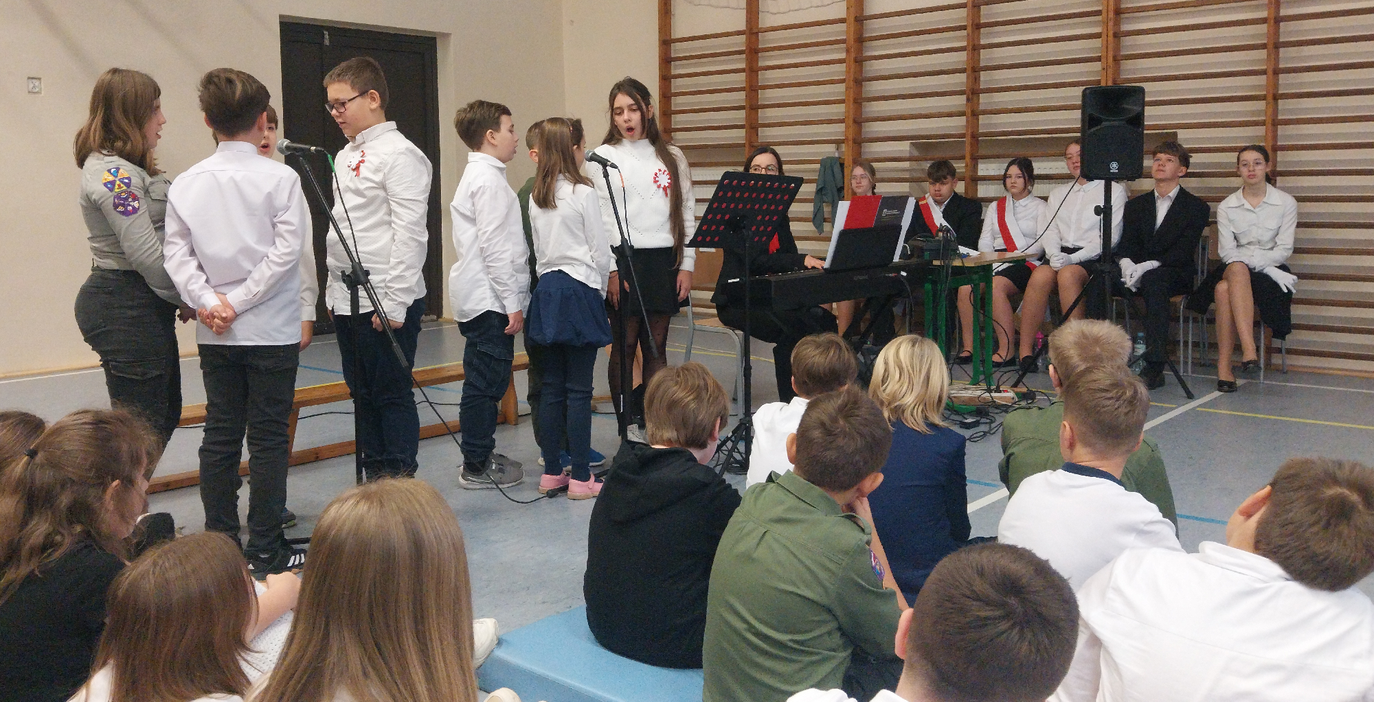 Jak doskonale wiemy, nasze Święto Niepodległości przypada 11 listopada. Jest to oczywiście dzień wolny od zajęć, dlatego apele odbyły się kilka dni wcześniej. Wykonawcy doskonale poradzili sobie z tremą i wystąpili przed widownią z lekcją patriotyzmu. Składała się ona z cytatów naszego najważniejszego ojca niepodległości marszałka Józefa Piłsudskiego przeplatanych scenkami łączącymi historię i współczesność, patriotycznymi wierszami i utworami muzycznymi. Na dwóch scenach zaprezentowali się uczniowie klas: 4 c, 5 c, 6 a i 7 a. Wykonawców przygotowali: pani Judyta Mazur oraz panowie – Jarosław Kubiaczyk i Grzegorz Pietrzyk. O stronę plastyczną zadbała pani Agata Olifirko.