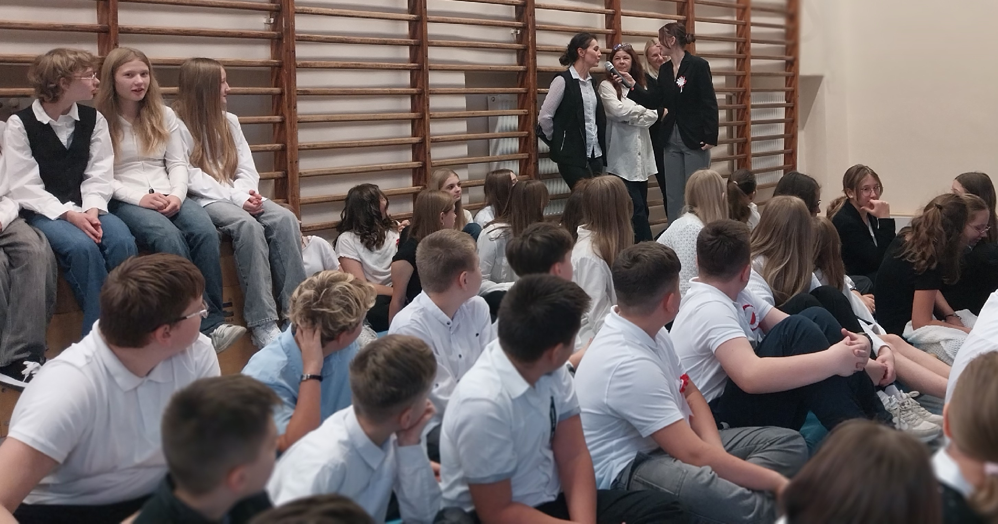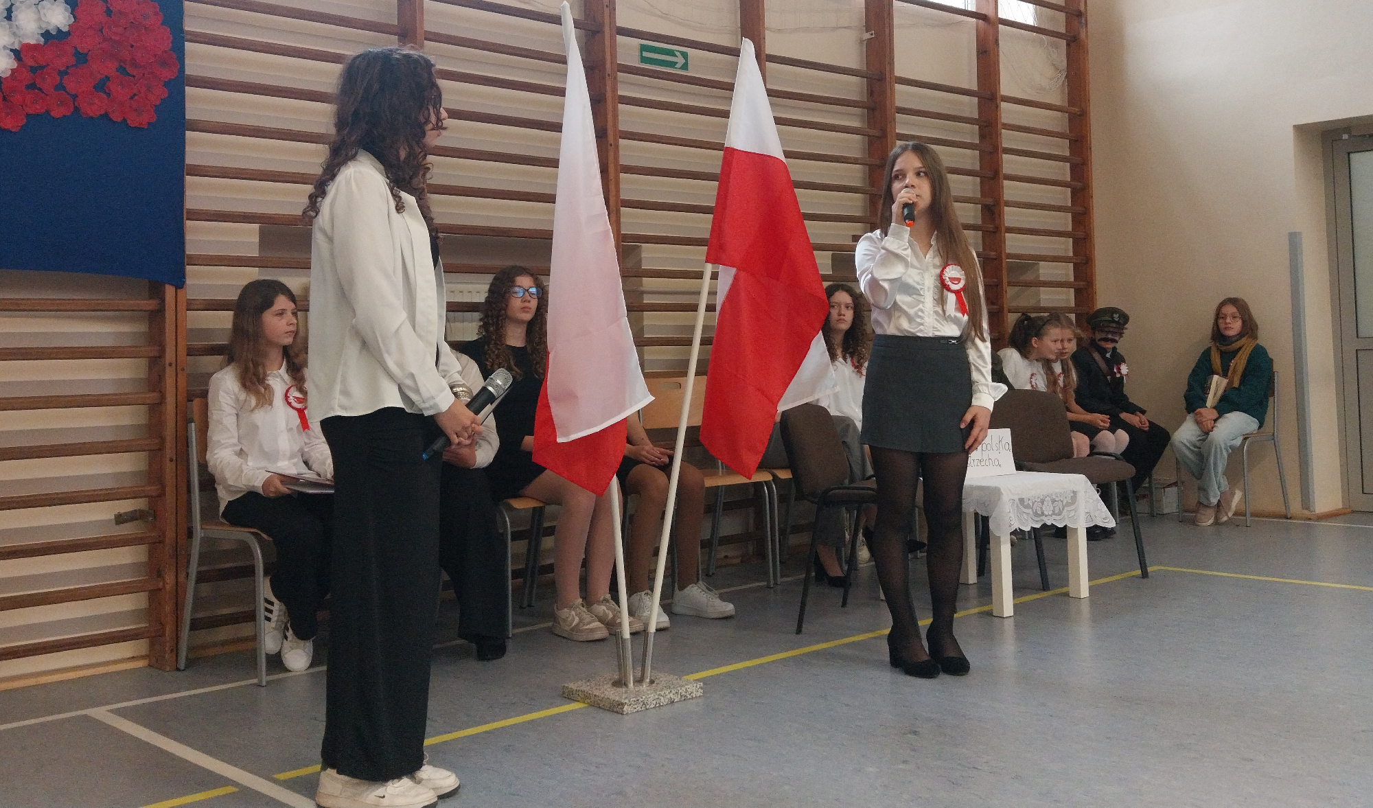 Nie był to jedyny w tym dniu akcent związany ze Świętem Niepodległości. W piątek 7 listopada w naszej szkole obowiązywał strój galowy, niemal wszyscy mieli przypięte do piersi biało-czerwone kotyliony, a o godzinie 11.11 w klasach zabrzmiał wykonywany wspólnie „Mazurek Dąbrowskiego”, czyli nasz narodowy hymn.