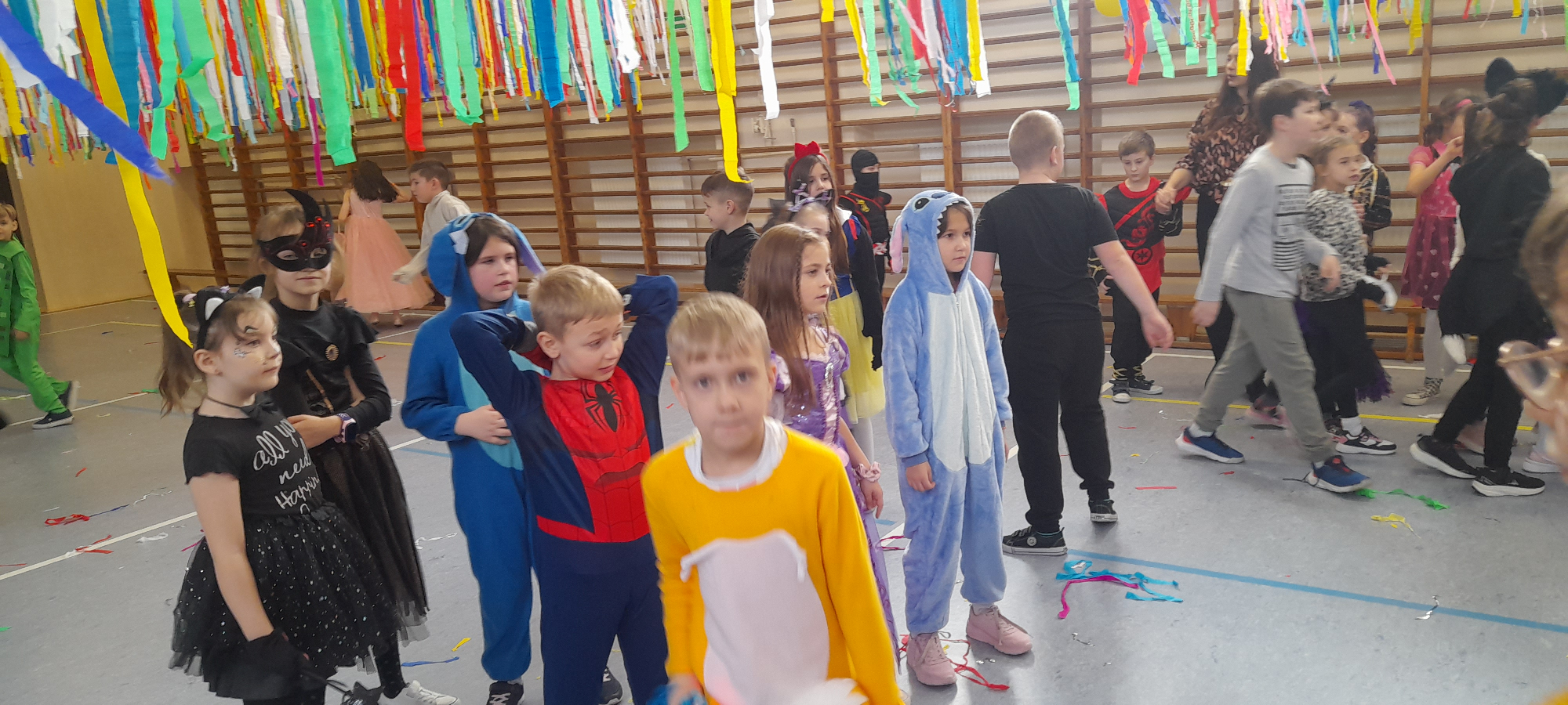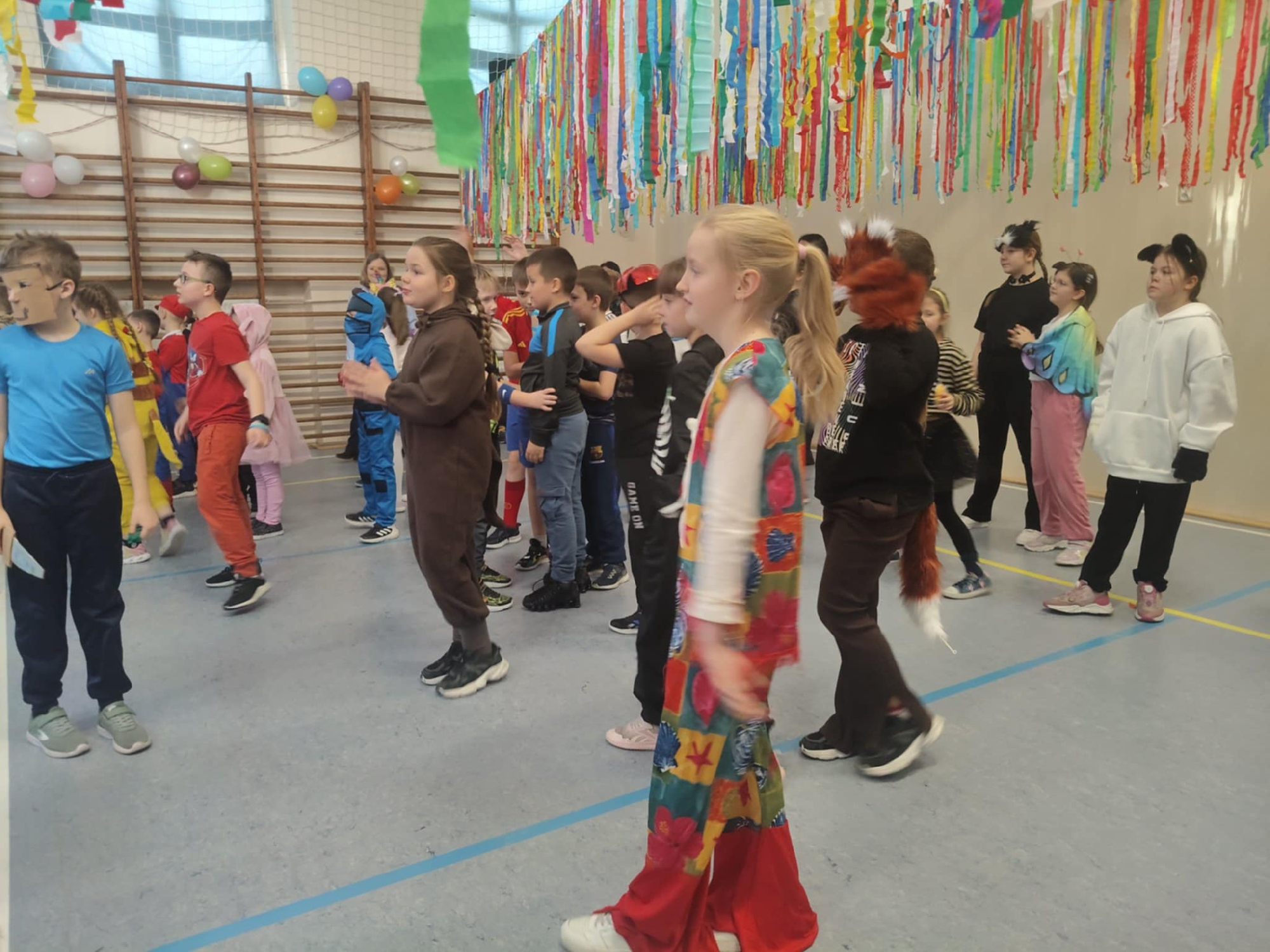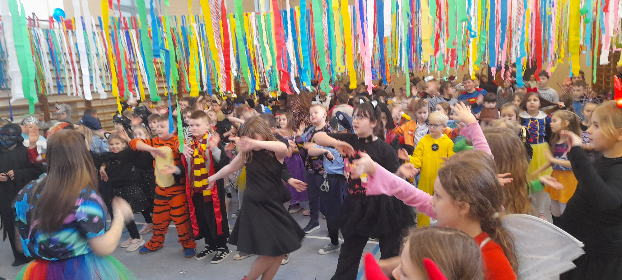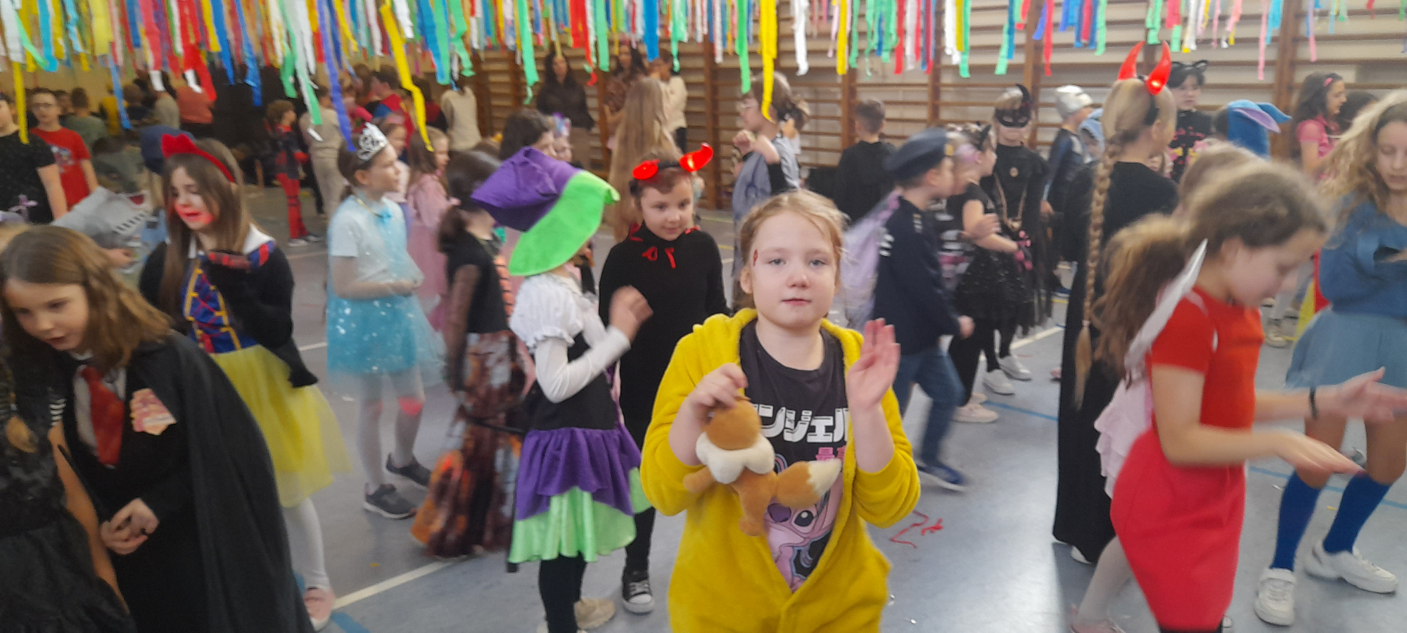 W dniu 12.01.26 r. w naszej szkole odbył się bal karnawałowy. Wzięli w nim udział uczniowie klas 1-3. Dzieci przebrane były za różne postacie z bajek oraz superbohaterów. Rozrywkę naszym uczniom zapewniły animatorki z Centrum Tańca Wasilewski-Felska. Kolorowy wystrój sali, energetyczna muzyka wprowadziły radosny nastrój. Dzieci chętnie brały udział w zabawach tanecznych, konkursach, które przygotowała prowadząca. Wspólna zabawa przyniosła naszym uczniom wiele uśmiechu i zadowolenia oraz sprzyjała integracji.