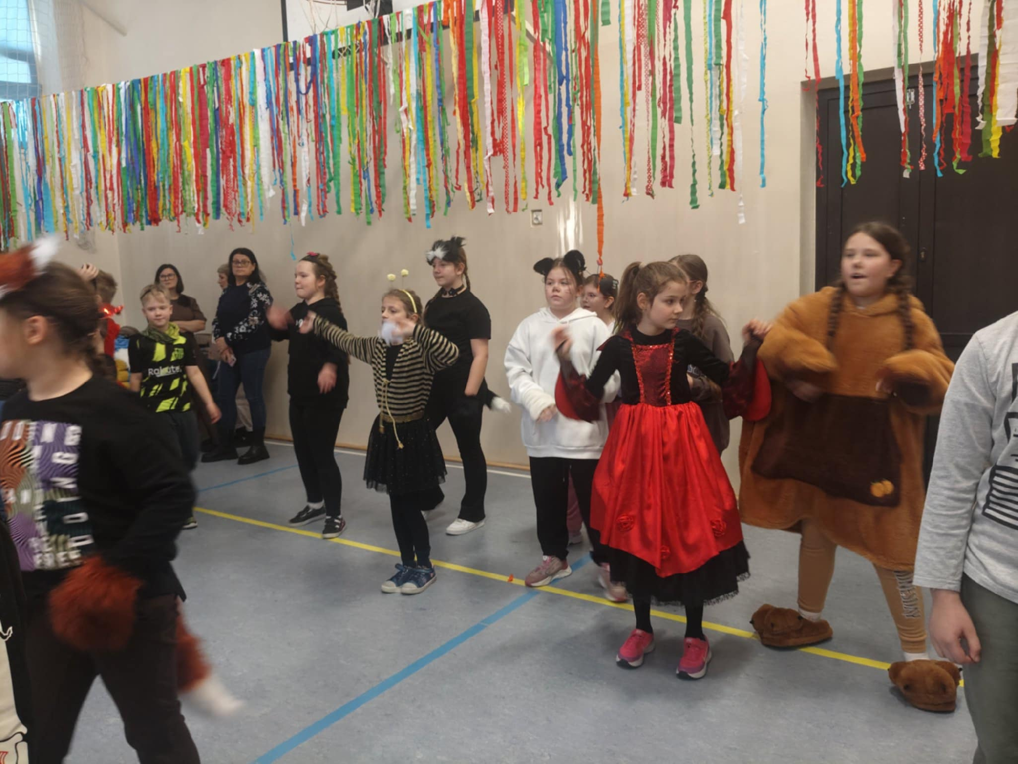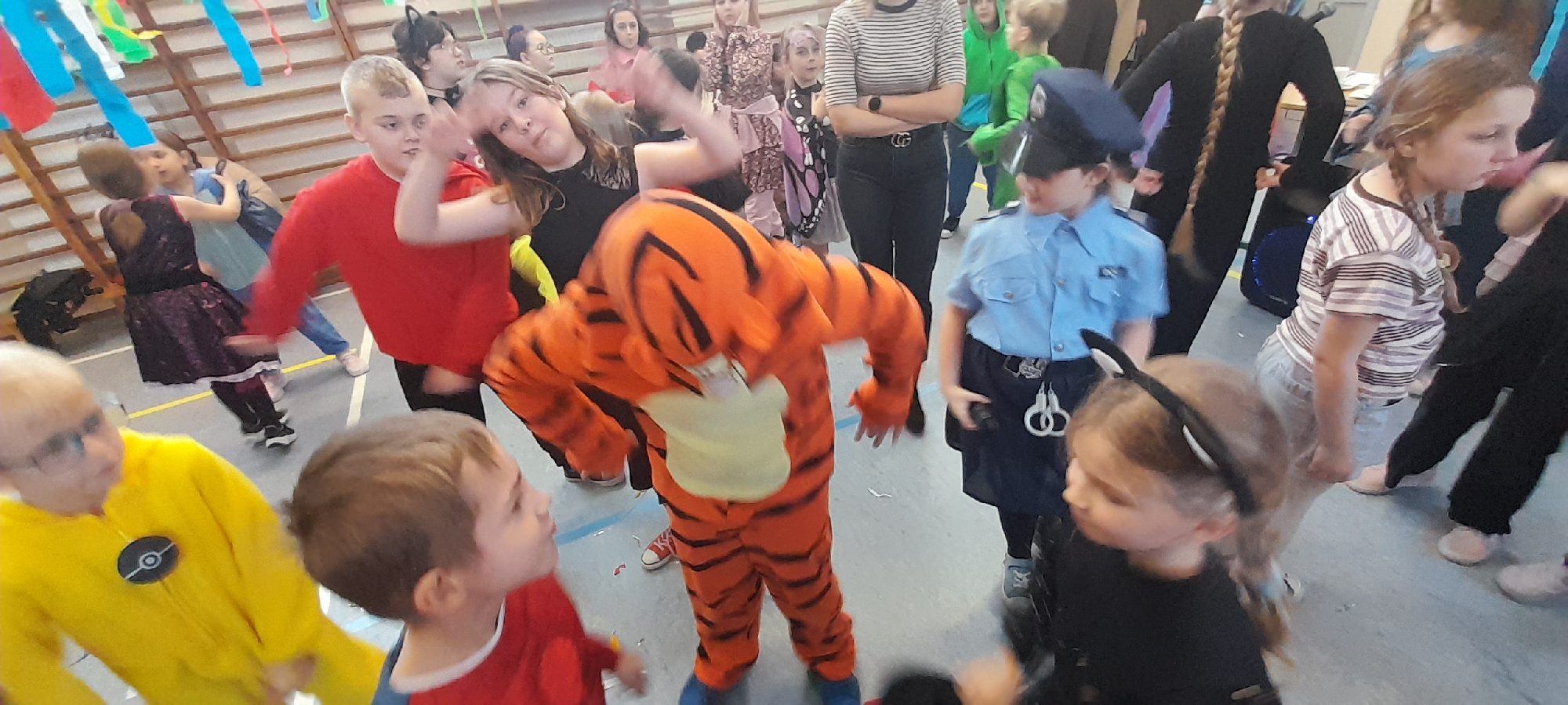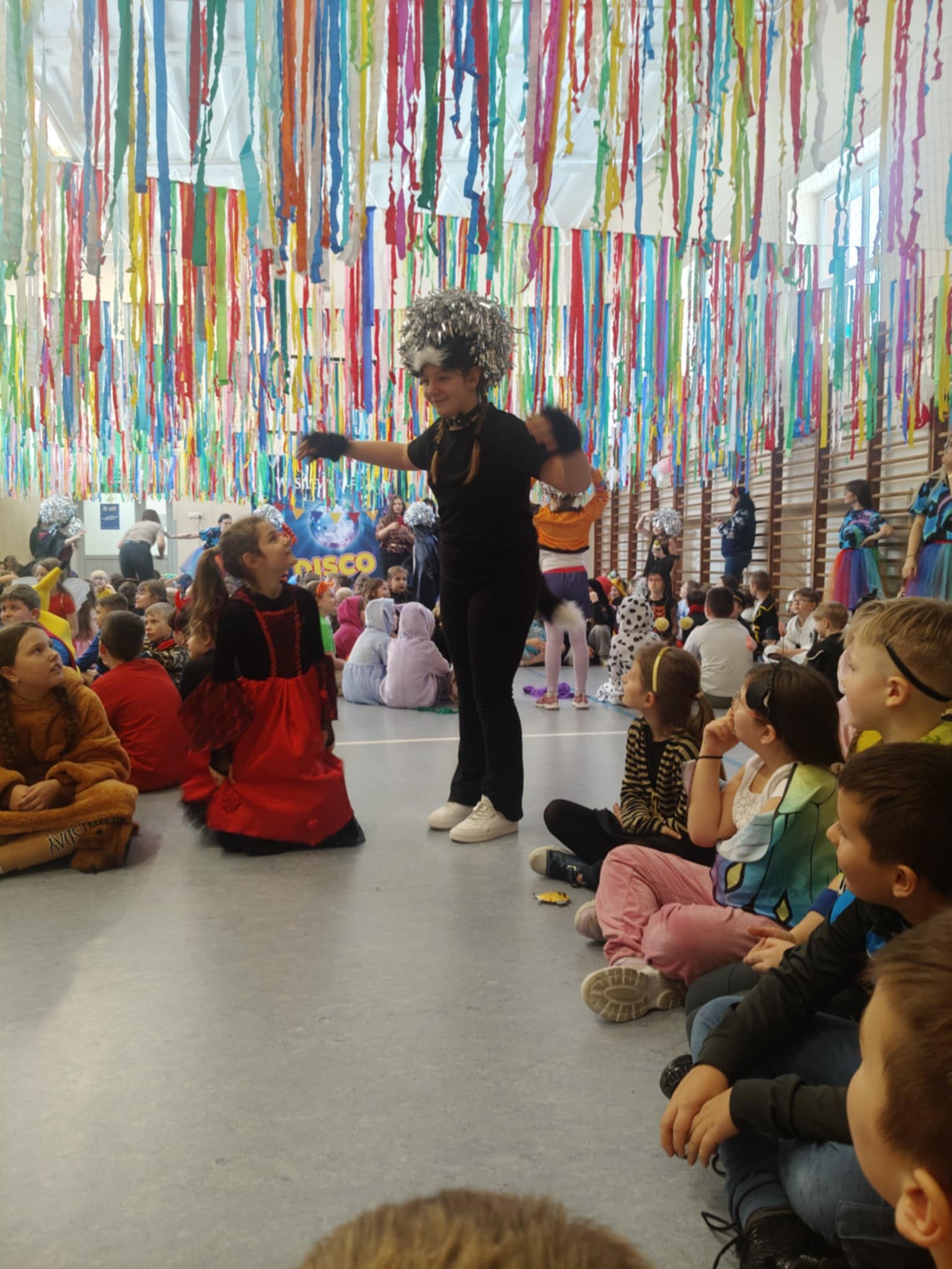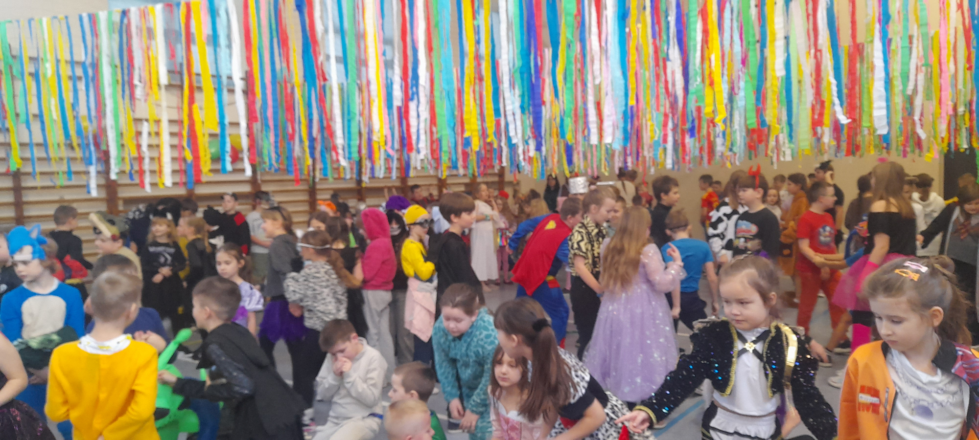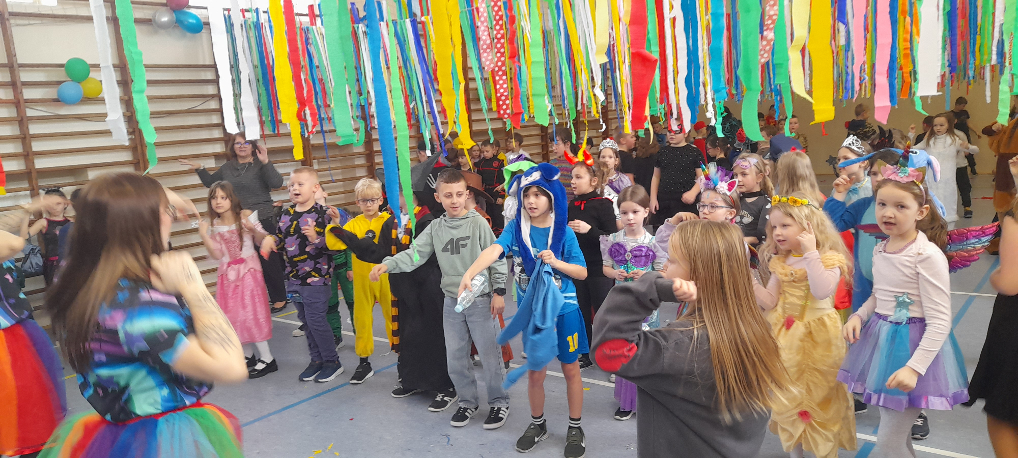 W dniu 12.01.26 r. w naszej szkole odbył się bal karnawałowy. Wzięli w nim udział uczniowie klas 1-3. Dzieci przebrane były za różne postacie z bajek oraz superbohaterów. Rozrywkę naszym uczniom zapewniły animatorki z Centrum Tańca Wasilewski-Felska. Kolorowy wystrój sali, energetyczna muzyka wprowadziły radosny nastrój. Dzieci chętnie brały udział w zabawach tanecznych, konkursach, które przygotowała prowadząca. Wspólna zabawa przyniosła naszym uczniom wiele uśmiechu i zadowolenia oraz sprzyjała integracji.