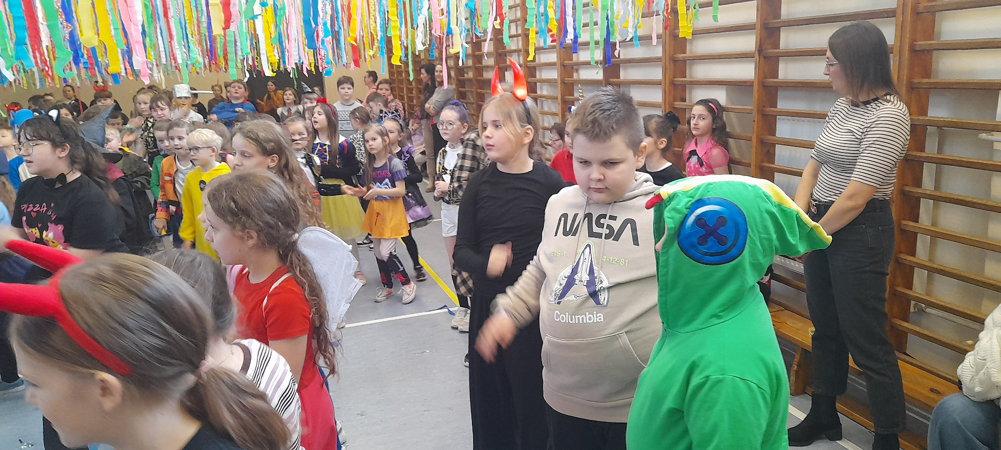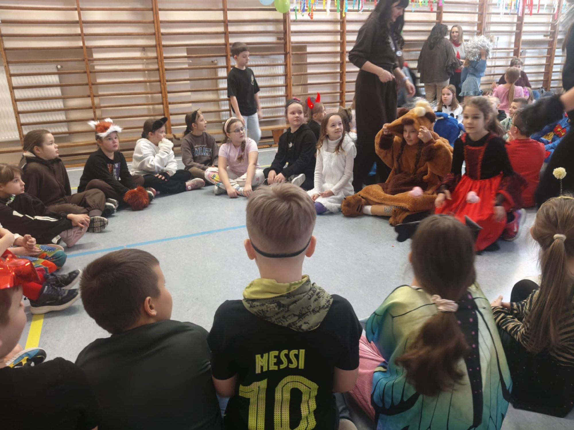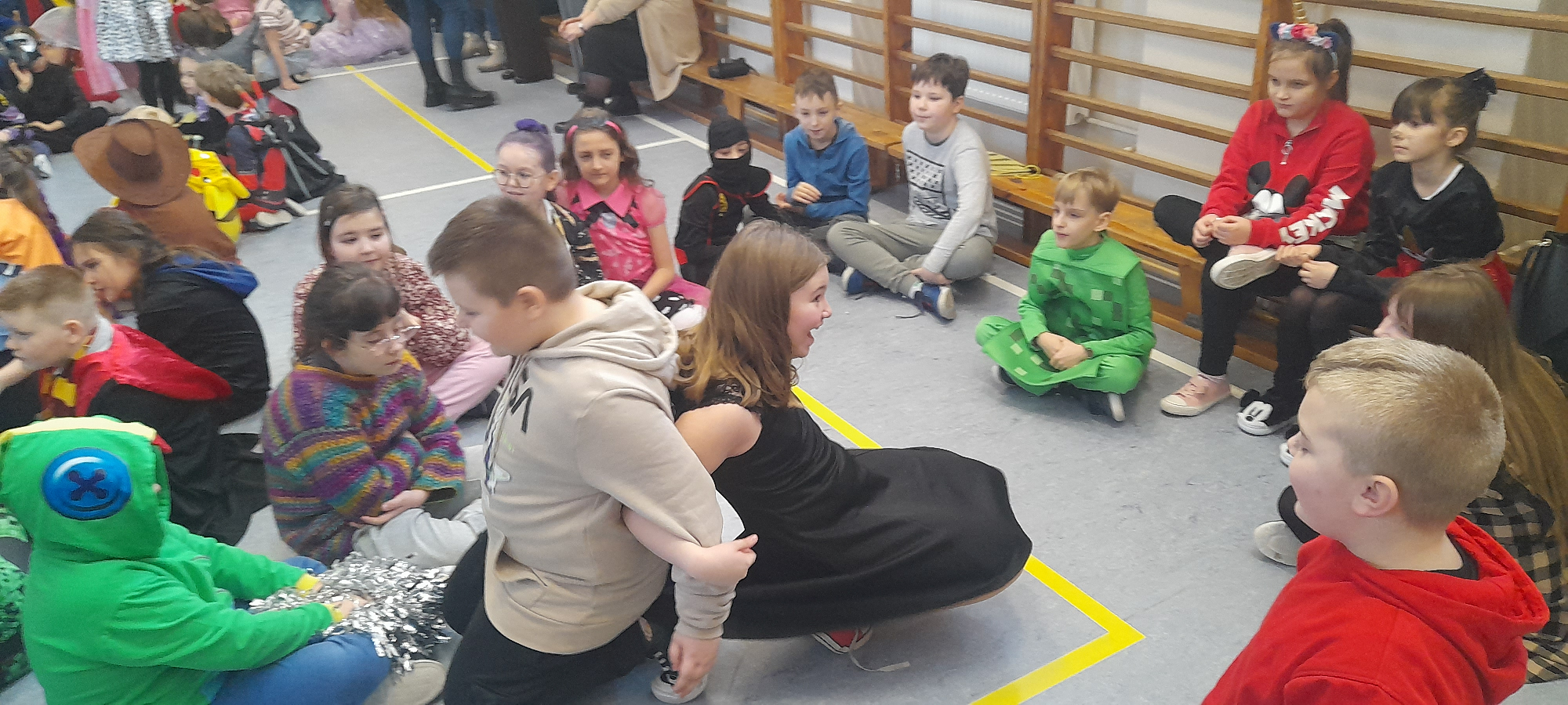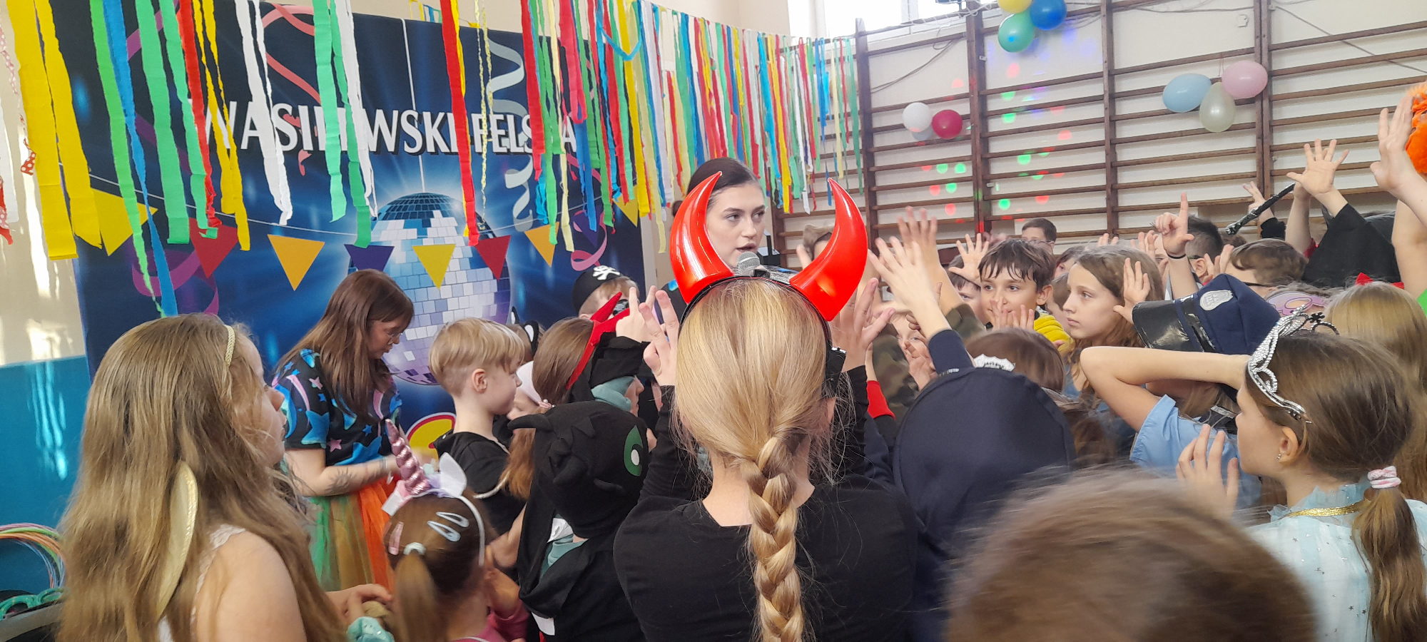 W dniu 12.01.26 r. w naszej szkole odbył się bal karnawałowy. Wzięli w nim udział uczniowie klas 1-3. Dzieci przebrane były za różne postacie z bajek oraz superbohaterów. Rozrywkę naszym uczniom zapewniły animatorki z Centrum Tańca Wasilewski-Felska. Kolorowy wystrój sali, energetyczna muzyka wprowadziły radosny nastrój. Dzieci chętnie brały udział w zabawach tanecznych, konkursach, które przygotowała prowadząca. Wspólna zabawa przyniosła naszym uczniom wiele uśmiechu i zadowolenia oraz sprzyjała integracji.