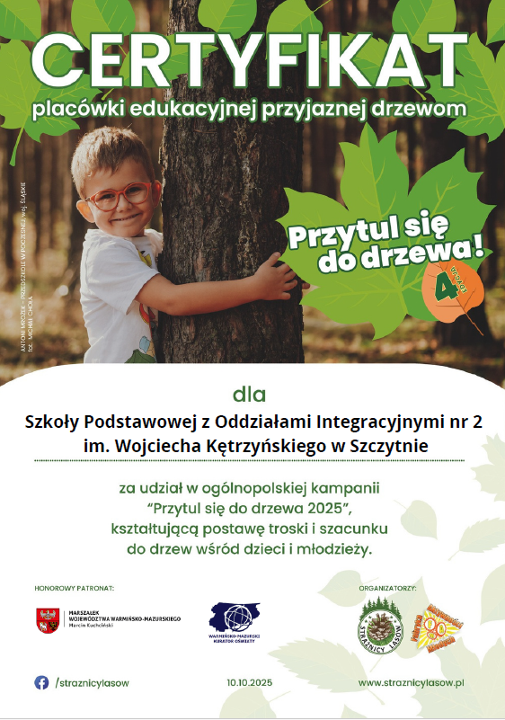 Świetliczanki wzięły udział w 4. edycji kampanii „Przytul się do drzewa” w ramach projektu Strażnicy Lasu. Promowaliśmy ekologię i miłość do natury, pokazując, że dzieci chcą chronić środowisko. Udział w inicjatywie wzięło 2163 placówek z całej Polski.