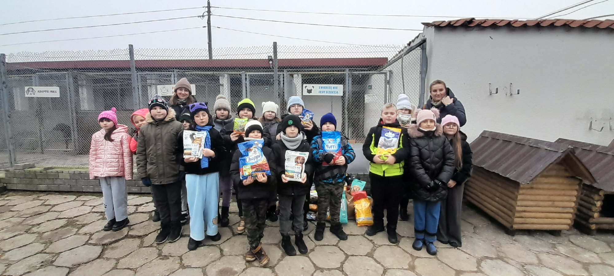 Kulminacyjnym momentem akcji była wizyta klasy III D w schronisku w dniu 18 grudnia 2025 r. Uczniowie przekazali zebrane dary, poznali funkcjonowanie placówki, dowiedzieli się o potrzebach zwierząt, a także mieli okazję nakarmić i pogłaskać psy oraz koty. Spotkanie z poruszającymi historiami czworonogów szukających domu było dla dzieci wyjątkowym i emocjonującym doświadczeniem.