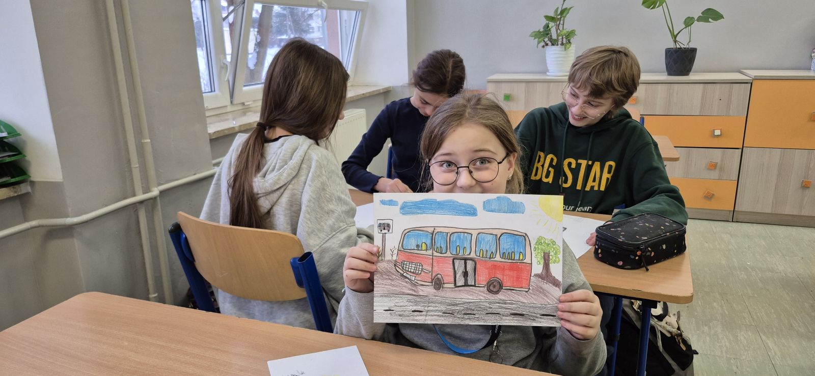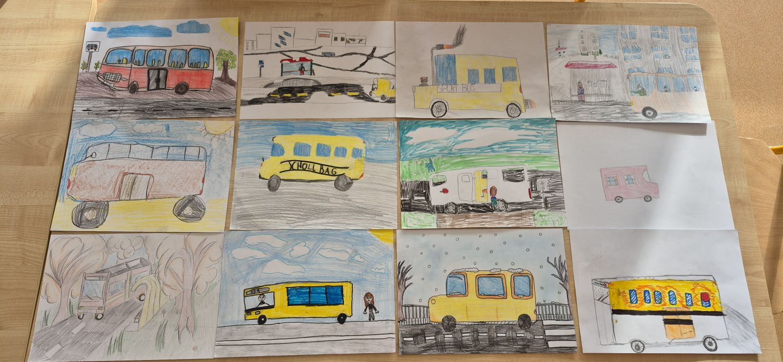 Świetliczaki włączyły się w inicjatywę zaproponowaną przez Zakład Gospodarki Komunalnej w Szczytnie i stworzyły prace plastyczne przedstawiające autobus w różnych okolicznościach.