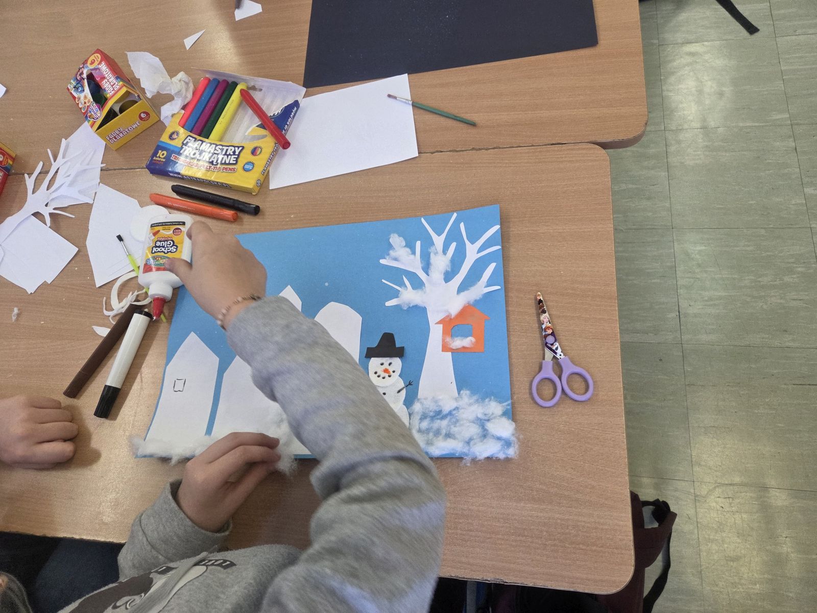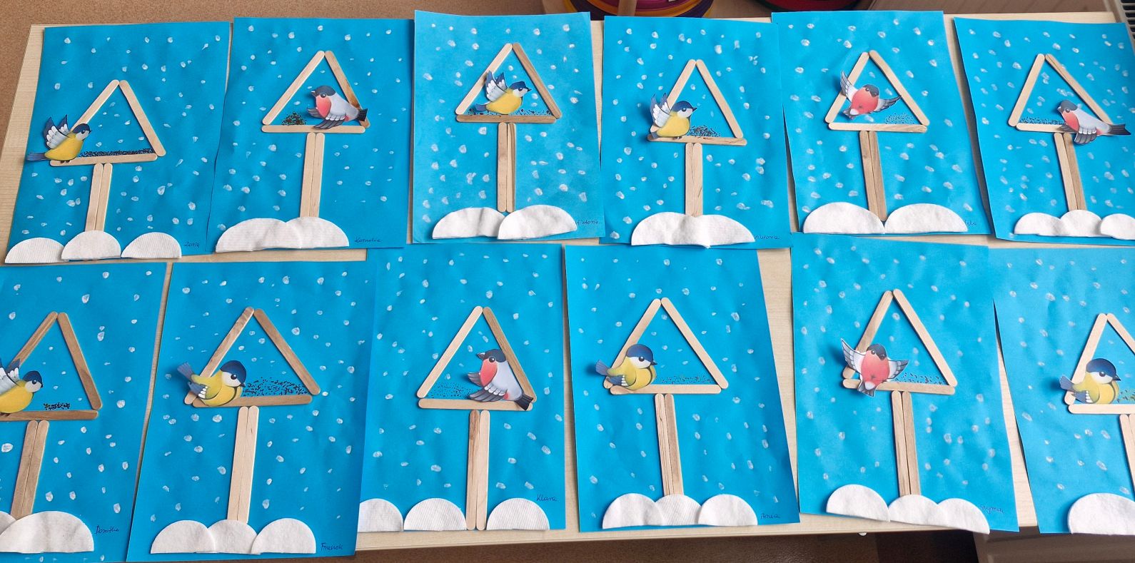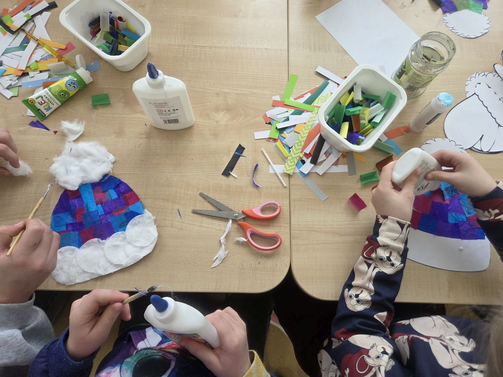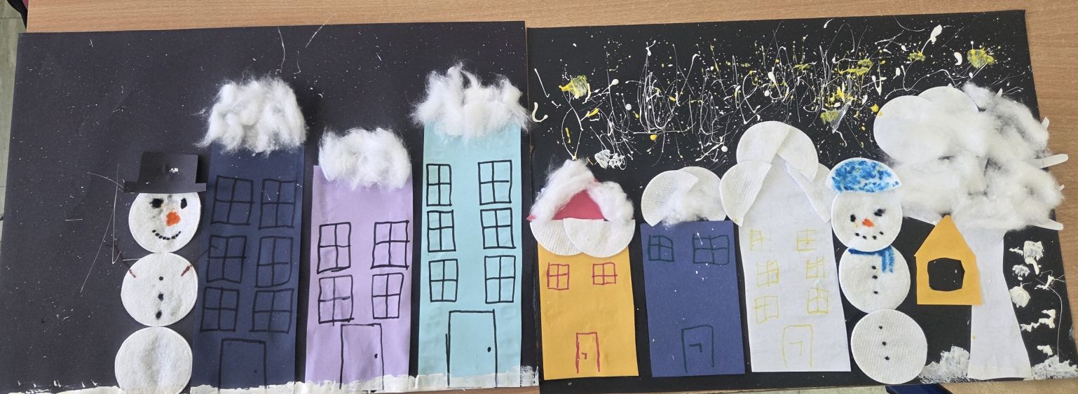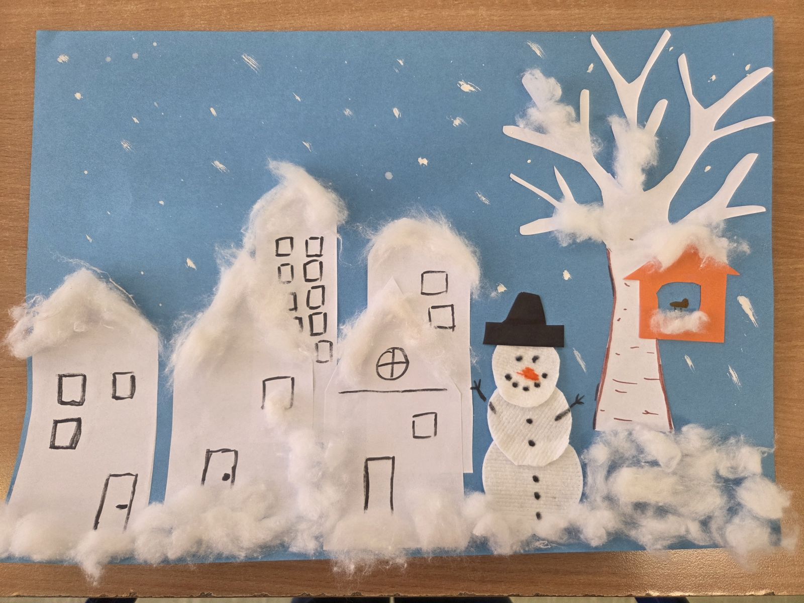 Uczniowie w świetlicy nie nudzą się zimą – stworzyli ciekawe prace plastyczne, korzystając z różnych technik plastycznych.
