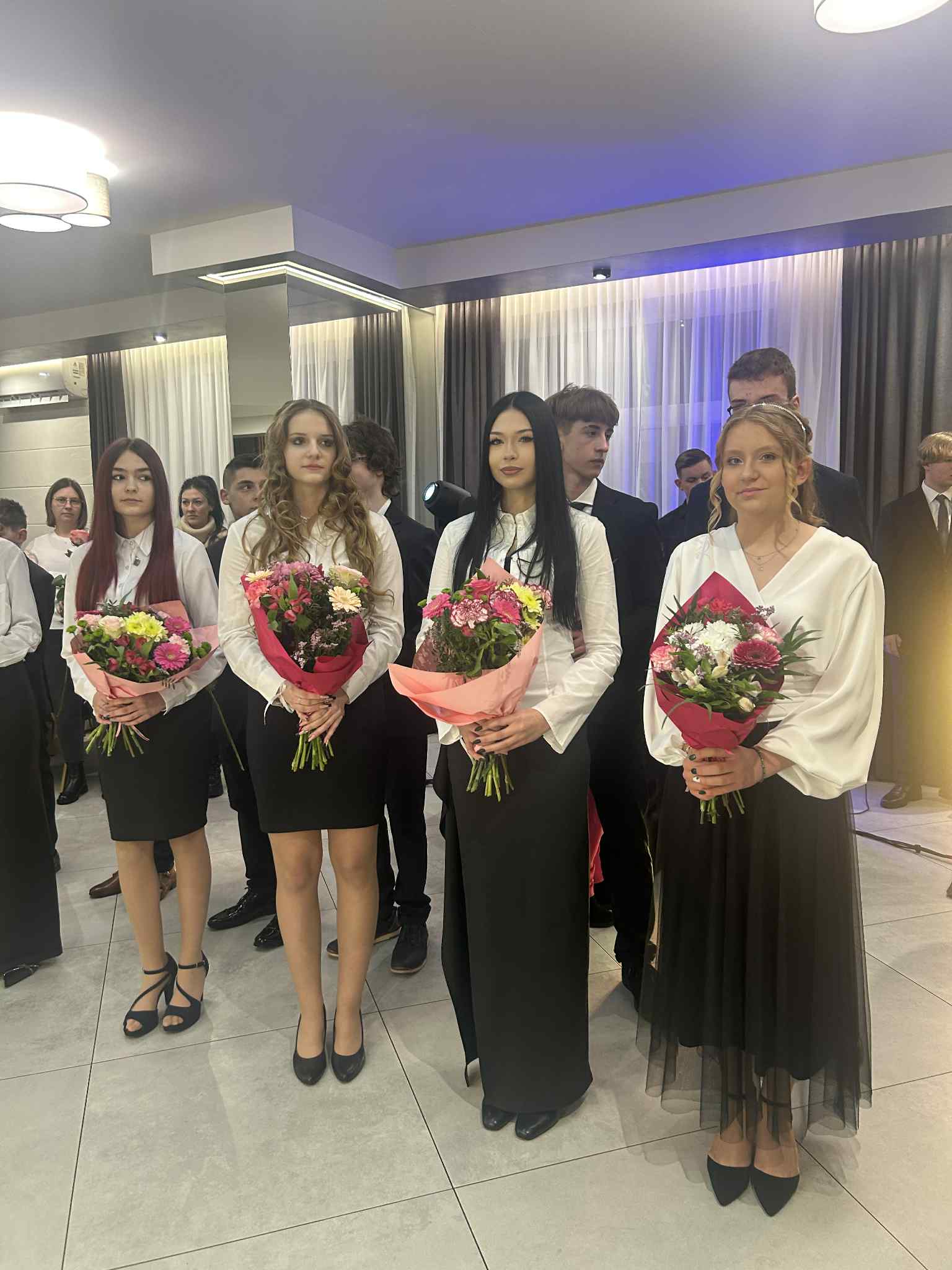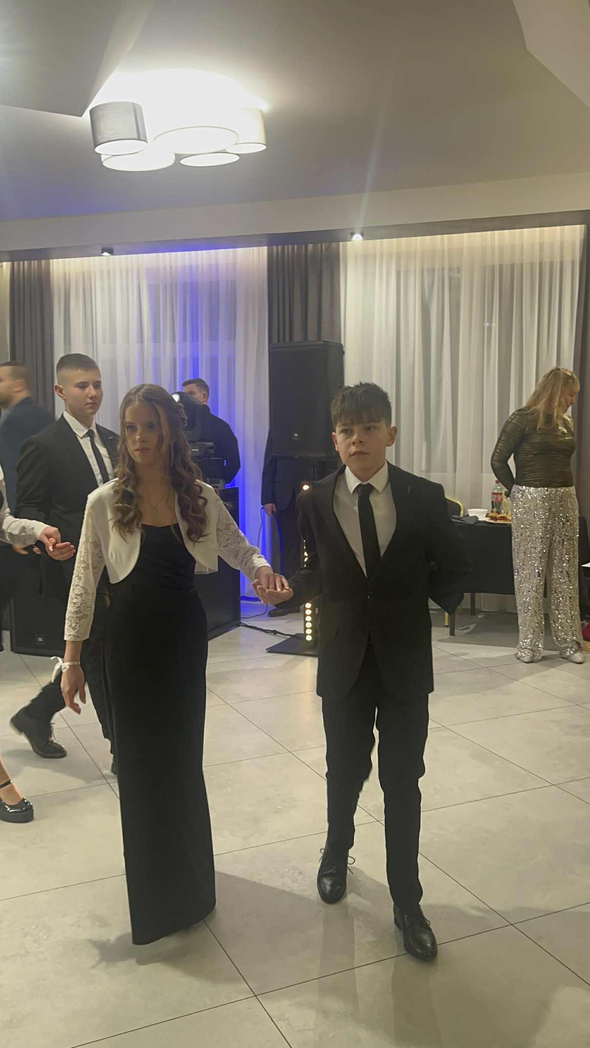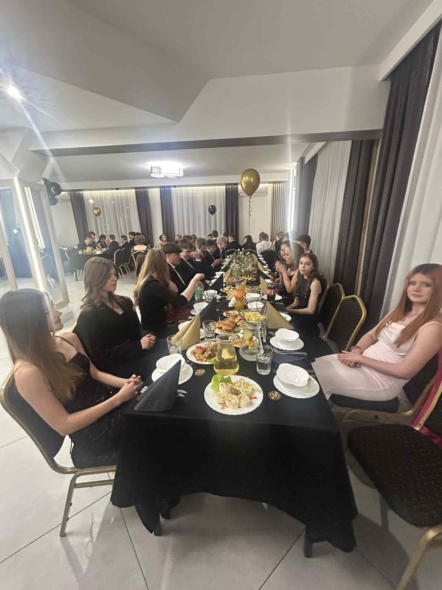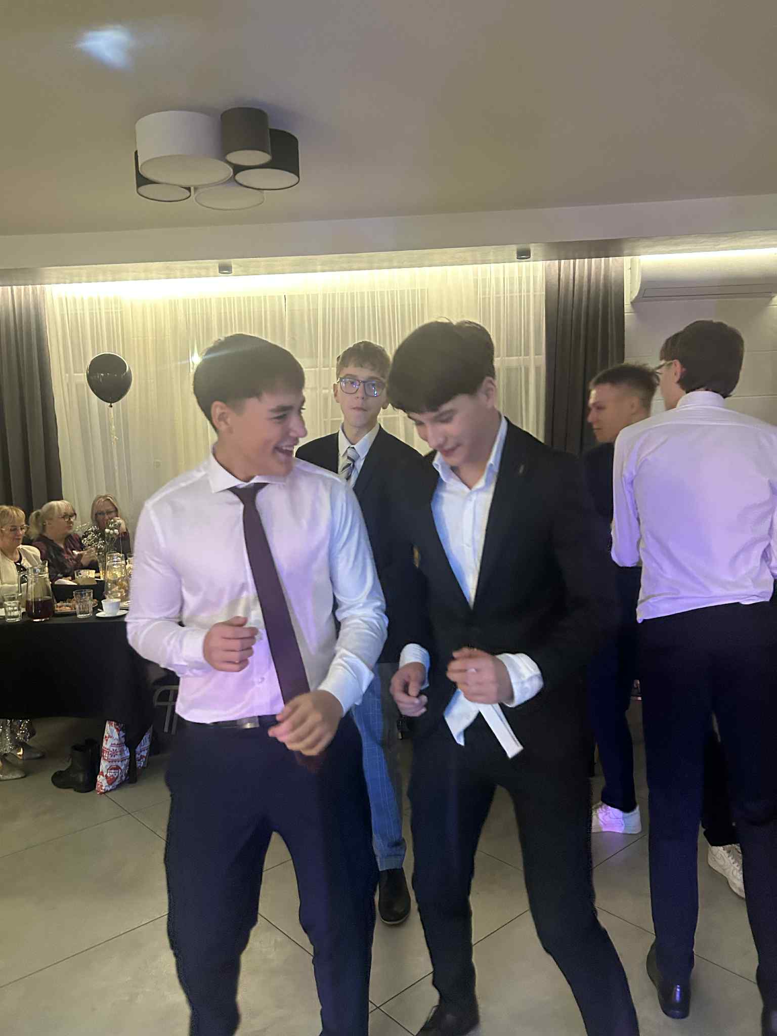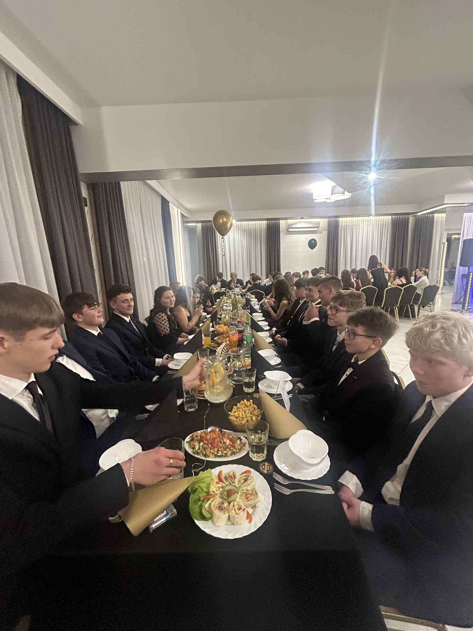 Po części oficjalnej przyszedł czas na zabawę. Wieczór wypełniły tańce, wspomnienia i serdeczne podziękowania dla dyrekcji, wychowawców oraz rodziców za lata wsparcia. Był to czas pełen uśmiechu, który z pewnością na długo pozostanie w pamięci wszystkich uczestników jako radosny akcent kończący ważny etap edukacji.