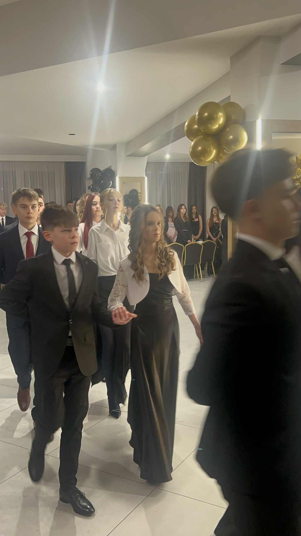 Uroczystość rozpoczęła się od widowiskowego poloneza. Ósmoklasiści, w odświętnych strojach, zaprezentowali przygotowany pod kierownictwem p. Grażyny Pogorzelskiej układ, wzbudzając wzruszenie i dumę wśród nauczycieli oraz zgromadzonych rodziców. Dostojny krok i zaangażowanie uczniów nadały wieczorowi wyjątkowy charakter.