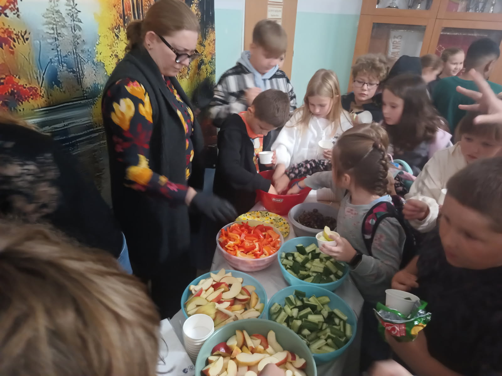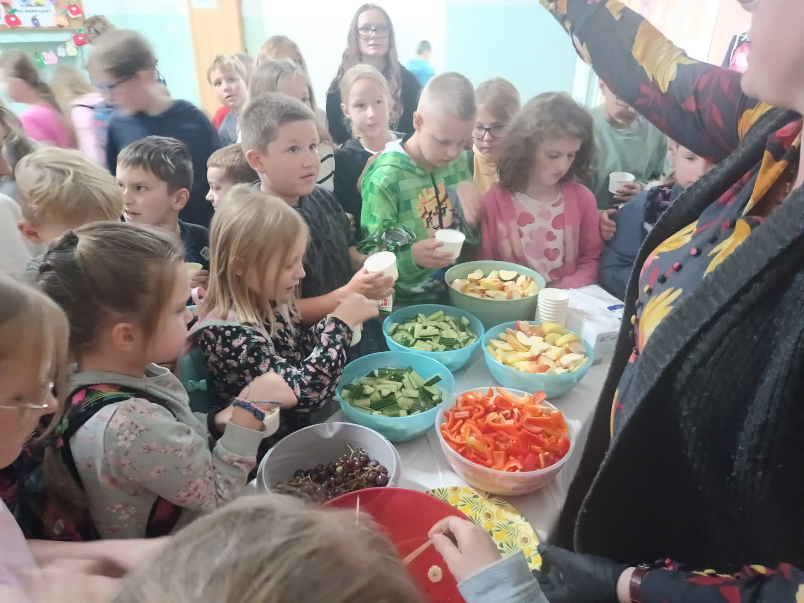 Szczególną wartość miało to, że wszystkie owoce i warzywa zostały sfinansowane z funduszy Samorządu Uczniowskiego. Dzięki zaangażowaniu uczniów i ich przedstawicieli, każdy mógł poczuć, że wspólnie tworzymy zdrową i świadomą społeczność szkolną. Wydarzenie cieszyło się ogromnym zainteresowaniem a uśmiech nie schodził z twarzy uczestników. Mamy nadzieję, że takie inicjatywy będą kontynuowane, a zdrowe nawyki na stałe zagoszczą w naszych tornistrach i lunchboxach!