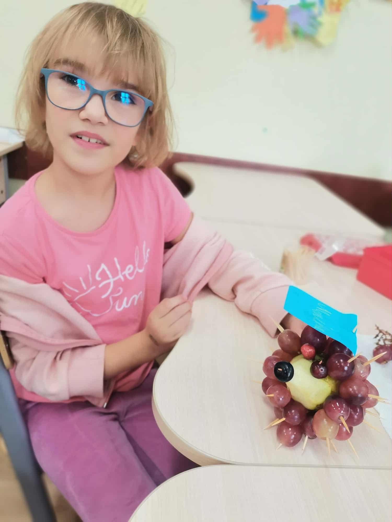 Należy podkreślić, iż duży wkład w tworzenie dekoracji mieli uczniowie klas I - III, a szczególnym zaangażowaniem wykazała się klasa IIA i IB, które wykonały owoce z papieru oraz klasa IID, która wykonała jeże z gruszek i winogron.