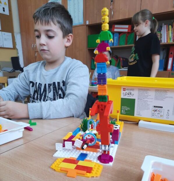 3 października 2022 roku uczniowie klas piątych rozpoczęli konstrukcyjno - programistyczną przygodę z klockami Lego Education Spike Prime w ramach projektu Laboratoria Przyszłości. Młodzież zainstalowała oprogramowanie, sprawdziła działanie matrycy świetlnej, silników, czujnika kolorów, odległości, siły i czujnika żyroskopowego. Skonstruowała i zaprogramowała fantastyczne pojazdy według własnej kreatywności. Oglądając zdjęcia w galerii widzimy, ile frajdy sprawiło to dzieciom.