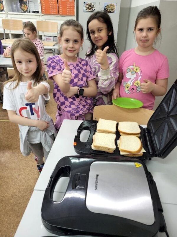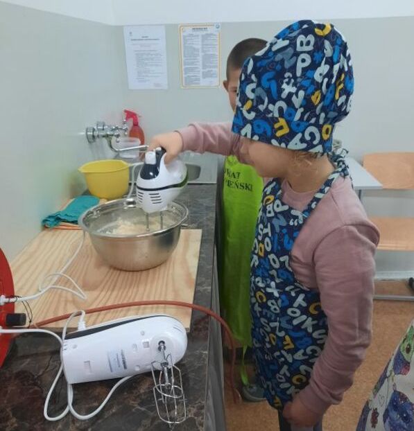 Do realizacji podstawy programowej dotyczącej bezpiecznego i właściwie używania urządzeń technicznych, zostały wykorzystane gofrownice, miksery, itp. To przede wszystkim nabycie umiejętności prawidłowego i bezpiecznego posługiwania się ręcznym i mechanicznym sprzętem, oraz przyborami kuchennymi. Podczas zajęć uczniowie odmierzali potrzebne składniki, zgodnie z przepisem. Dzięki nowym sprzętom przygotowali ciasto, a następnie upiekli gofry, które wzbogacili przetworami i owocami. Po skończonej pracy, poczęstowali pracowników szkoły.