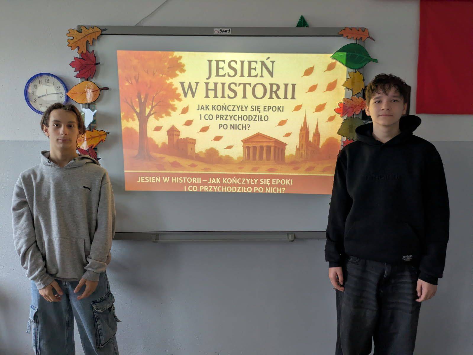 Podczas lekcji j. niemieckiego uczniowie również pisali swoje asocjogramy ze słowem „Herbst” z wykorzystaniem tradycyjnych słowników oraz tworzyli swoje przepisy na rozgrzewające herbaty. W niektórych grupach udało się przeprowadzić degustacje. Podczas zajęć Koła Społeczno-Historycznego jego uczestnicy próbowali odpowiedzieć na pytania o „jesień” w dziejach. Zastanawiali się, czy każda epoka miała swój czas przemijania, niepewności i oczekiwania na nowe. Uczniowie rozmawiali o tym, czy takie momenty stawały się początkiem rewolucji, przemian społecznych i wynalazków oraz jakie wartości temu towarzyszyły. Pojawiło się też pytanie, czy zawsze potrzeba wielkich, burzliwych wydarzeń, by rozpoczął się nowy rozdział historii. Te refeksje towarzyszyły podczas zajęć zatytułowanych „Jesień w historii – jak kończyły się epoki i co przychodziło po nich?”.