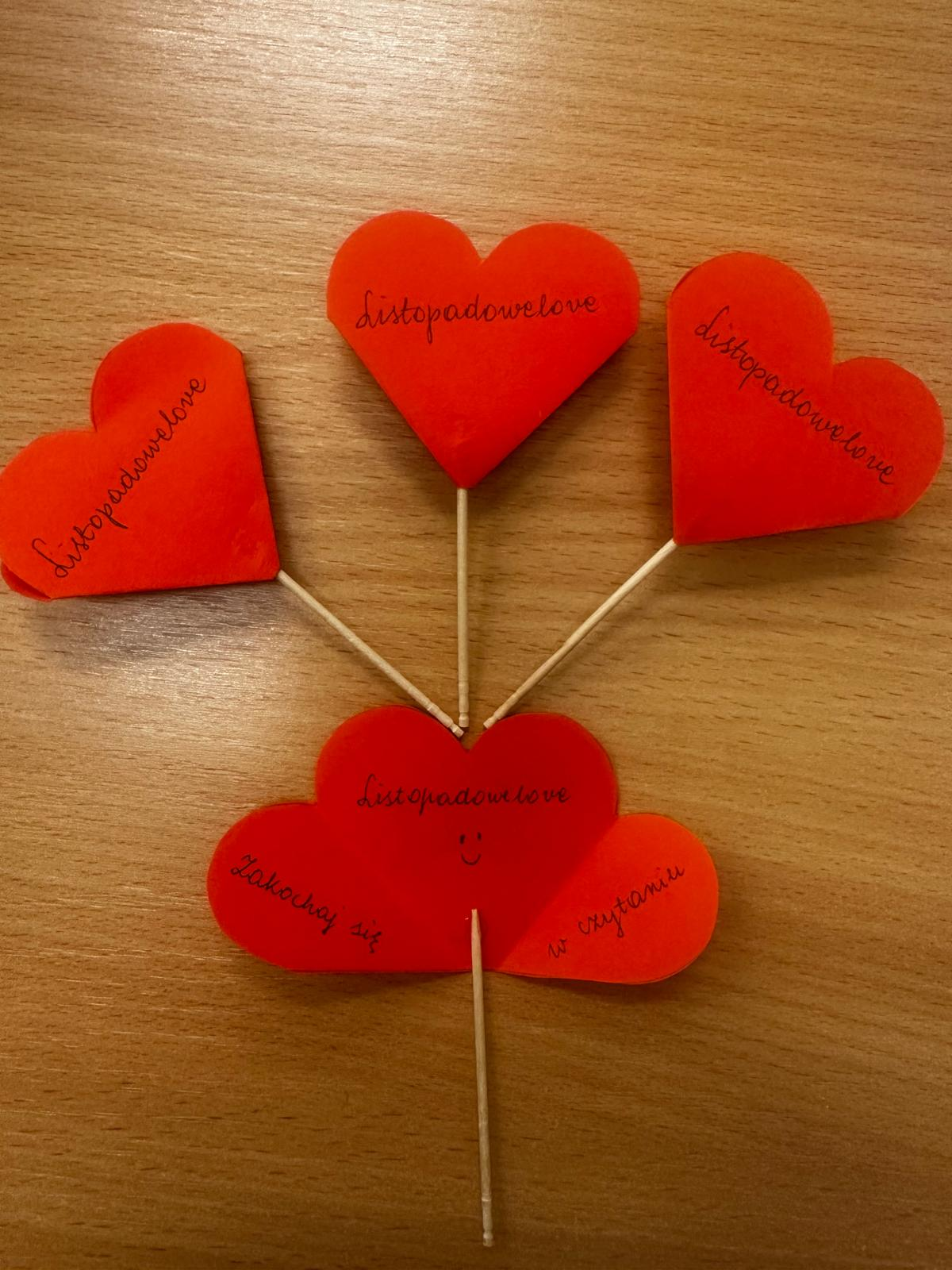 Nasza szkolna biblioteka zachęcała do czytania książek i każdy, kto wypożyczył w tym tygodniu książkę otrzymywał zakładkę w kształcie serduszka. Kilka klas wzięło udział w warsztatach - Dlaczego warto czytać? Na języku polskim także nie zabrakło motywów jesiennych czyli uczniowie szukali skojarzeń z tym hasłem, wykonywali ilustracje do wiersza oraz tworzyli portret Pana Listopada. Było jesiennie, poetycko i twórczo. Klasy czwarte przygotowywały prace plastyczne według instrukcji oraz podpisywały poszczególne elementy swoich prac. Na języku angielskim pojawił się Tea Time i wspólne celebrowanie angielskiego zwyczaju picia herbaty.