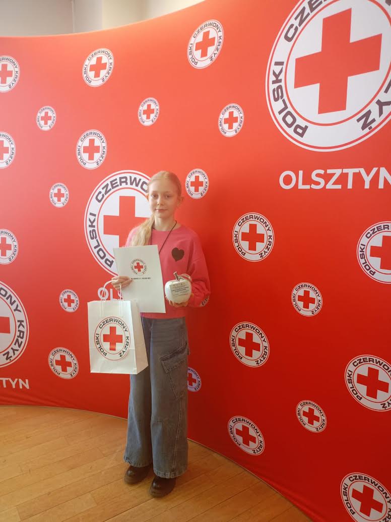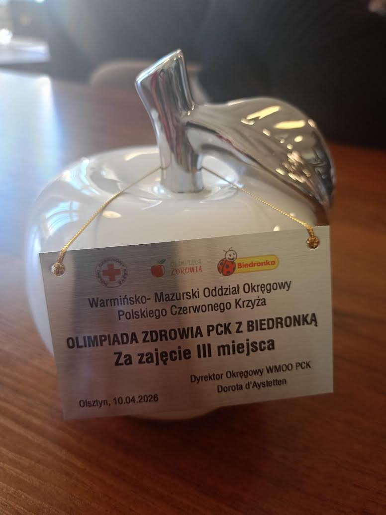 W piątek 10 kwietnia odbył się w Olsztynie etap wojewódzki 33 Olimpiady Zdrowia PCK. Nasz rejon reprezentowała Jagoda Kubica, uczennica kl.6b, która wykazała się ogromną wiedzą na temat zdrowego odżywiania, zdobywając 3 miejsce.