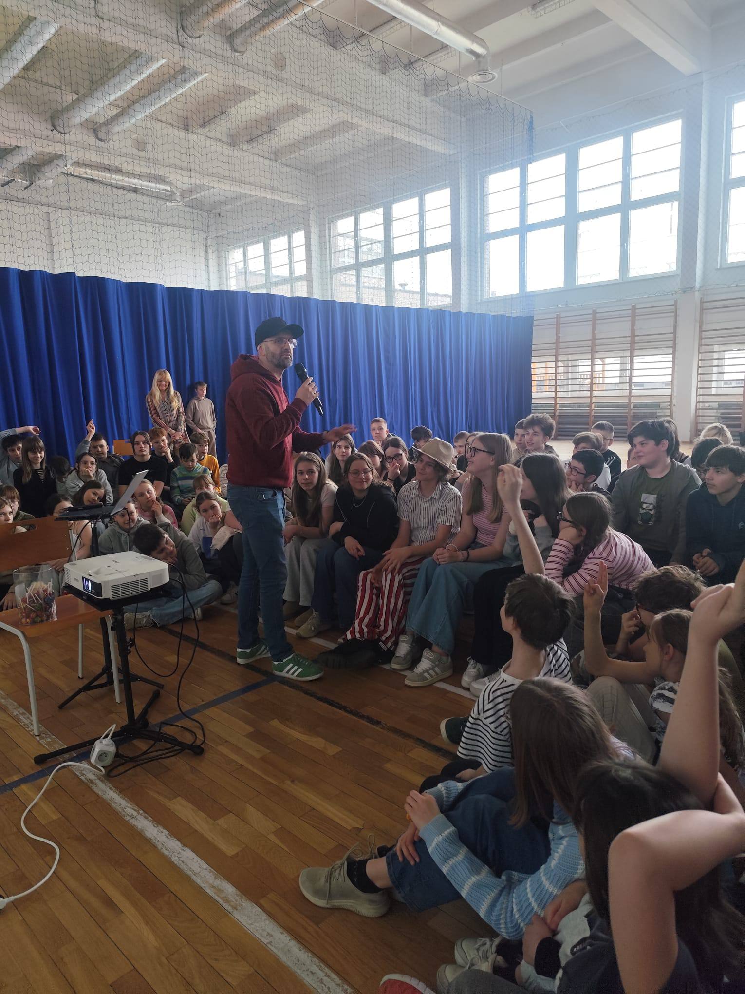 25 marca naszą szkołę odwiedził Dobromir Makowski – polski rappedagog, mówca motywacyjny i profilaktyk, który łączy muzykę rap z działalnością edukacyjną. Prowadzi spotkania dla młodzieży w całej Polsce, poruszając ważne tematy społeczne w oparciu o własne doświadczenia.