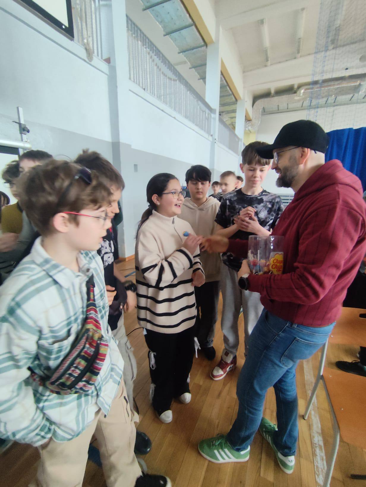 Podczas wizyty przeprowadził spotkanie profilaktyczne dla uczniów klas 5–6. Miało ono ciekawą, dynamiczną formę, która angażowała uczniów i zachęcała ich do aktywnego udziału.