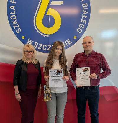 Sukces w Ogólnopolskim Konkursie Fundacji Giełdy Papierów Wartościowych w WarszawieLaura Szałkowska, uczennica klasy 8A Szkoły Podstawowej Nr 6 w Szczytnie otrzymała V miejsce oraz nagrodę finansową w postaci 1000 zł w Ogólnopolskim Konkursie „Inwestuję Odpowiedzialnie” zorganizowanym przez Fundację GPW z siedzibą w Warszawie.