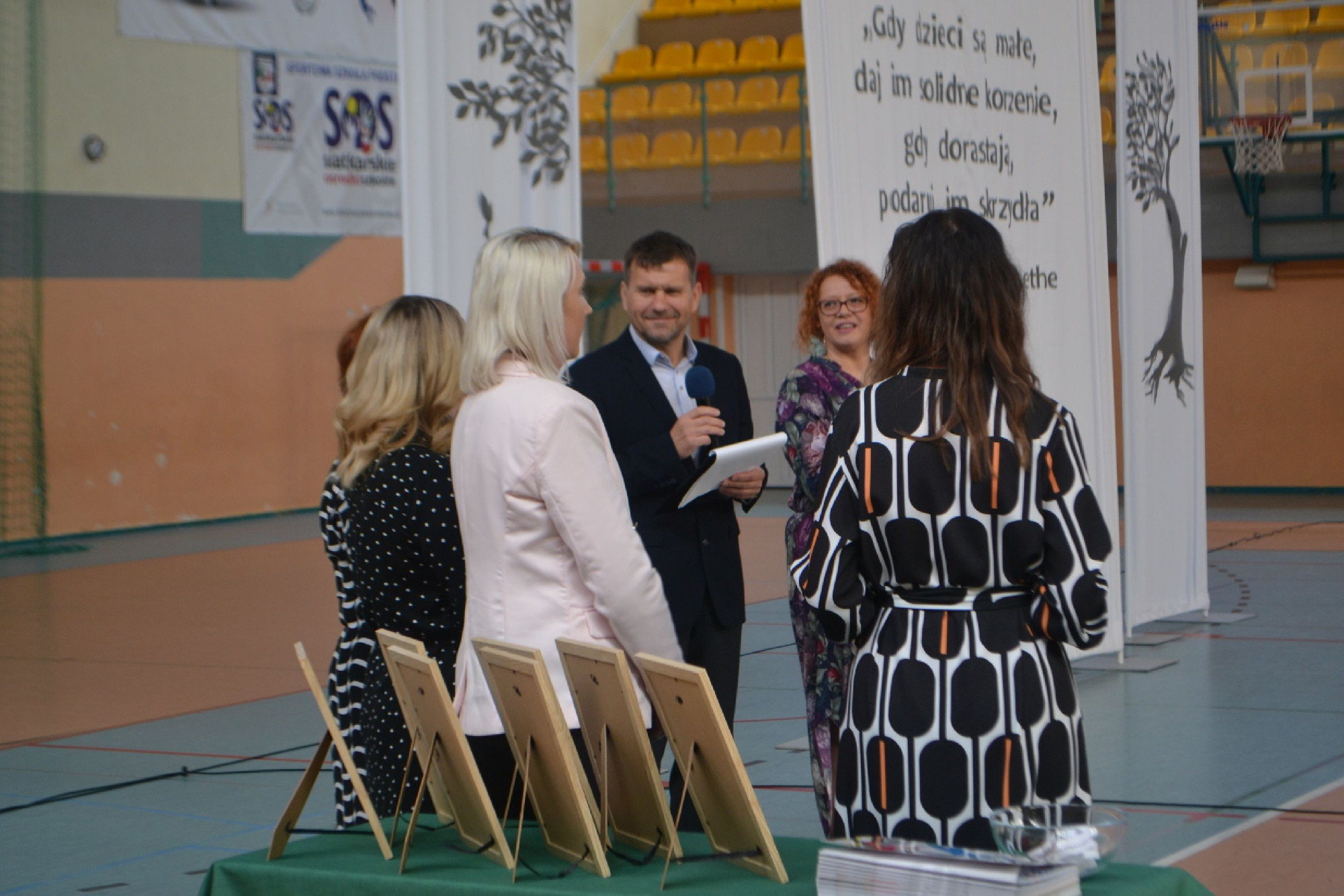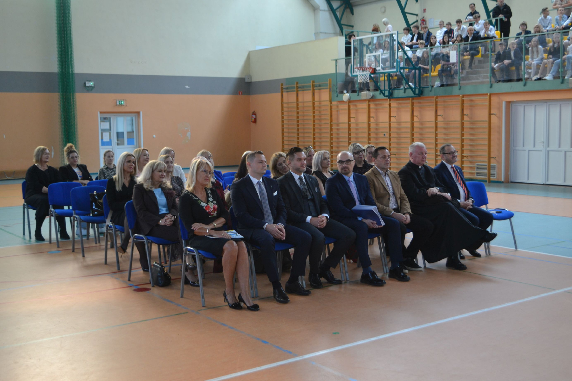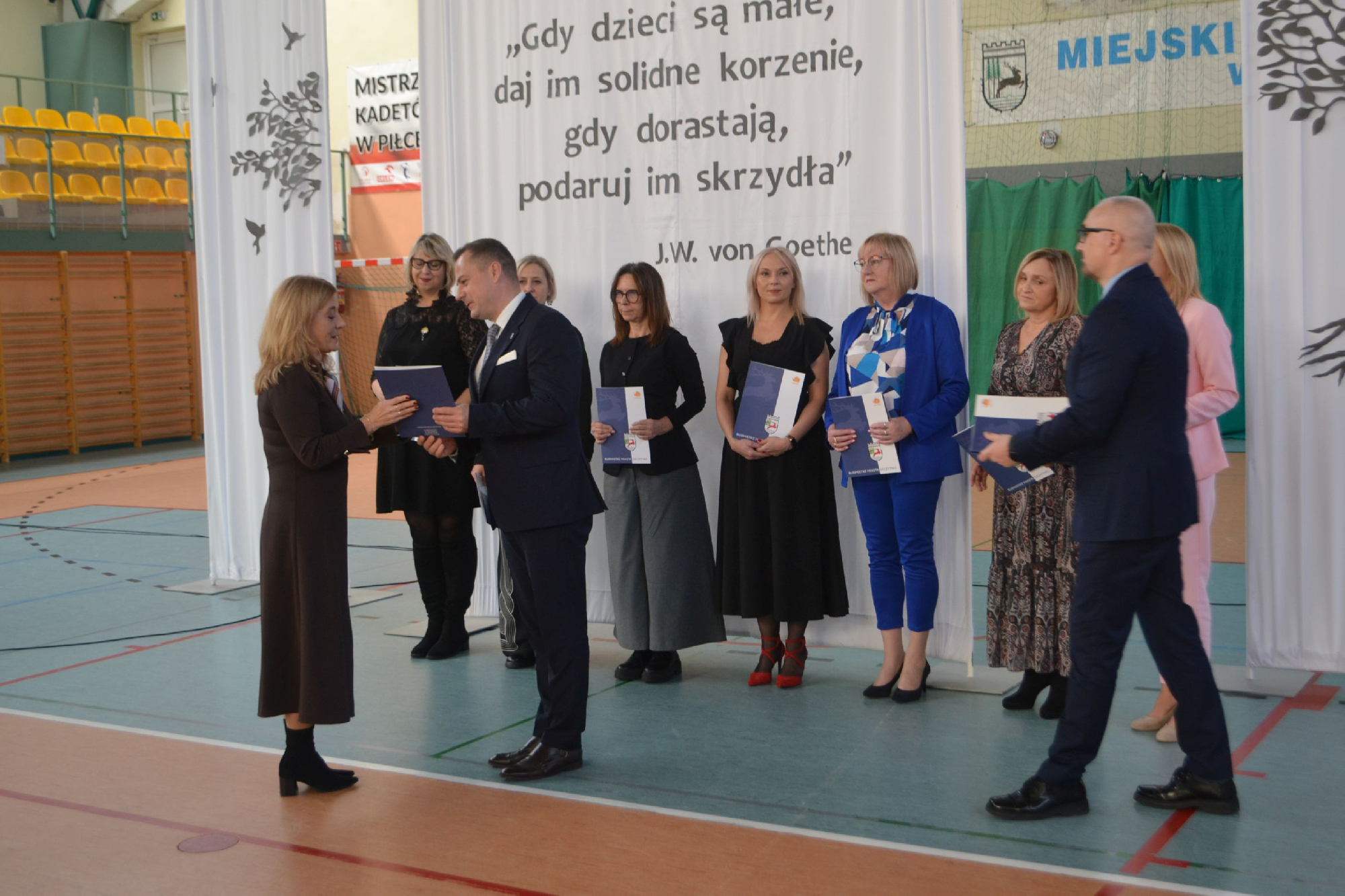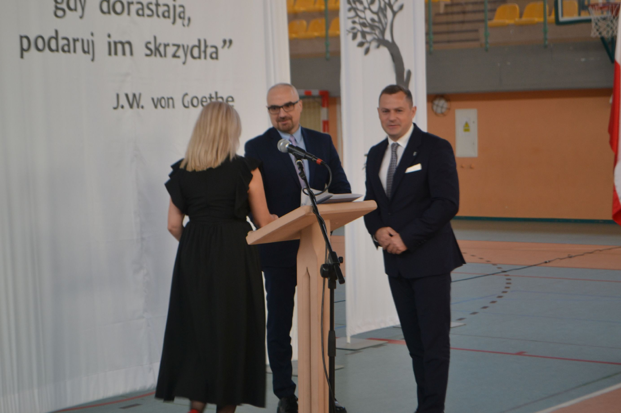Na początek obchodów symbolicznie przywitaliśmy nowych pracowników. Tradycyjnie, częścią powitania było zadanie pytań o szkołę oraz o sport, co pozwoliło lepiej poznać nowych członków naszej społeczności i od razu poczuć integrację z uczniami i nauczycielami . To był moment pełen serdeczności, ciekawości i radości z powiększenia szkolnej drużyny.