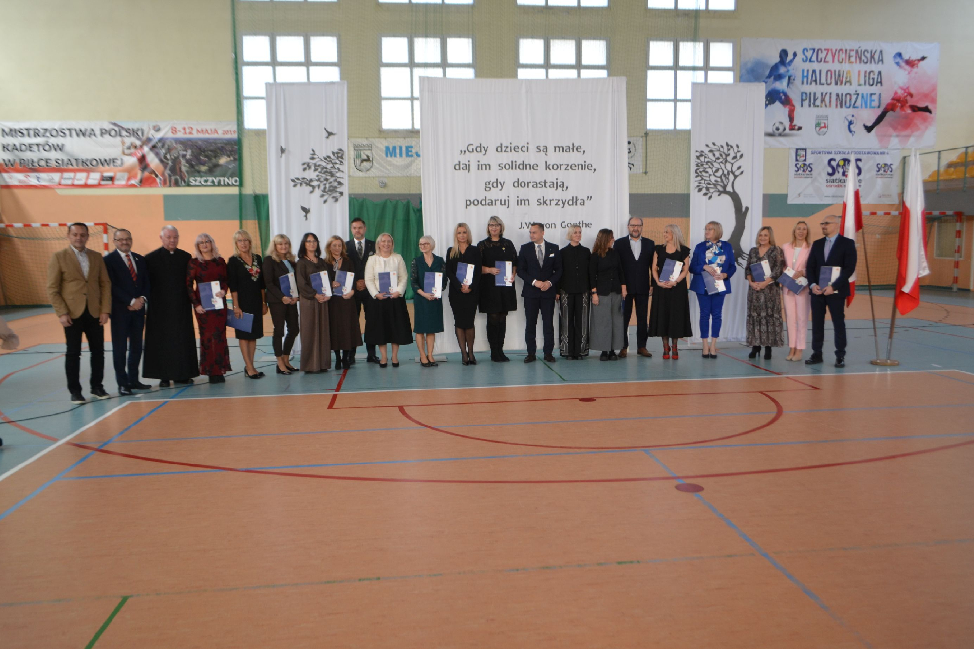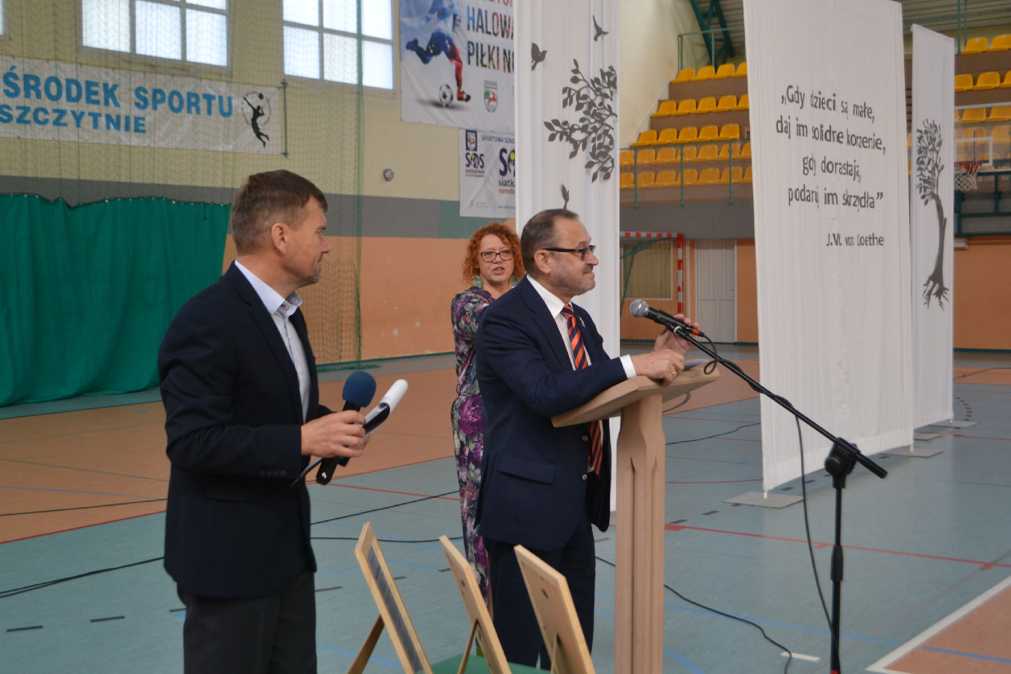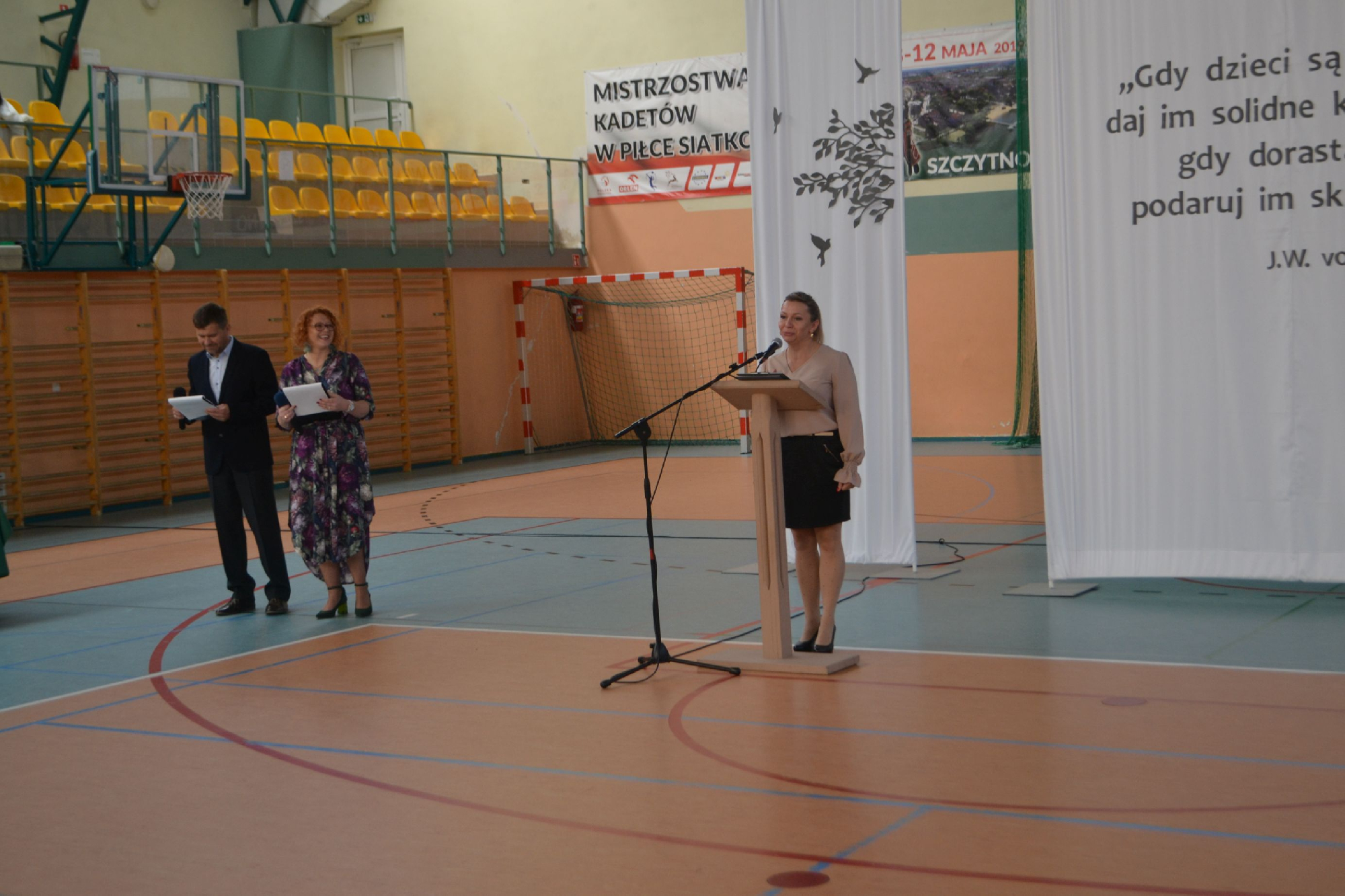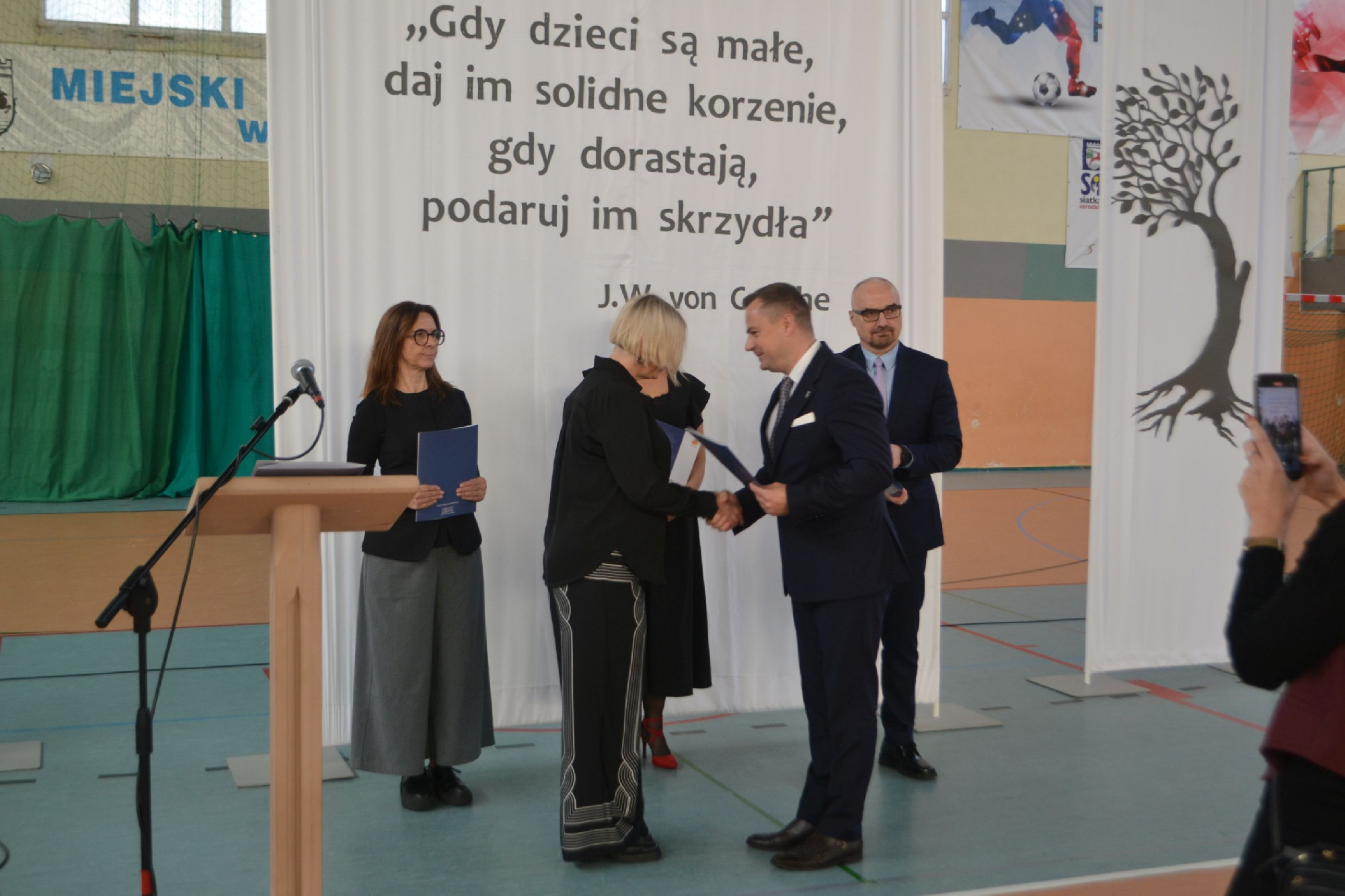 Na początek obchodów symbolicznie przywitaliśmy nowych pracowników. Tradycyjnie, częścią powitania było zadanie pytań o szkołę oraz o sport, co pozwoliło lepiej poznać nowych członków naszej społeczności i od razu poczuć integrację z uczniami i nauczycielami . To był moment pełen serdeczności, ciekawości i radości z powiększenia szkolnej drużyny.